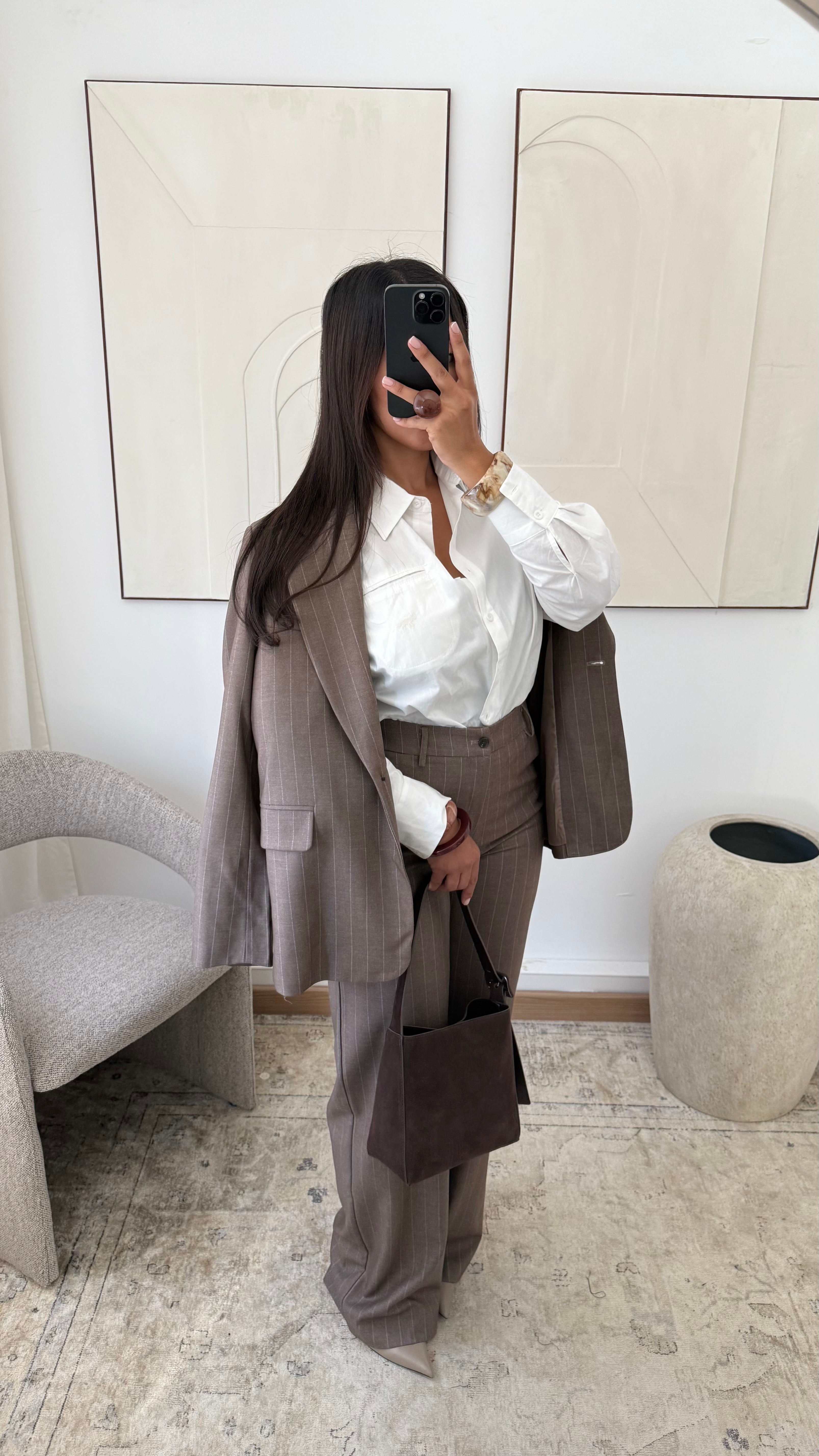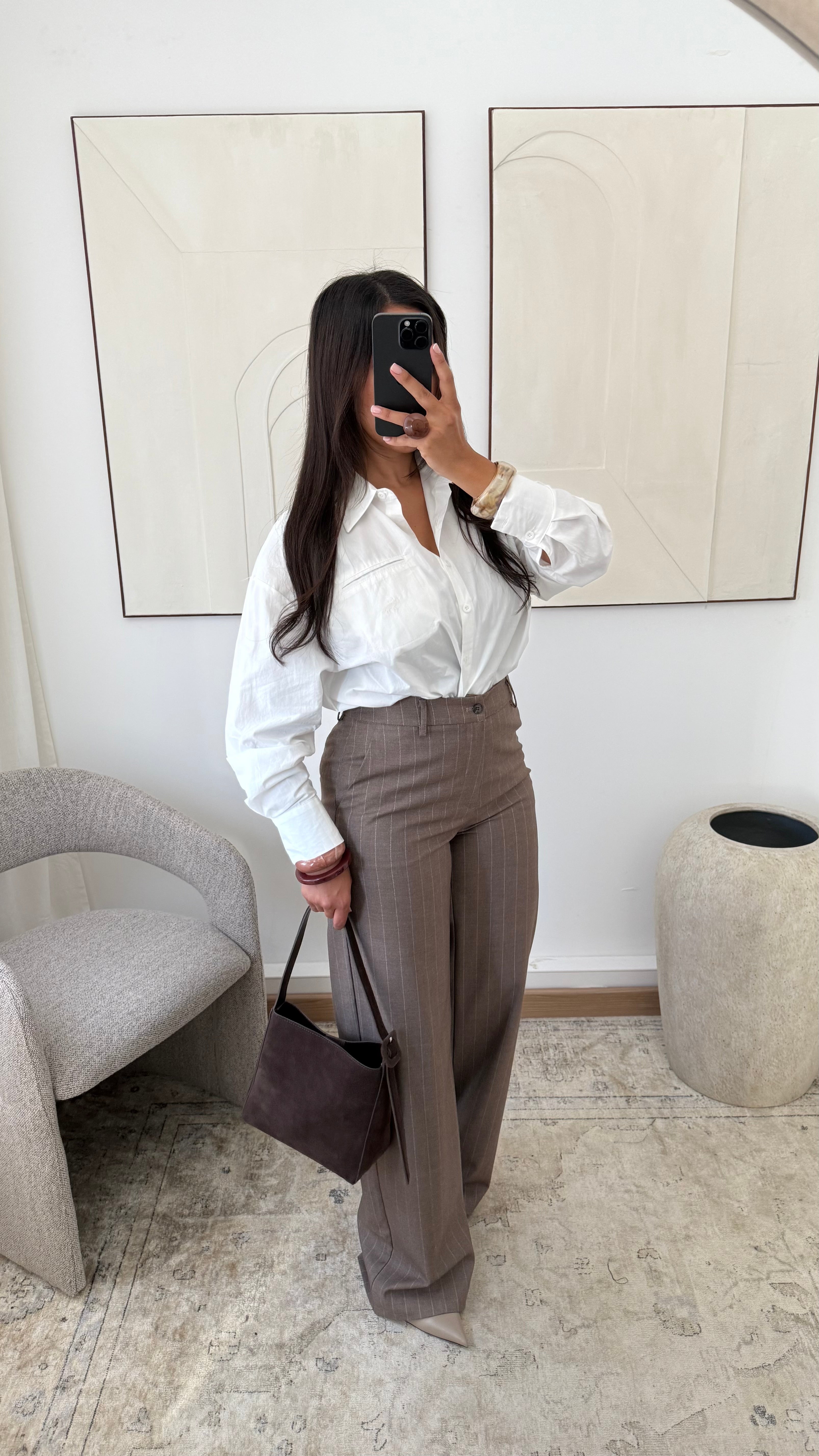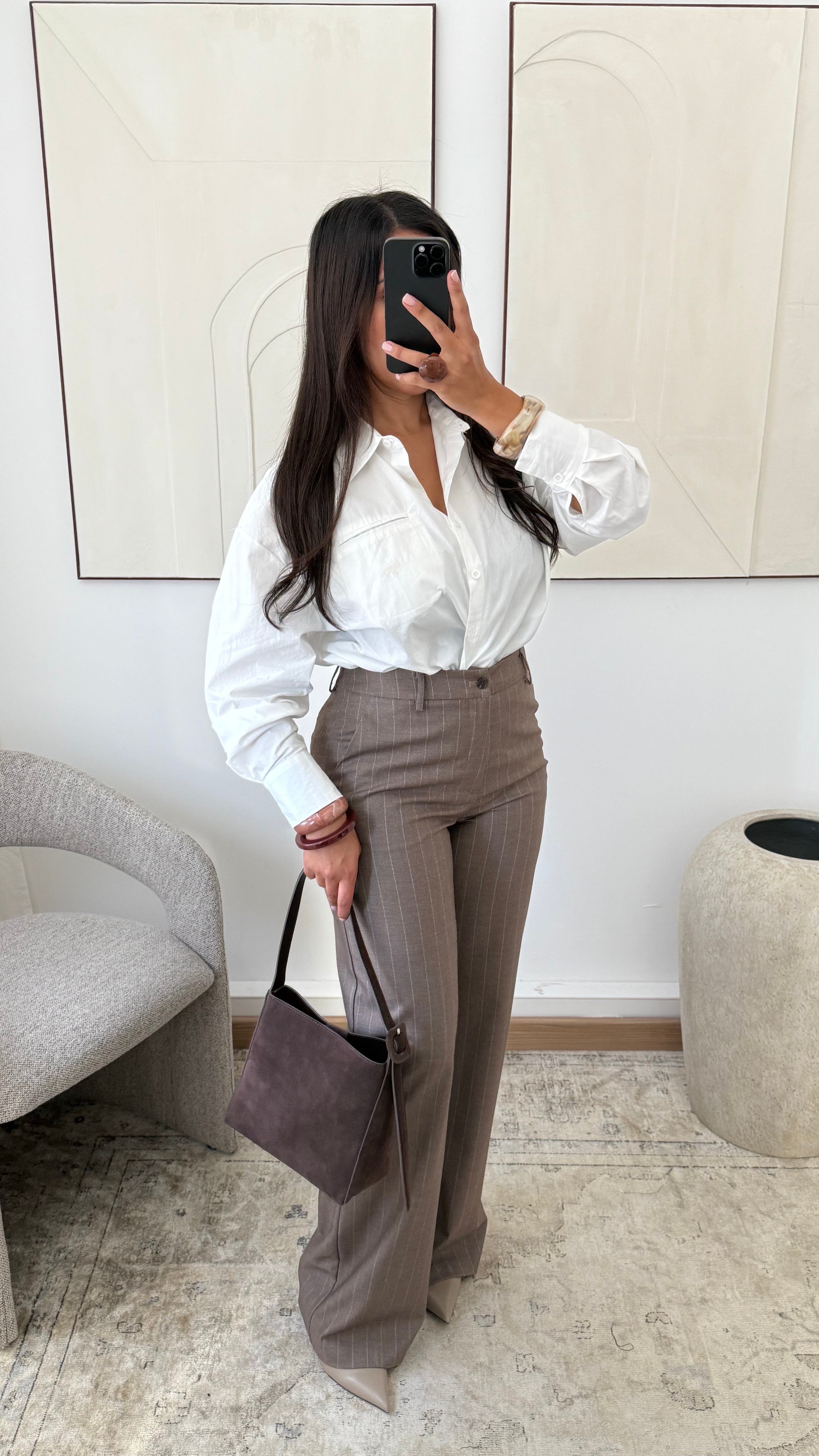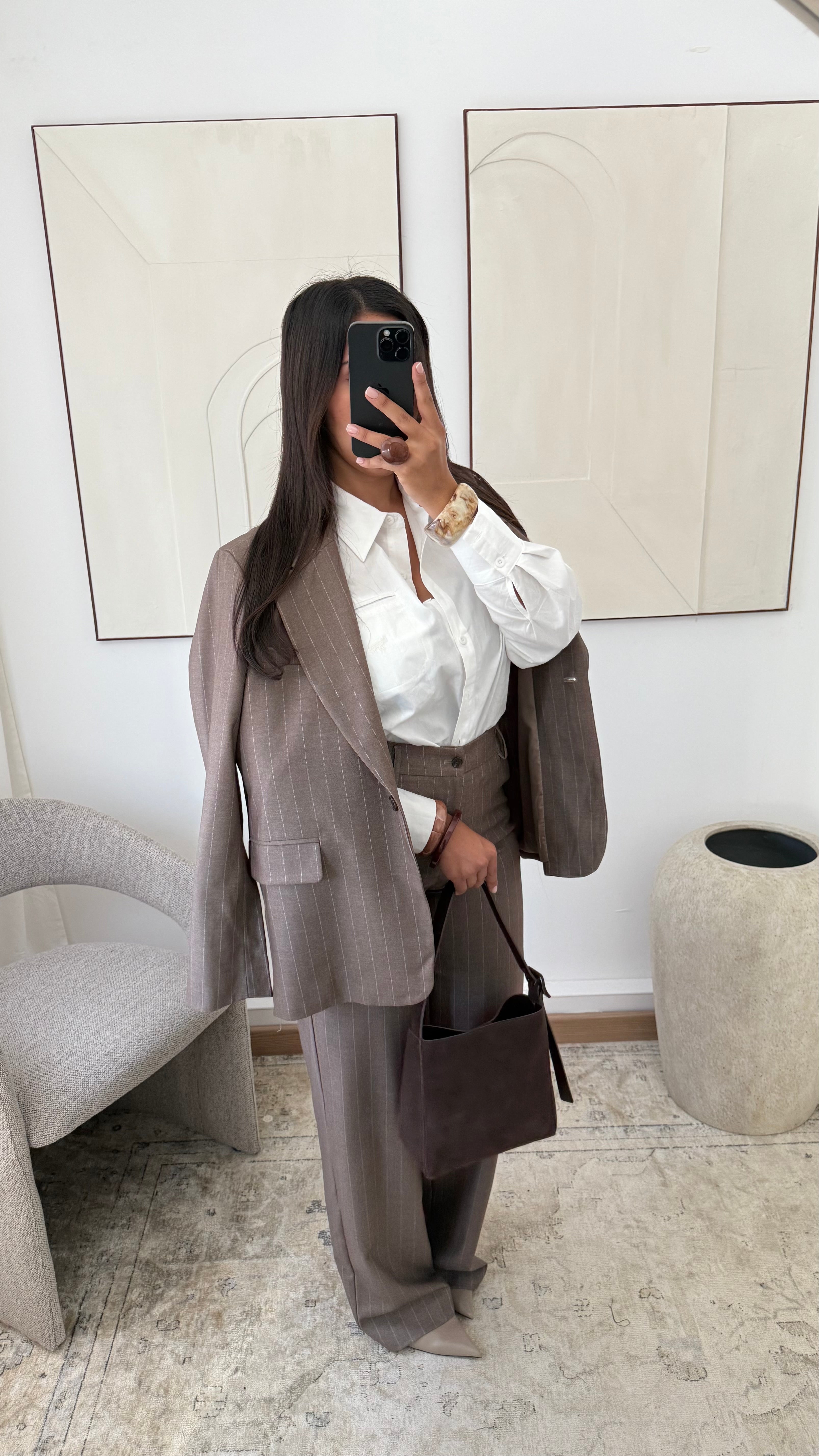 À assortir avec son blazer pour un ensemble élégant et structuré, ou à associer avec un pull fin ou une chemise fluide pour un look de mi-saison tout en finesse.