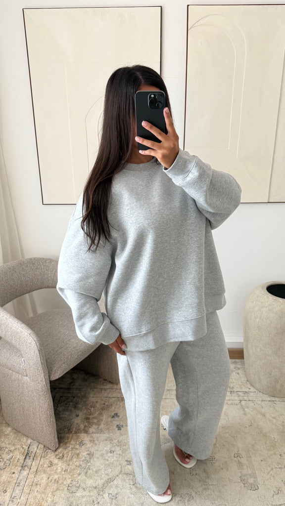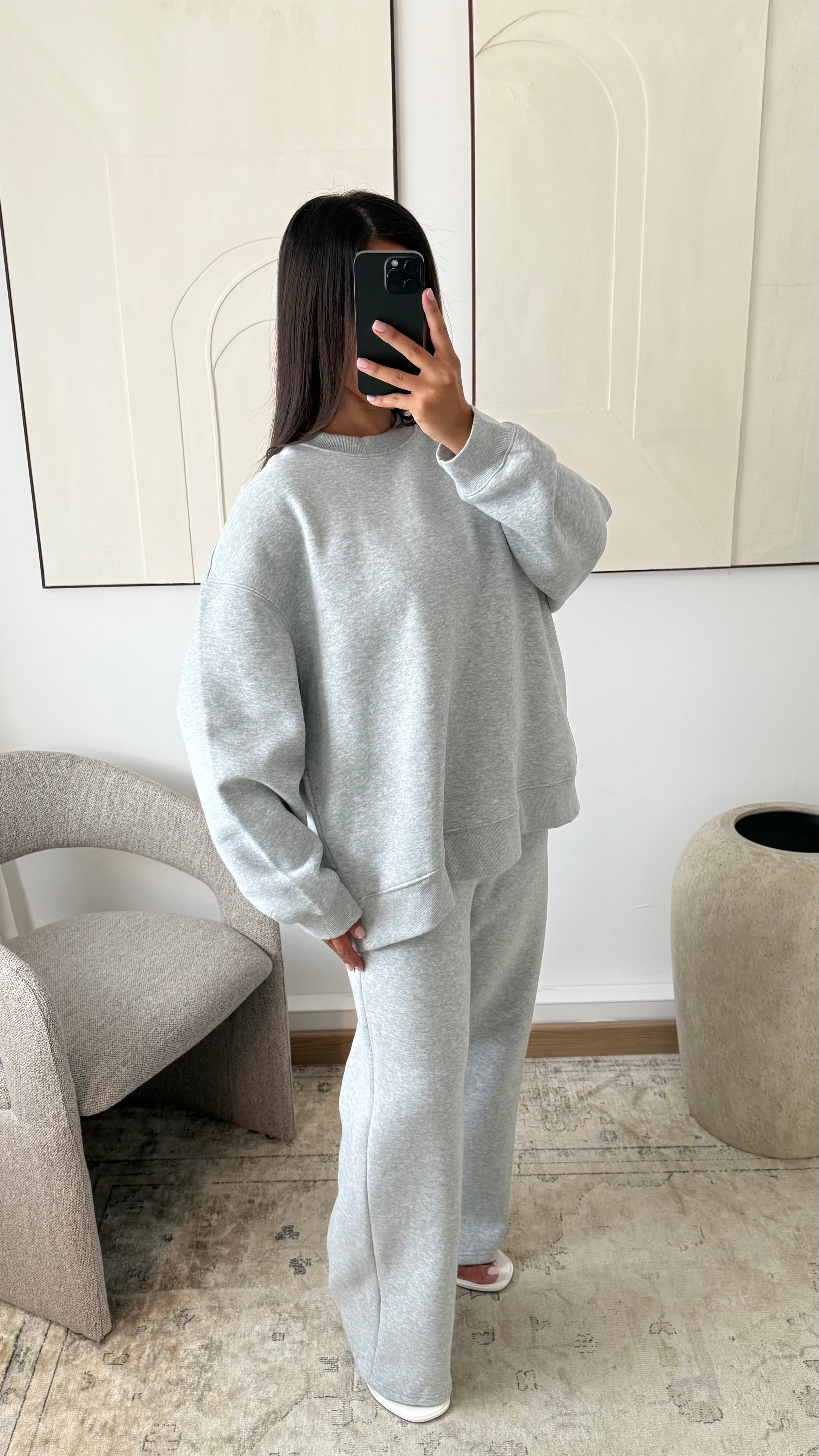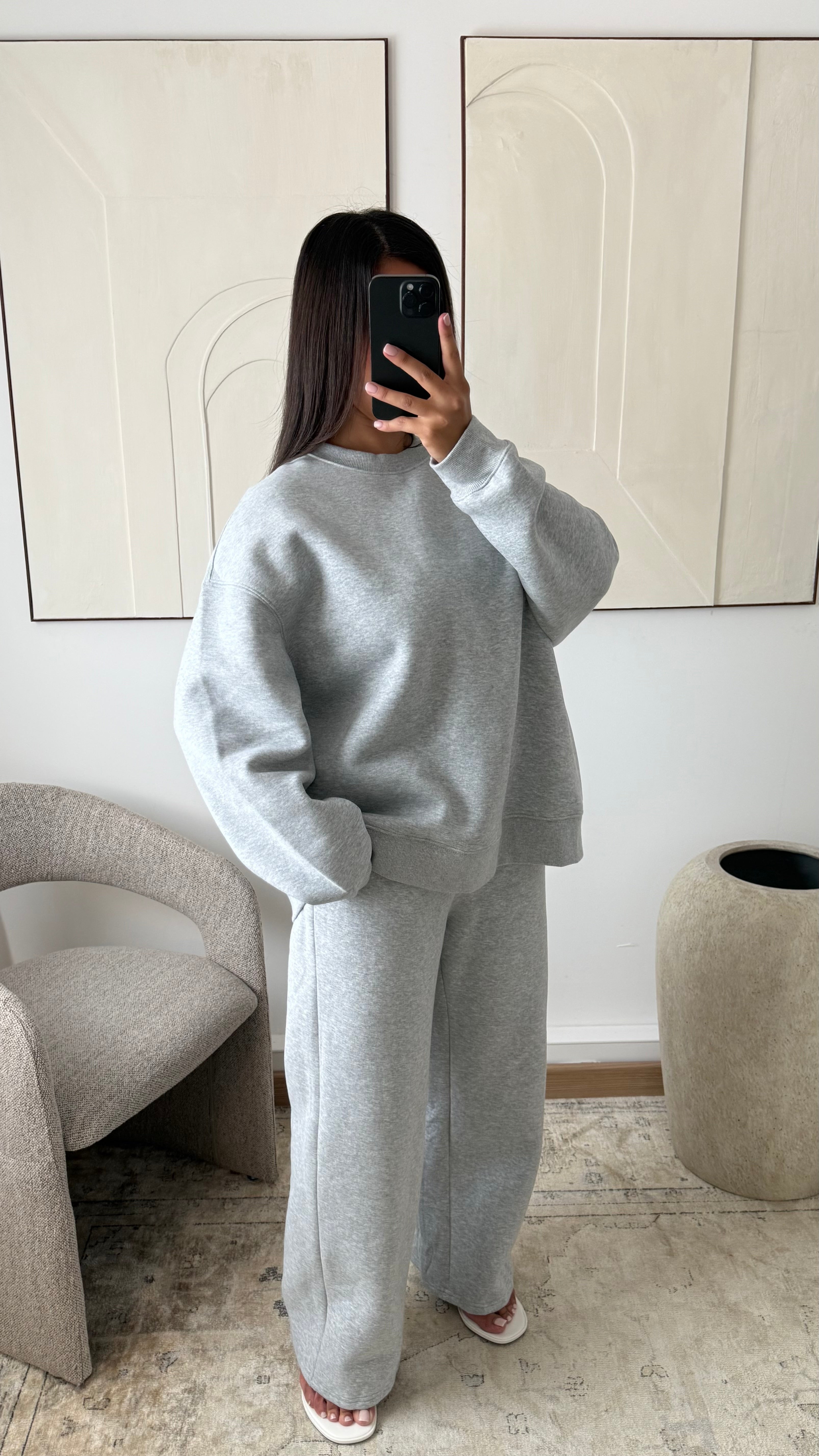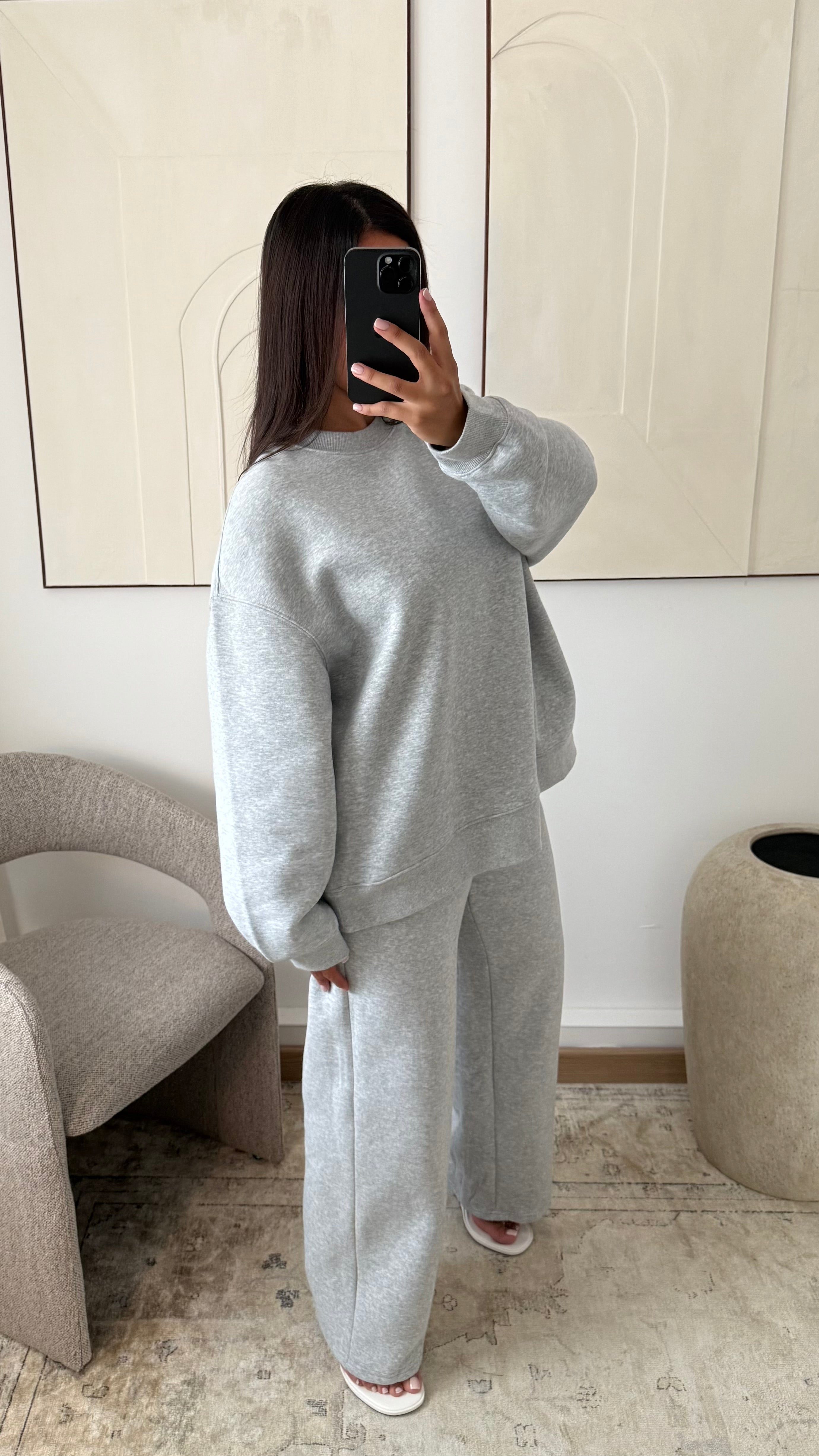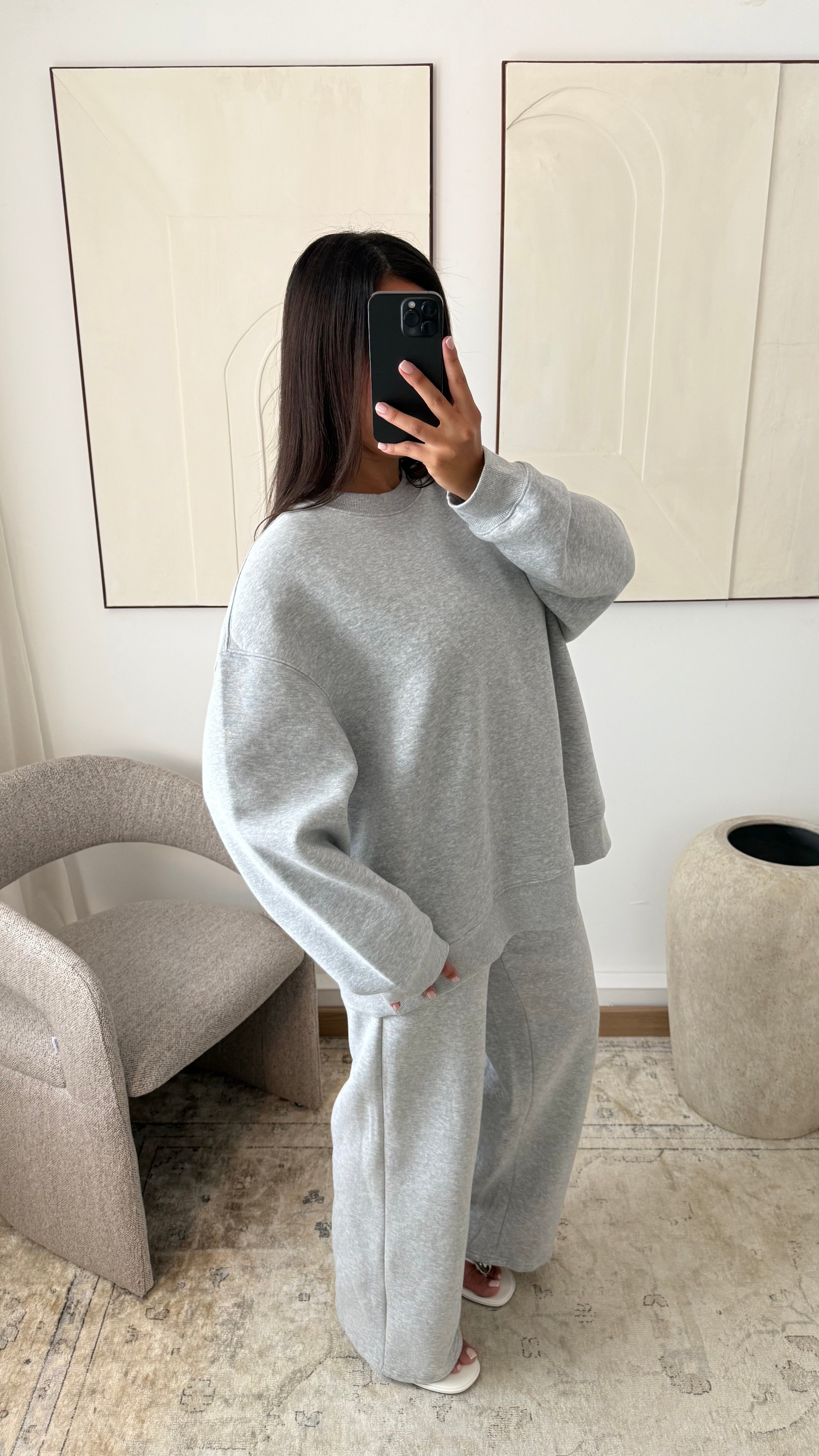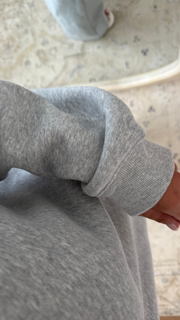 Sweat épais à la coupe oversize, doté de poches pratiques sur les côtés. Doux, chaud et décontracté, il se porte idéalement avec son jogging assorti pour un ensemble cocooning stylé, parfait pour la mi-saison.