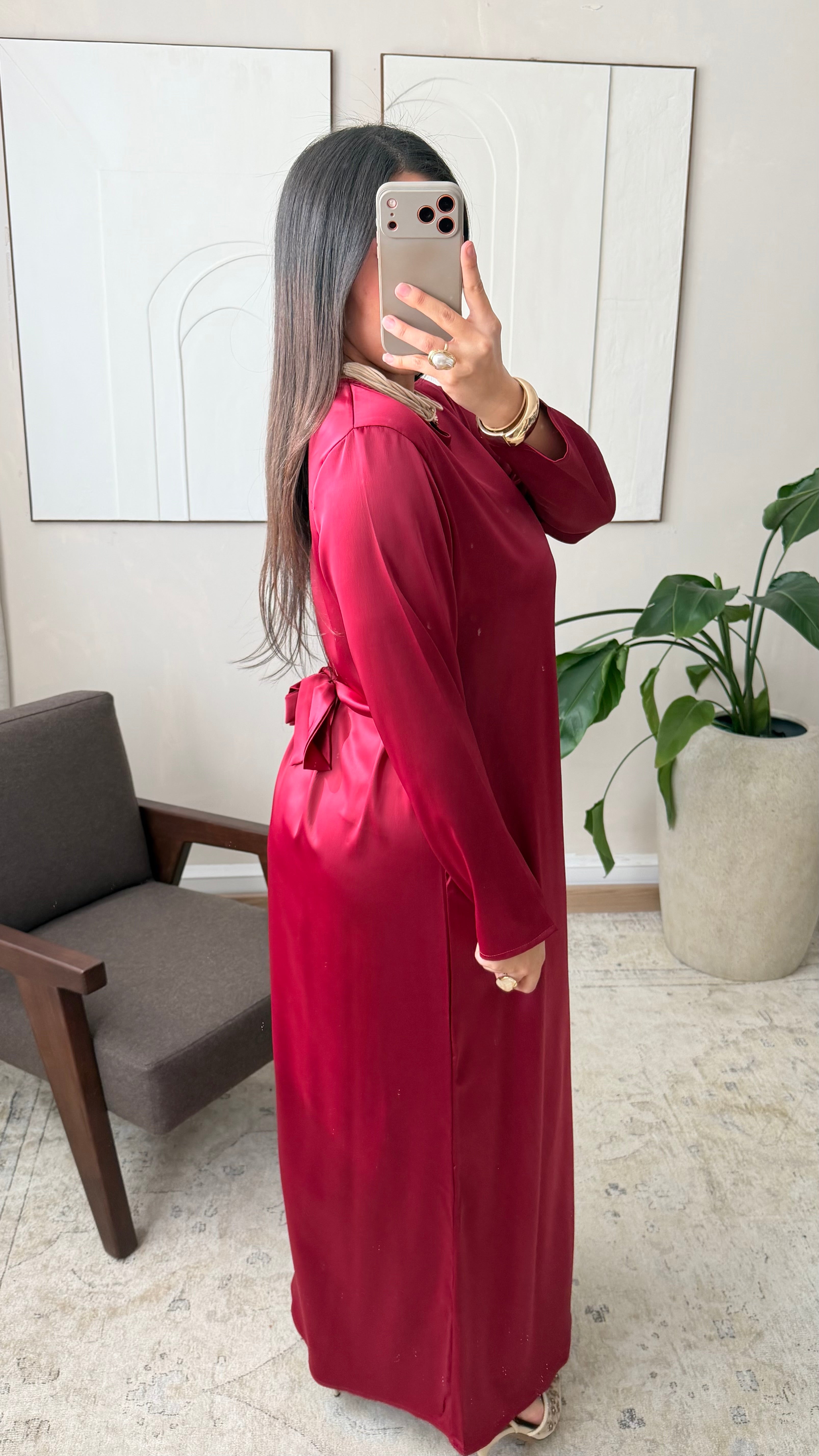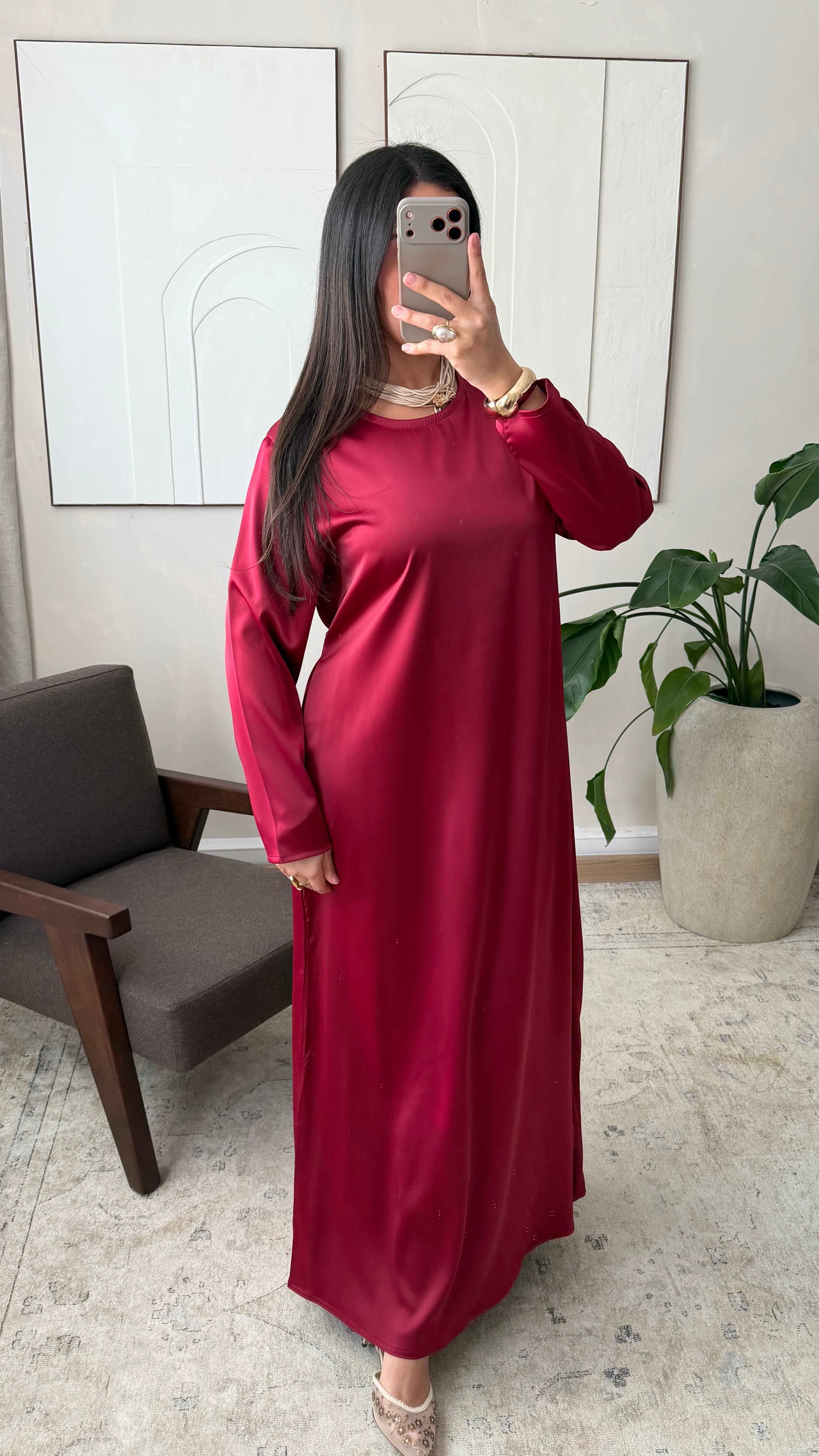 Cette robe longue satinée séduit par son élégance et sa silhouette féminine. Son tissu au fini délicatement brillant apporte une allure raffinée, tandis que sa coupe harmonieuse met en valeur la silhouette avec grâce. Une pièce idéale pour vos occasions spéciales.