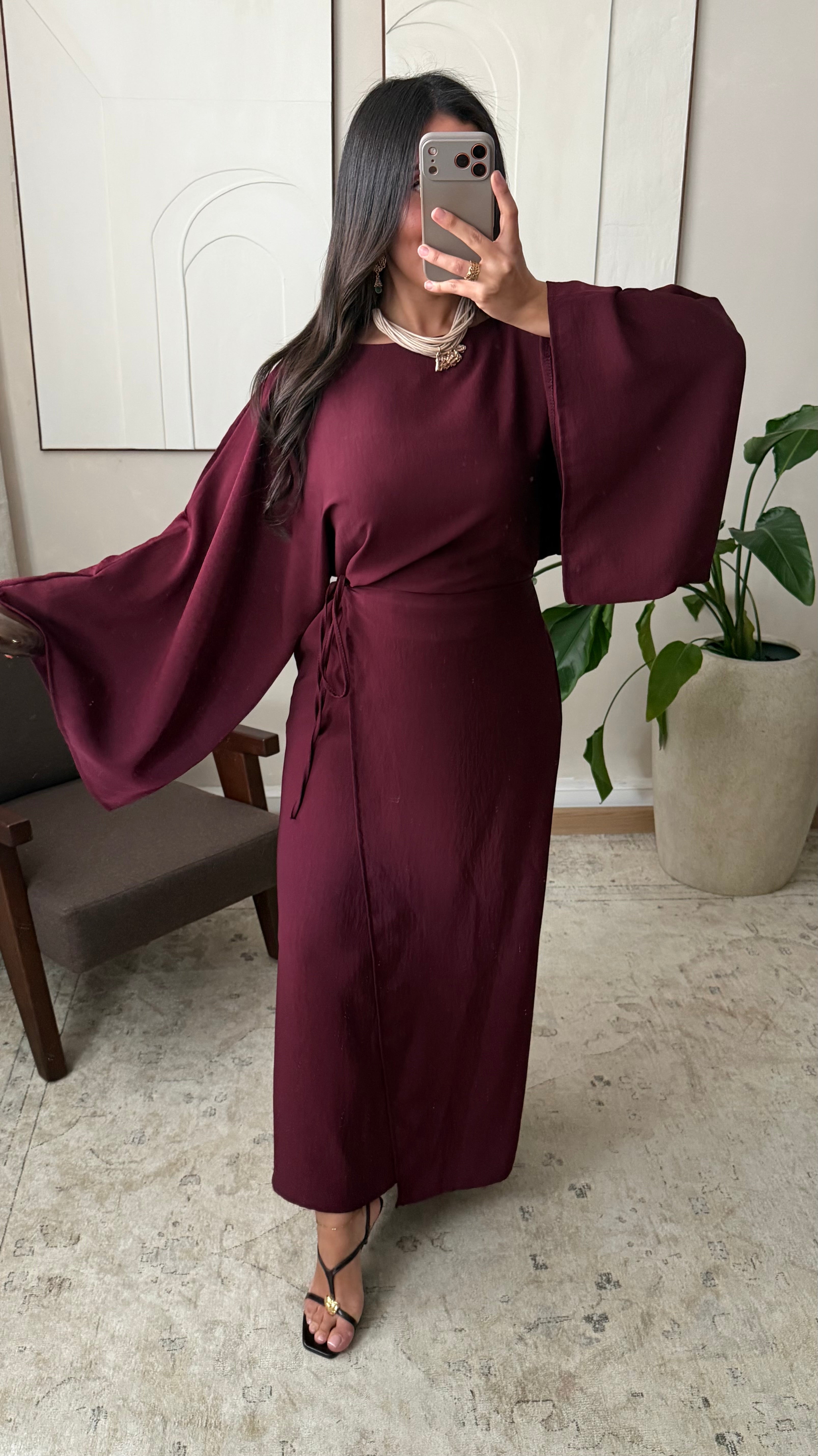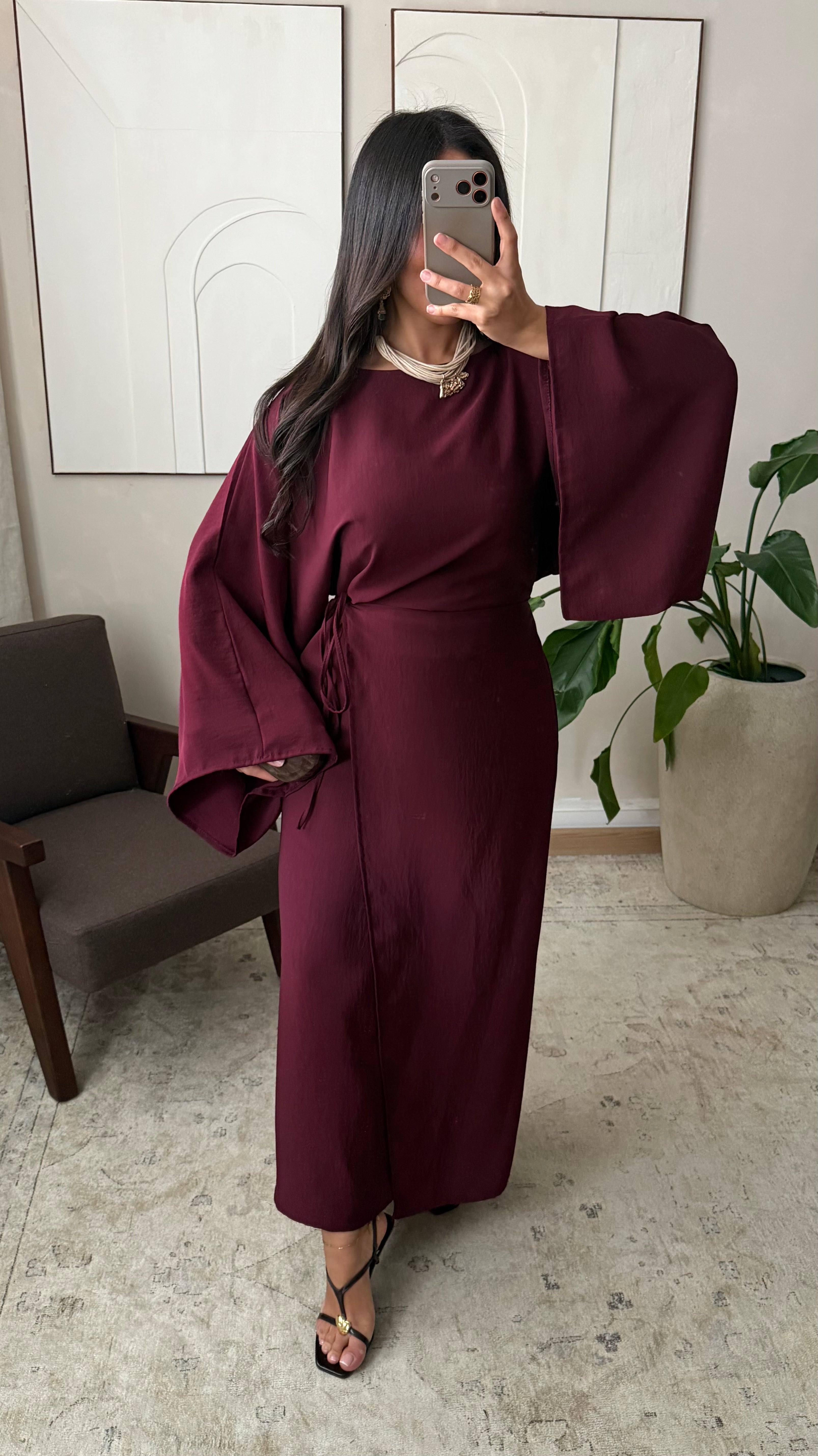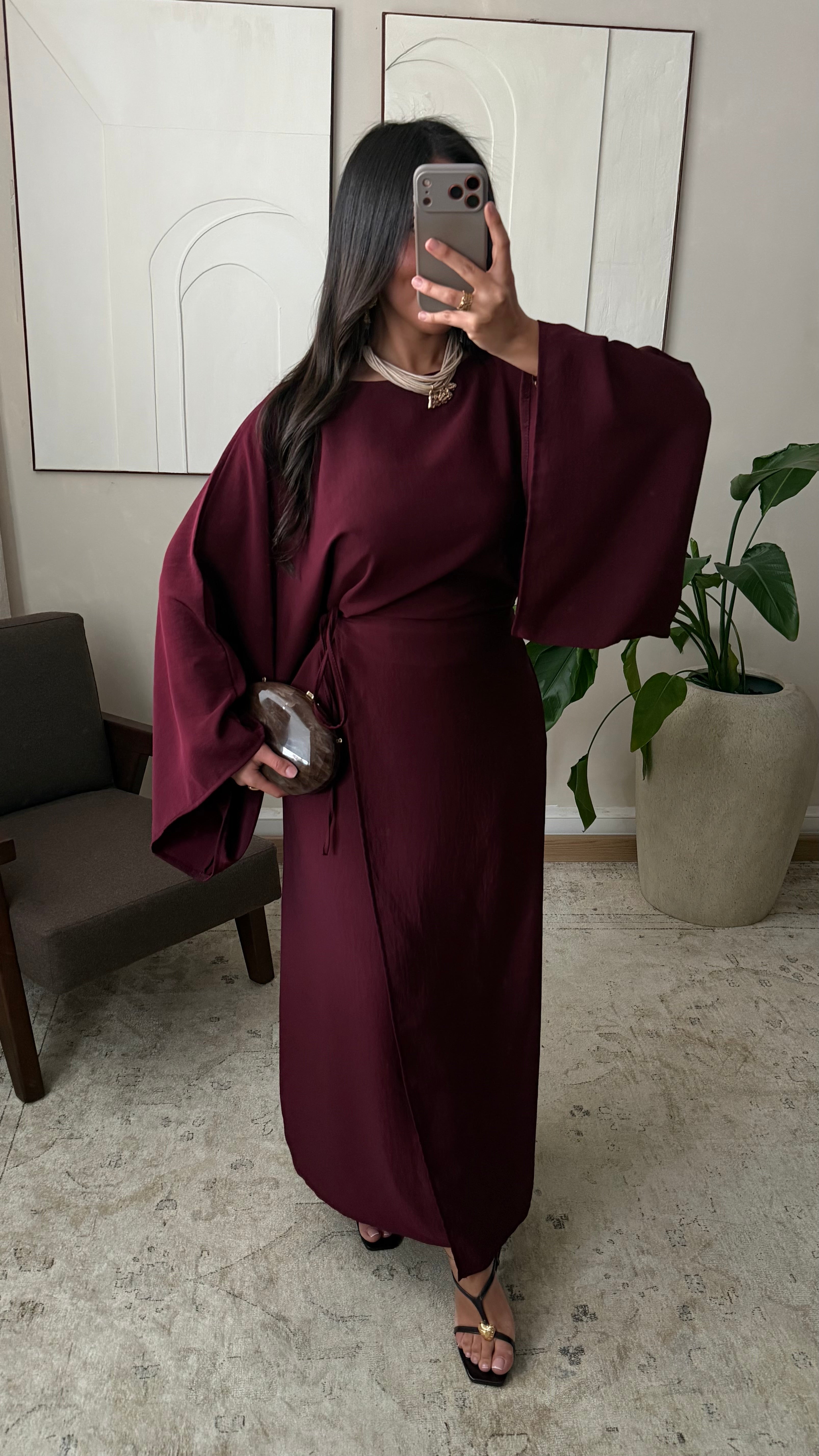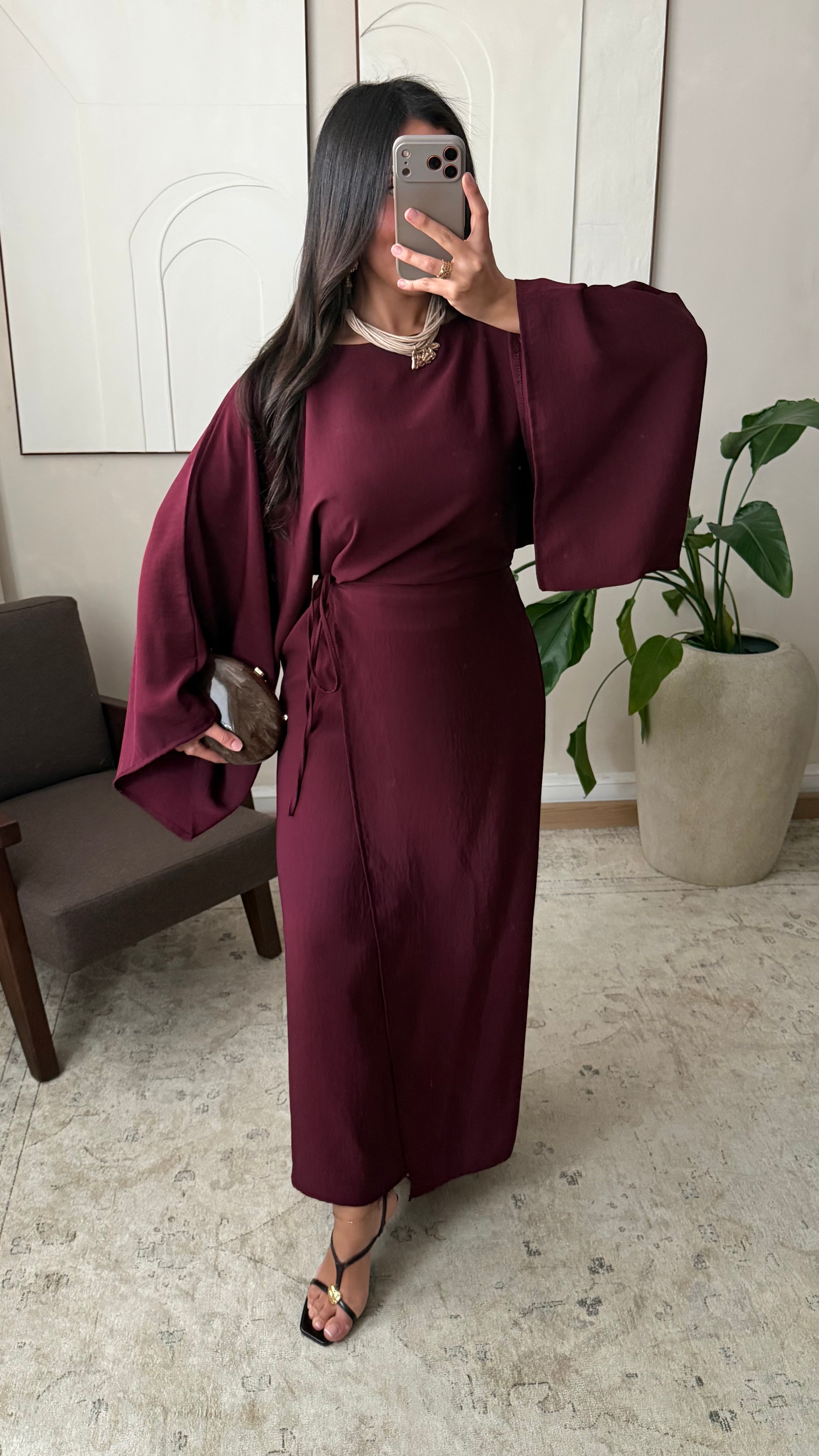 Robe portefeuille satinée sans ouverture I Bordeaux