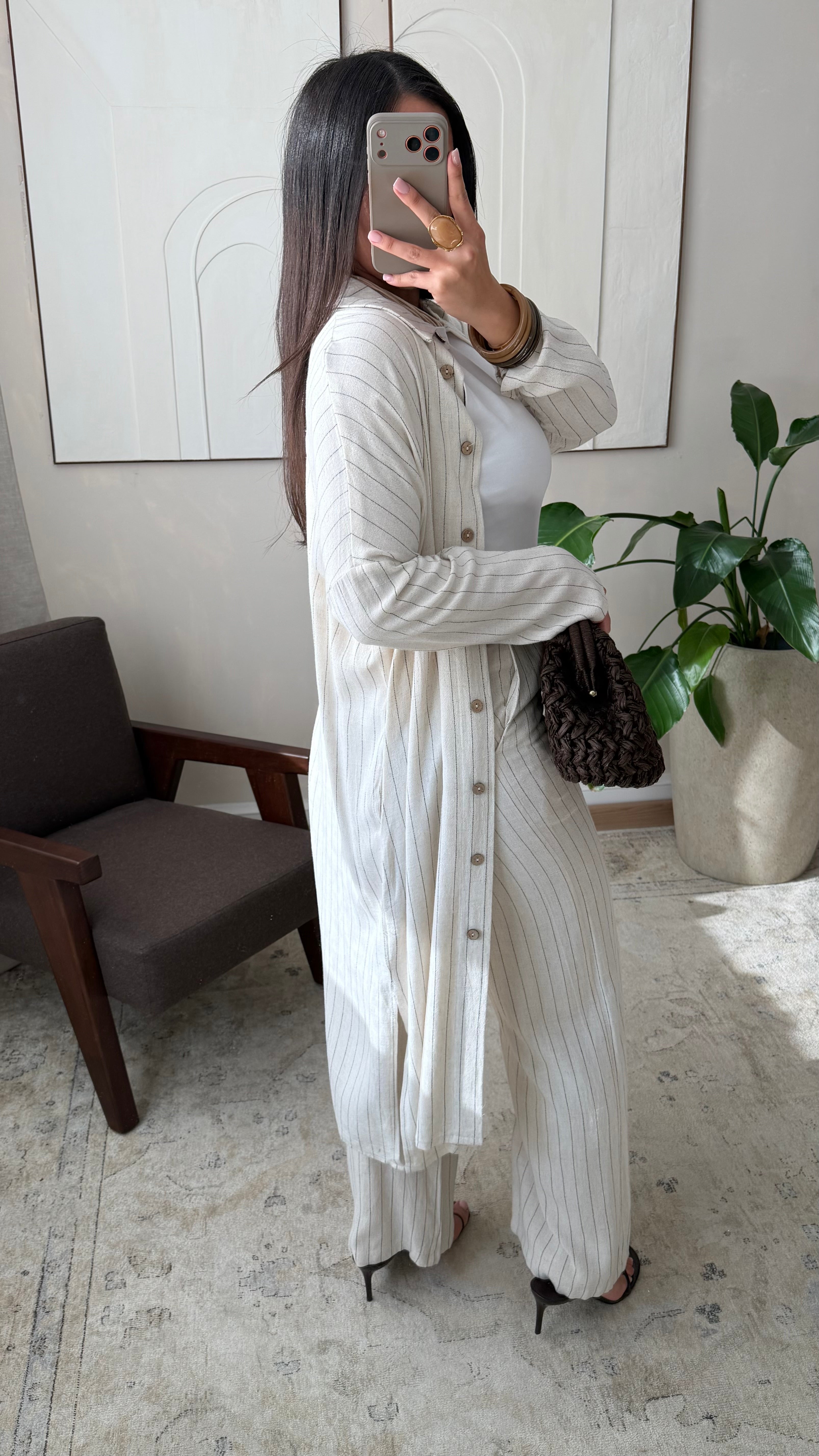 À porter seule comme tunique longue ou ouverte sur un pantalon fluide pour un ensemble élégant et minimaliste. Idéale pour un look modest fashion chic et naturel.