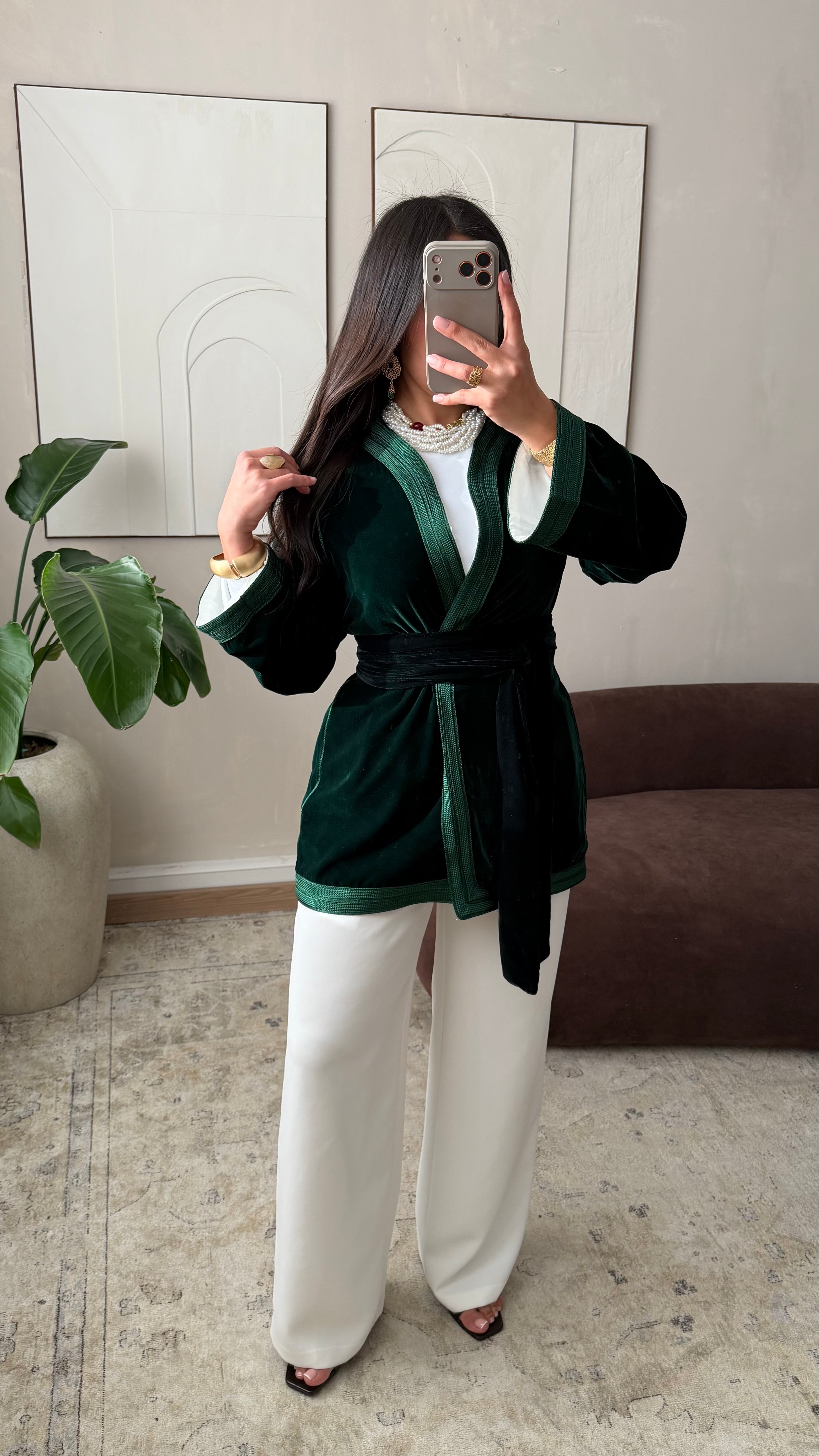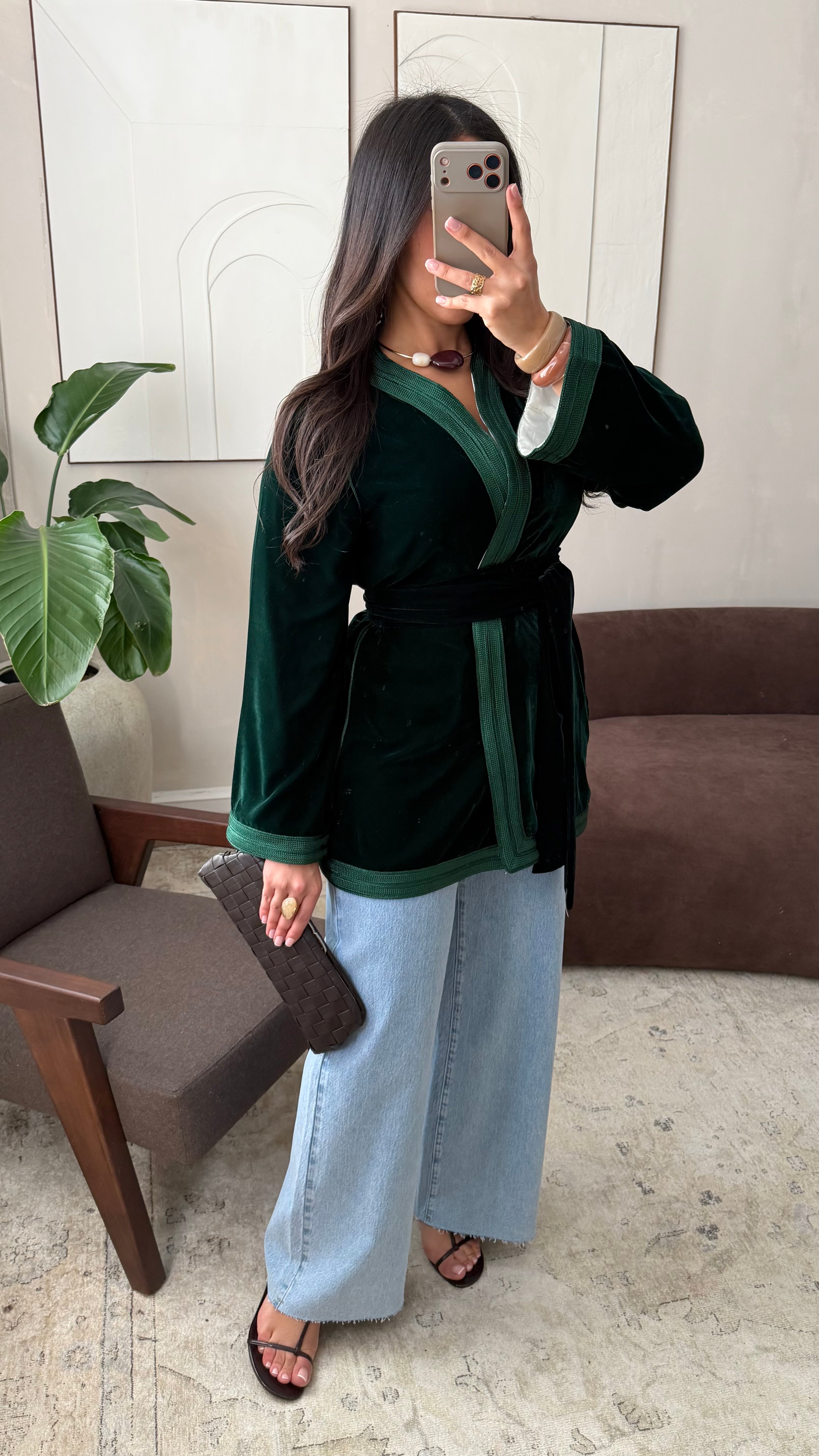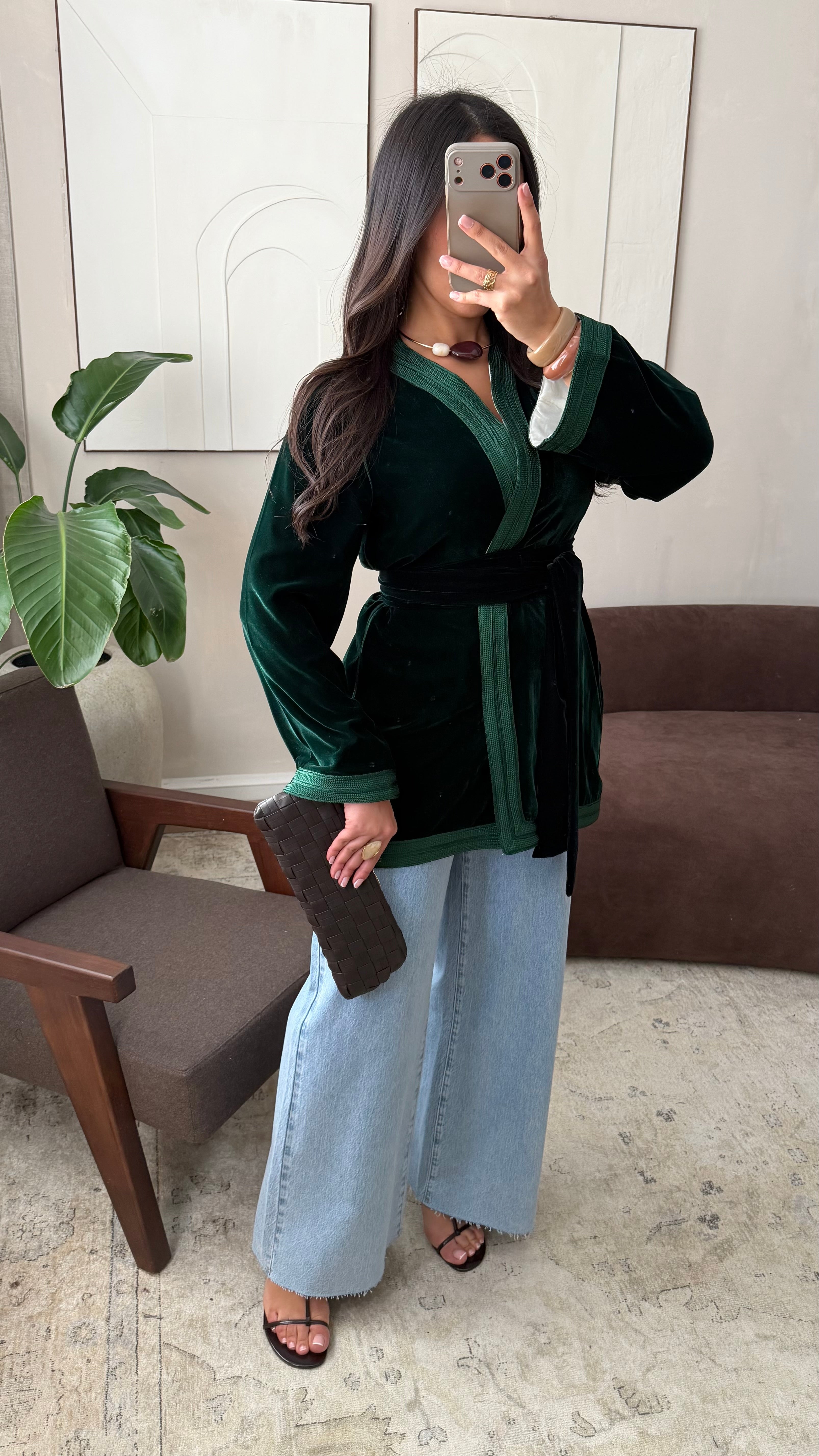 [ CRÉATION ARTISANALE ] Kimono en velours avec doublure satinée I Vert royal