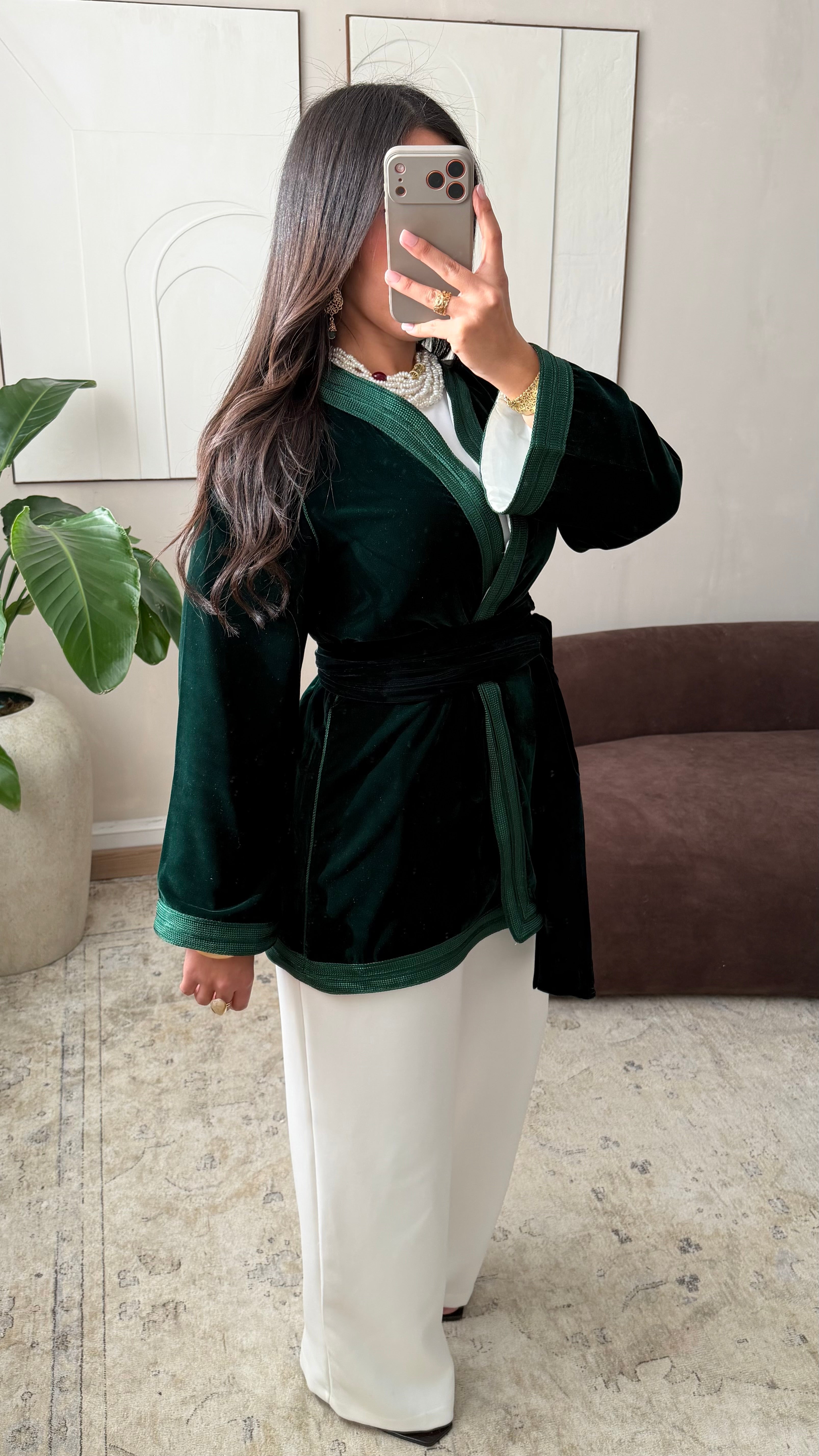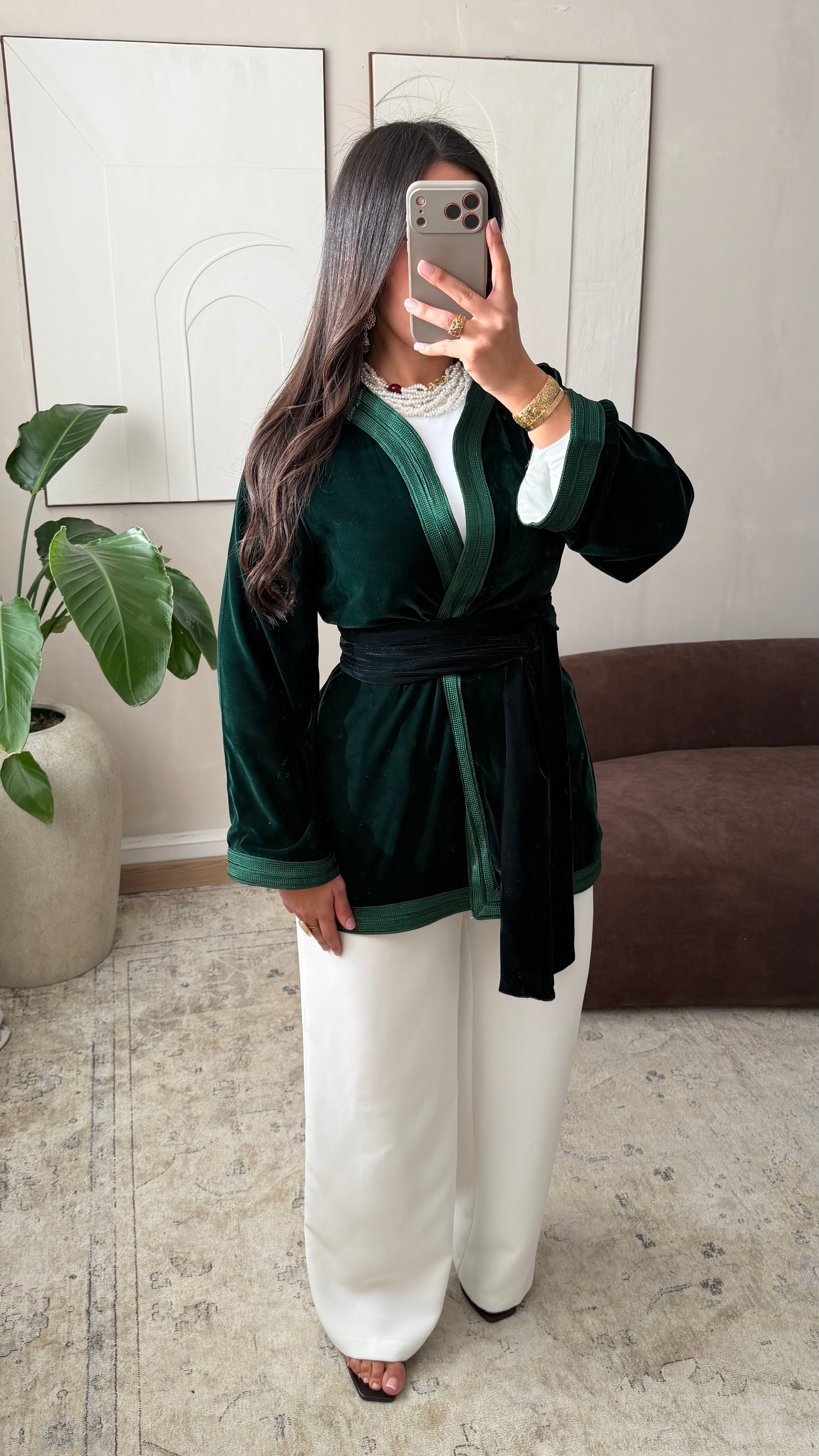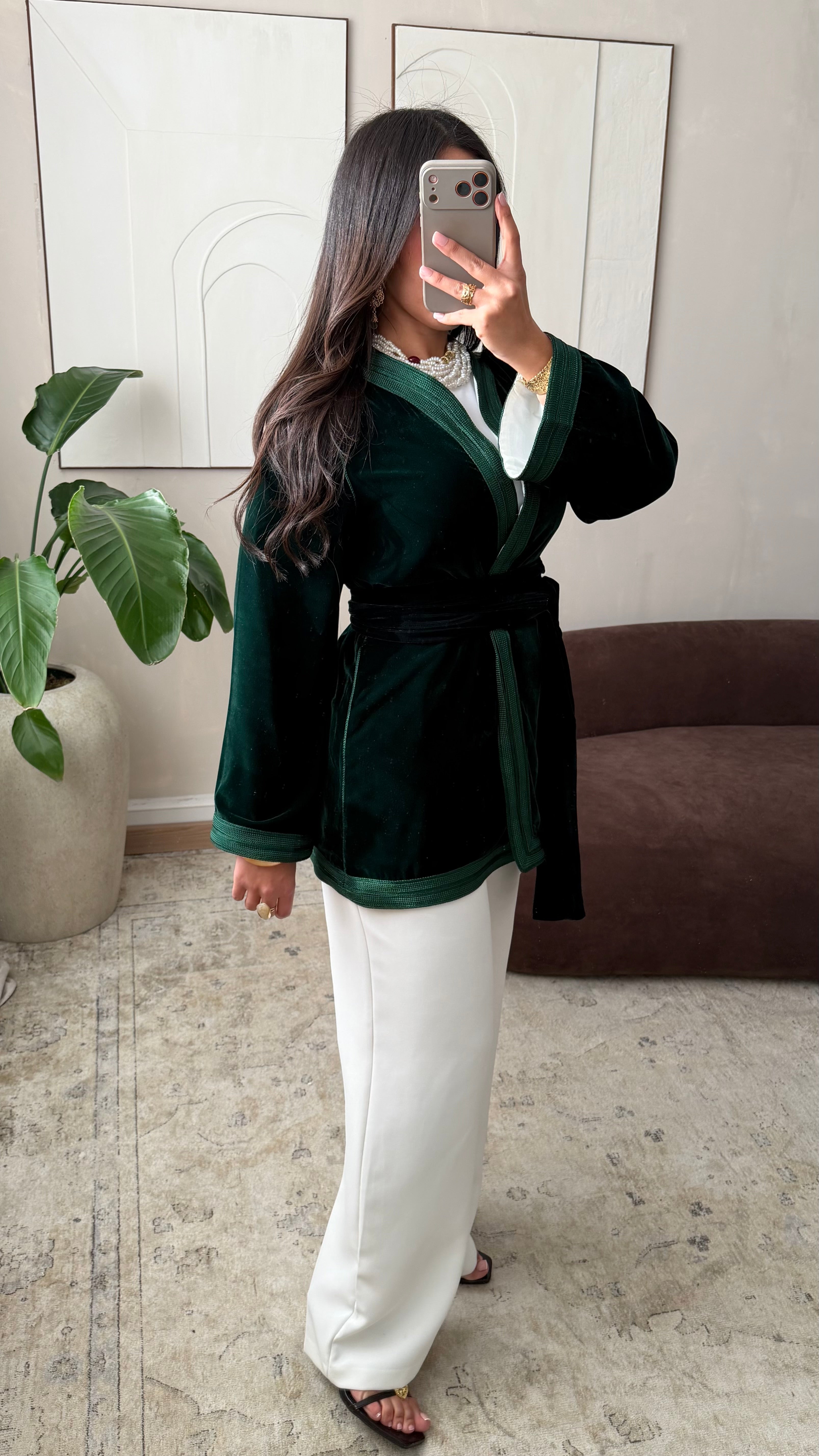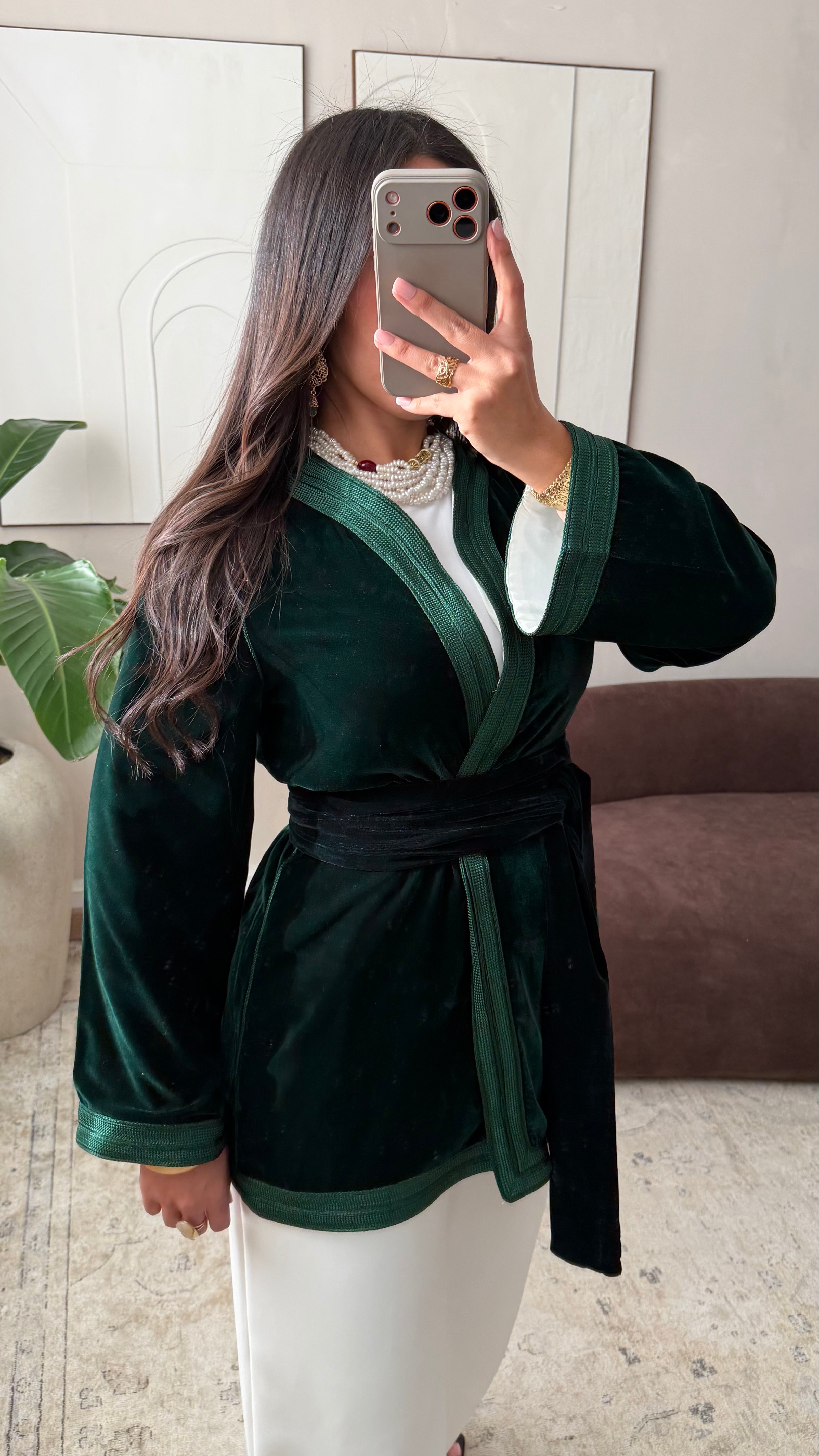 [ CRÉATION ARTISANALE ] Kimono en velours avec doublure satinée I Vert royal