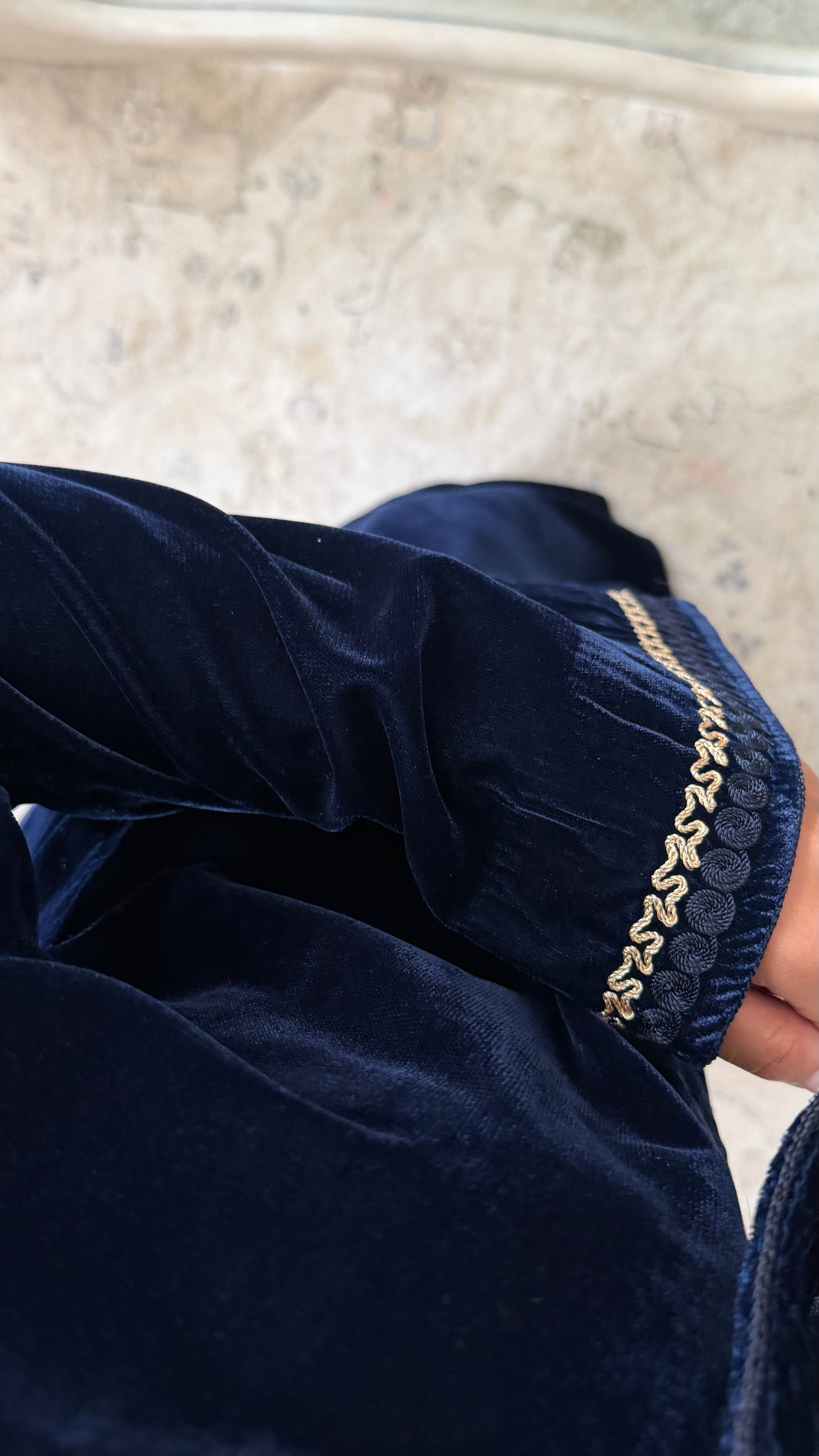 Idéale pour les mariages, cérémonies, fêtes et événements traditionnels ou élégants. À associer avec des talons raffinés et des accessoires précieux pour mettre en valeur l’élégance du velours et la ceinture.