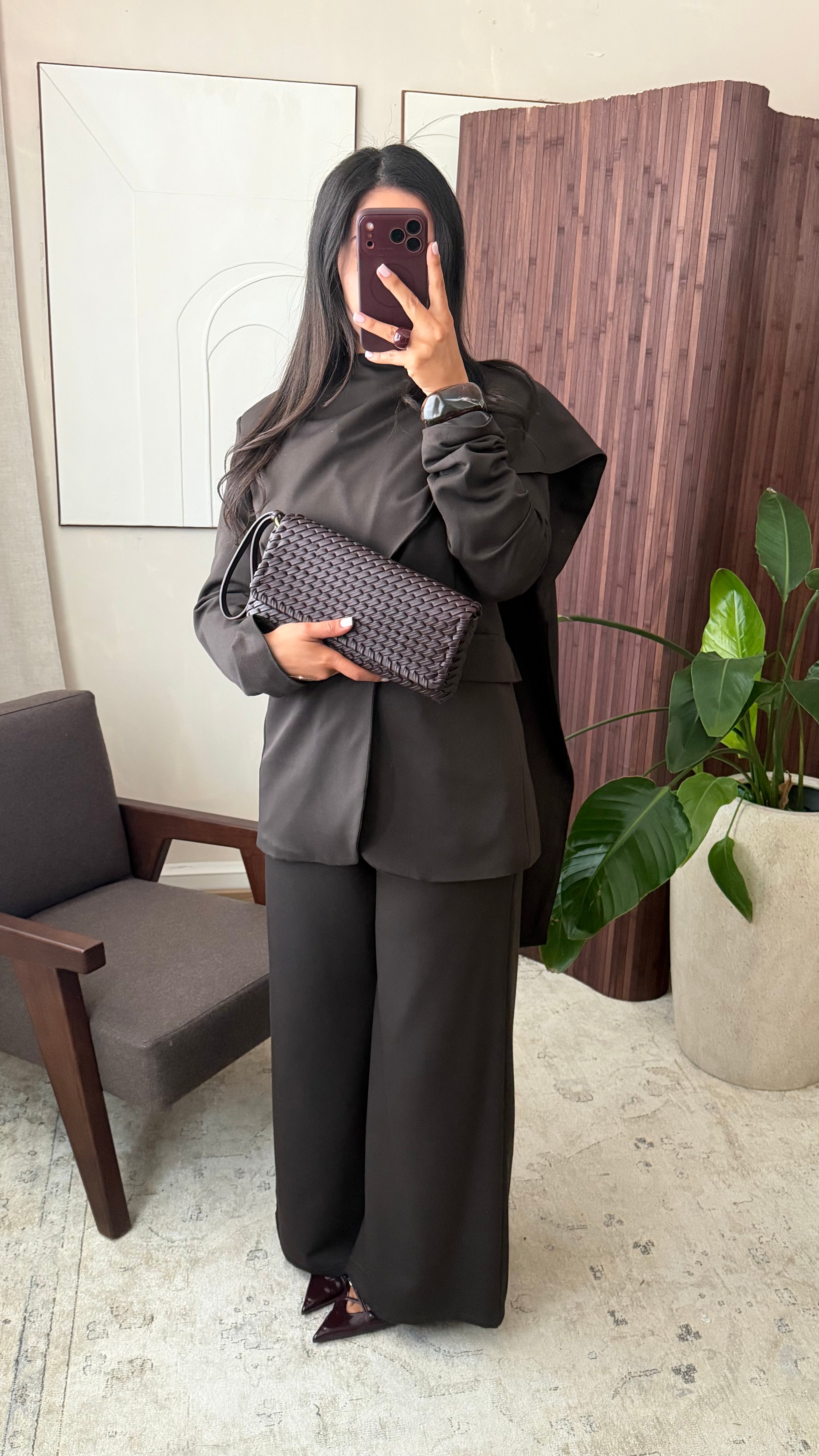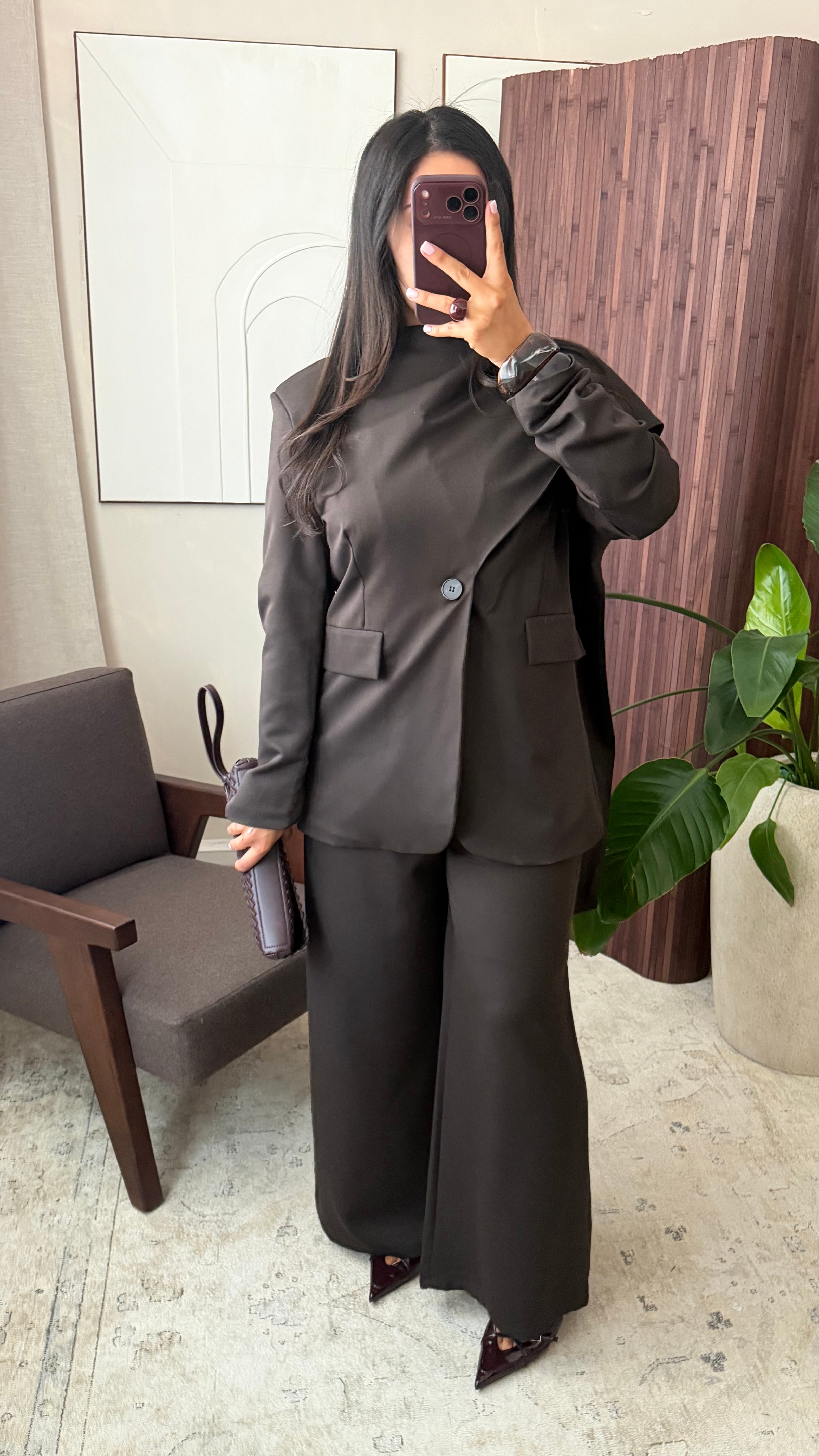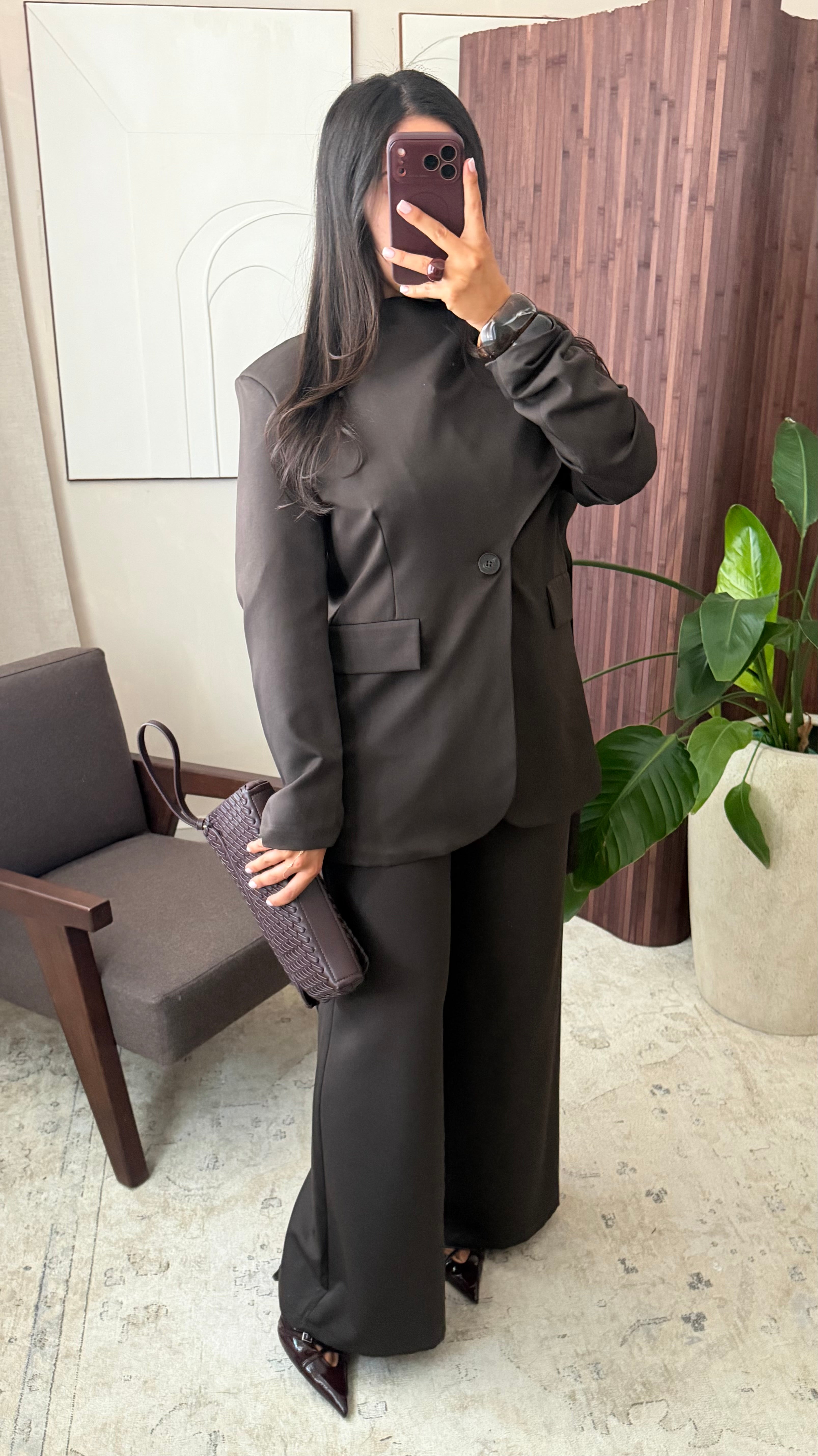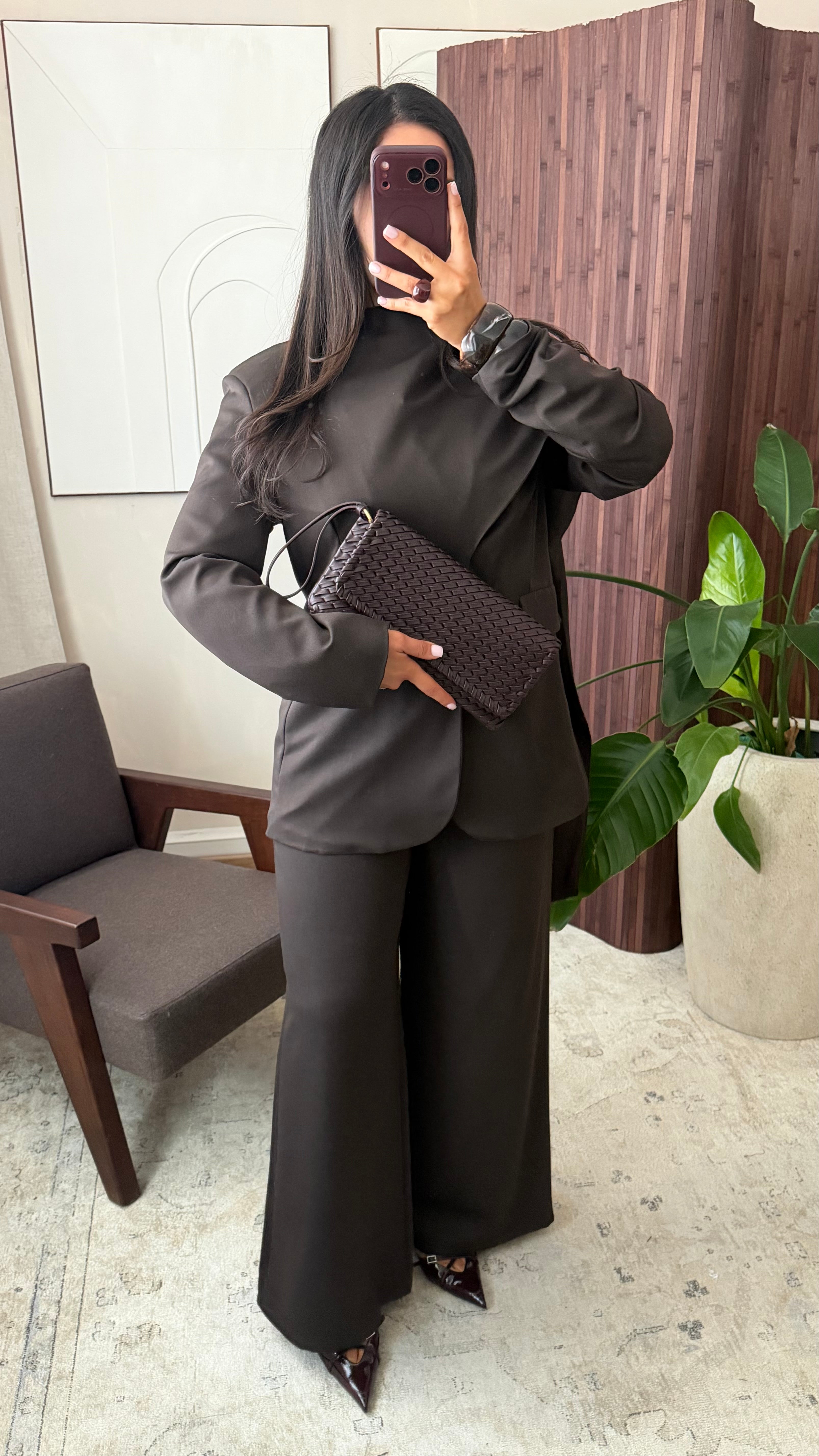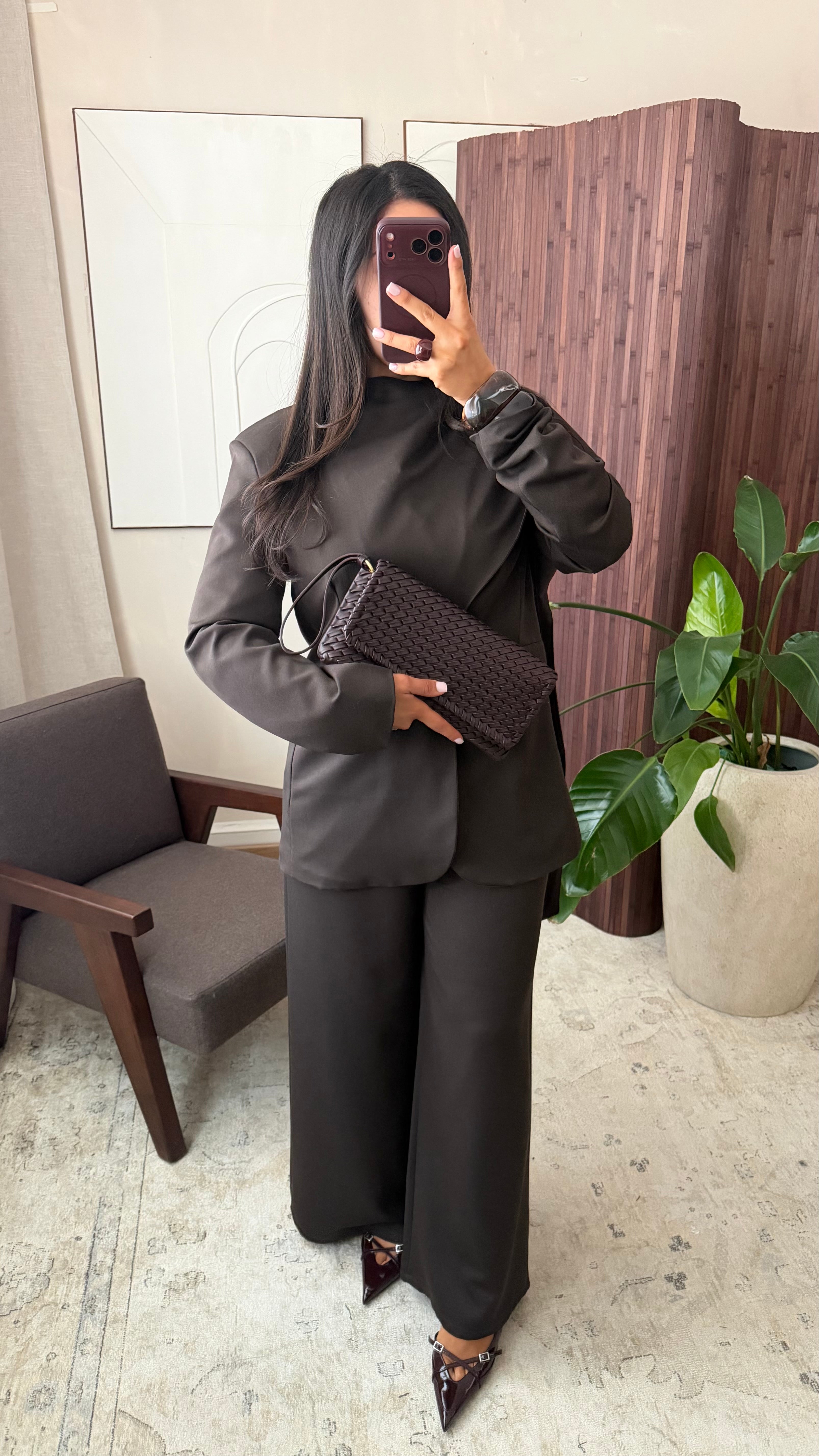 Ensemble blazer avec châle et pantalon I Marron chocolat