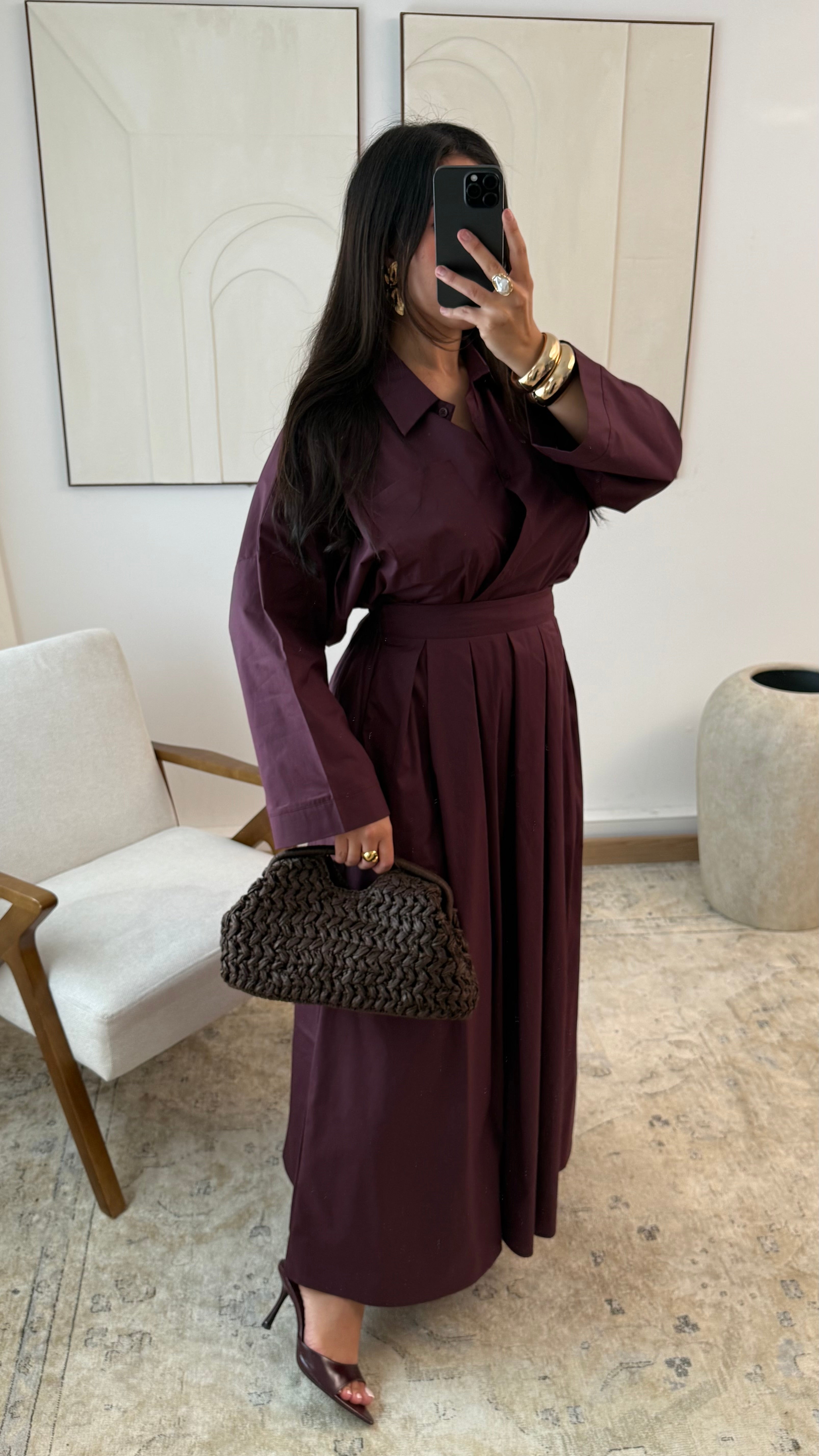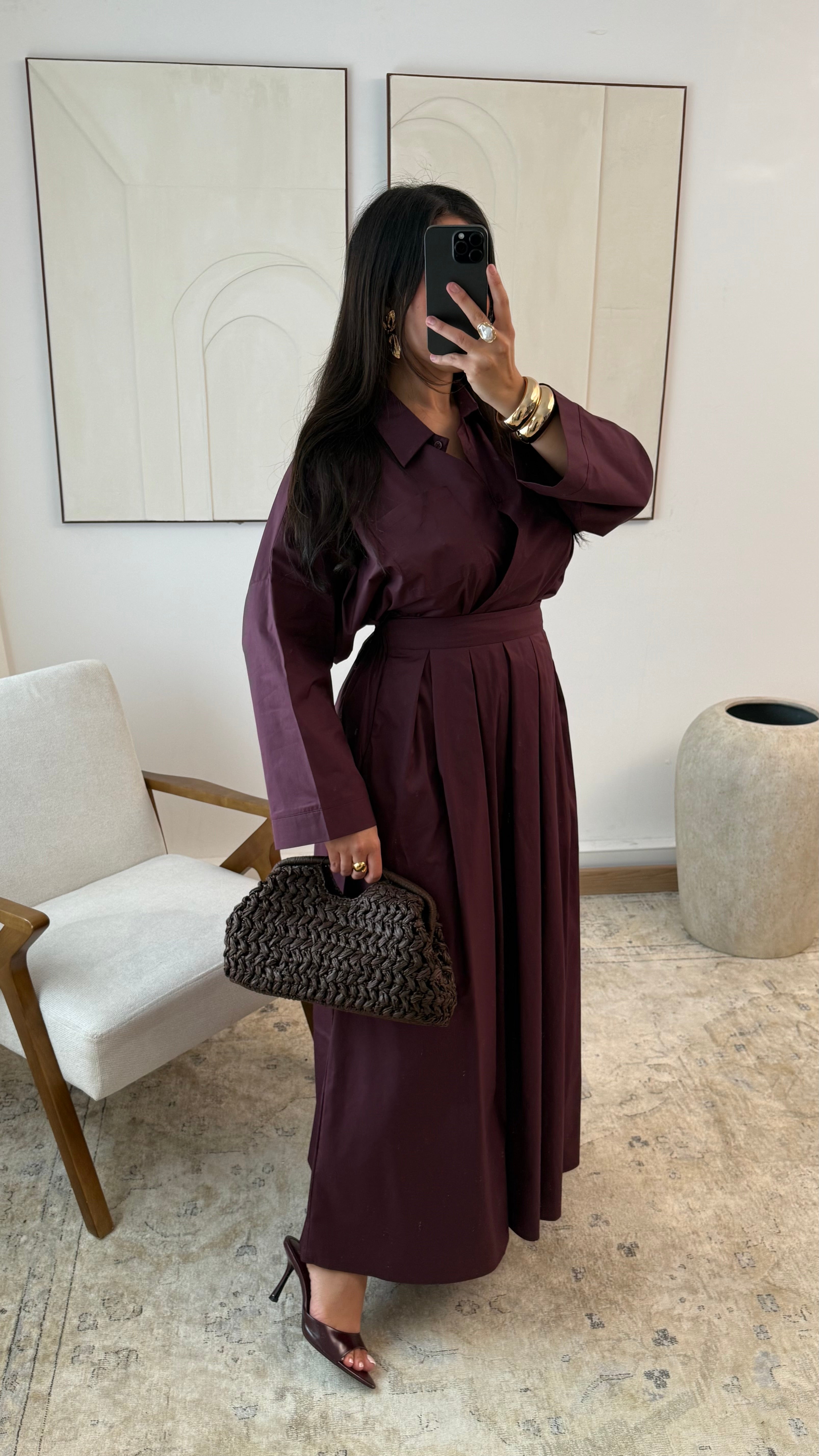 PRÉCOMMANDE Ensemble popeline chemise oversize et jupe bouffante I EVERYDAY - ML / Burgundy est en rupture de stock et sera envoyé dès qu'il sera disponible