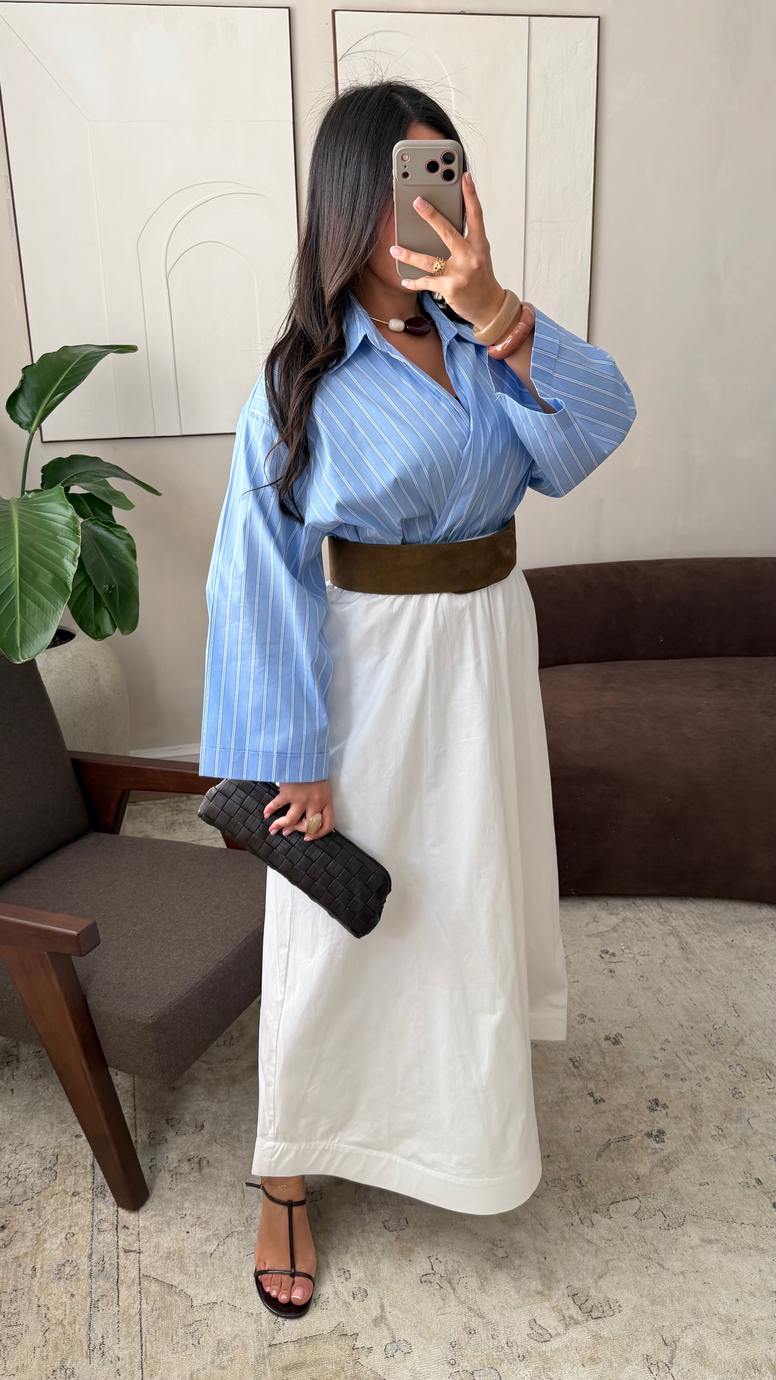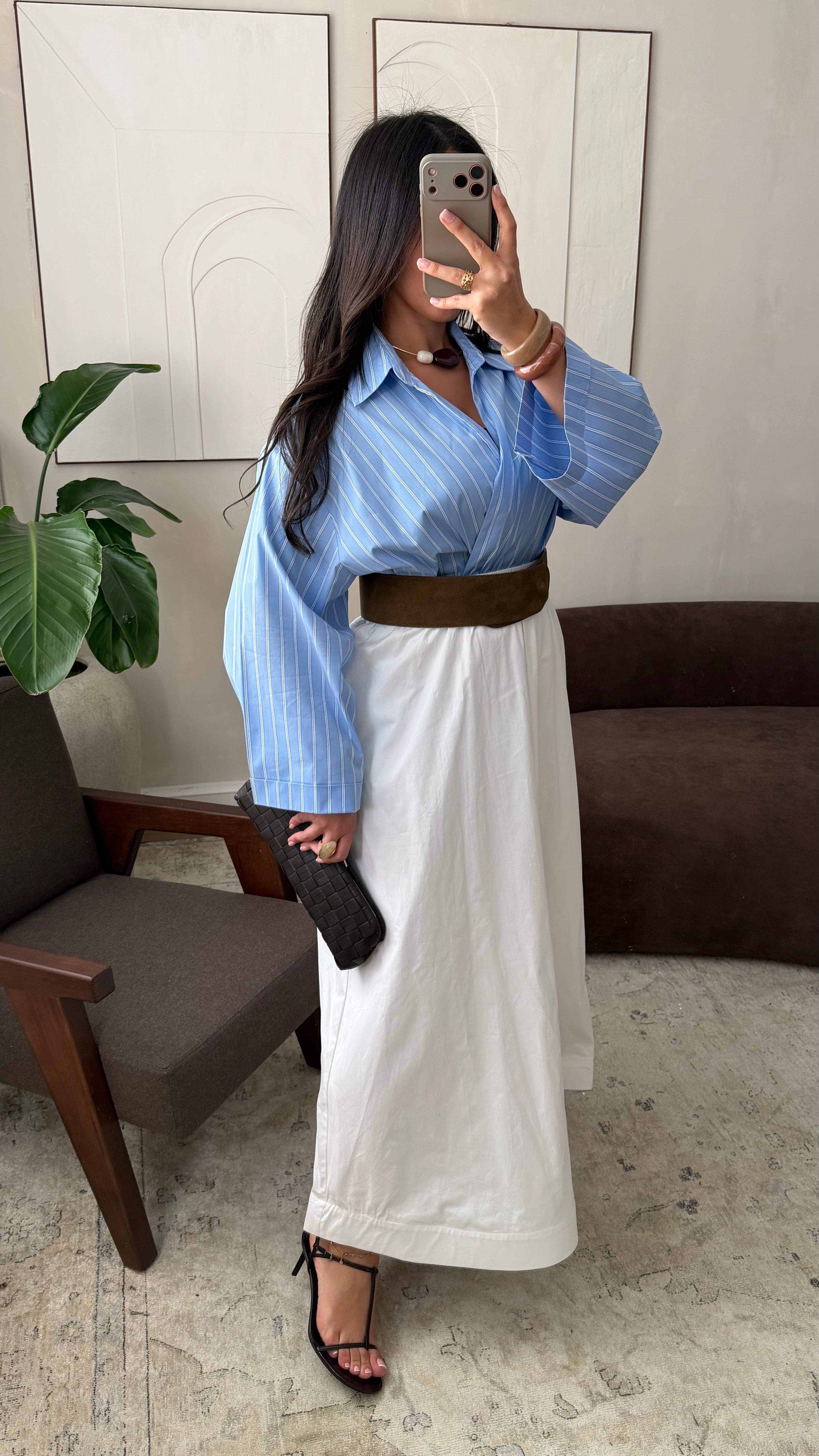 Cette jupe longue doublée est une pièce élégante et confortable qui sublime la silhouette tout en assurant un tombé parfait. Sa coupe fluide et structurée en fait un basique raffiné, idéal pour créer des looks chics et féminins en toutes occasions.