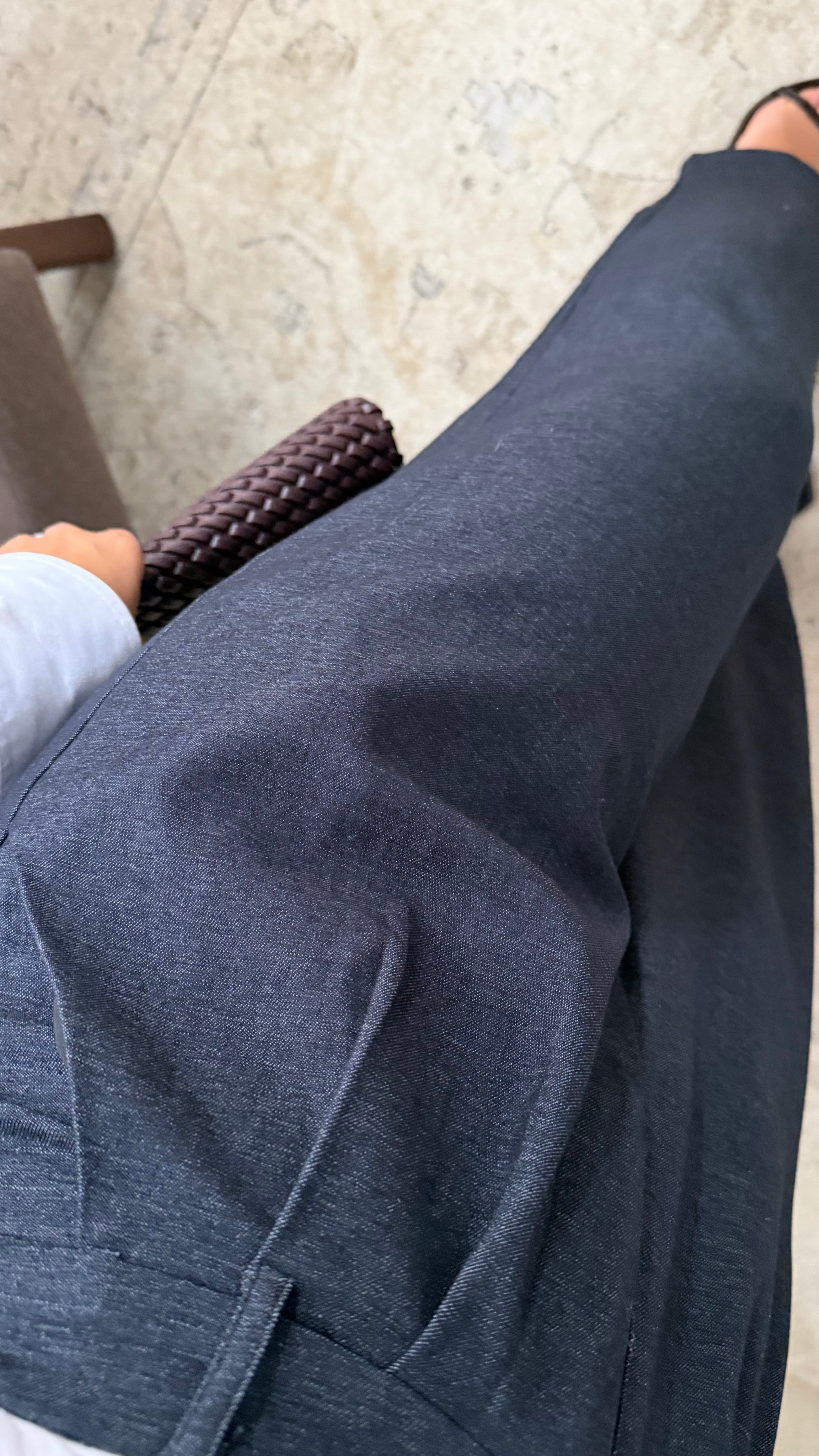 À associer avec le blazer effet jean assorti pour un total look comfy chic, ou à porter avec une chemise fluide ou un pull fin pour un style casual élégant.