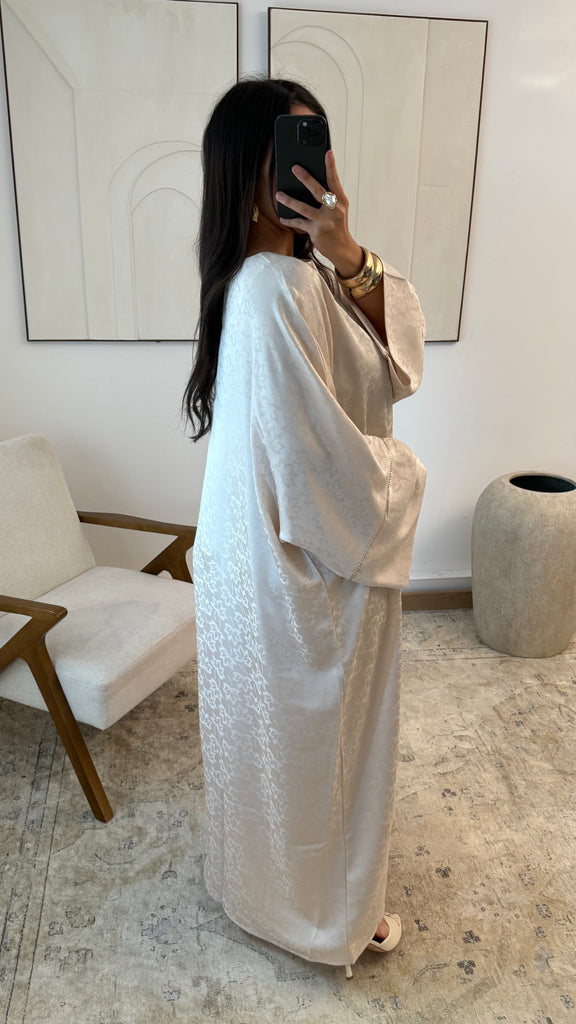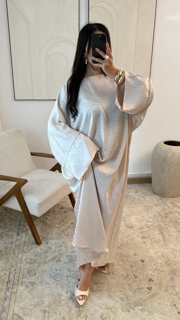 PRÉCOMMANDE Robe abaya large oversize à strass I SARMACANDE - Taille unique (34 au 48) / Écru est en rupture de stock et sera envoyé dès qu'il sera disponible