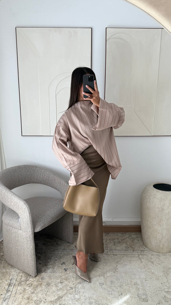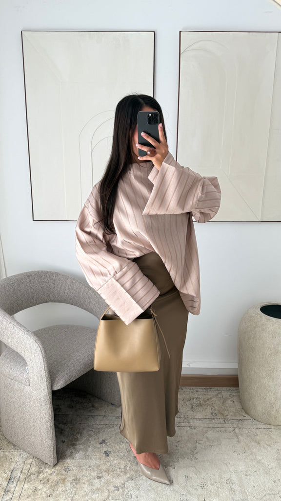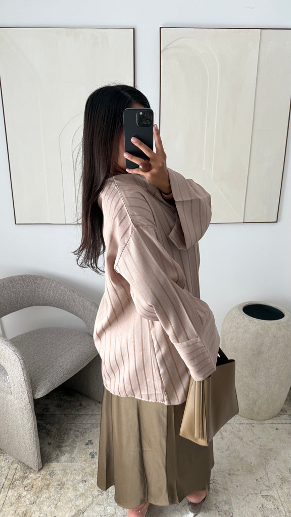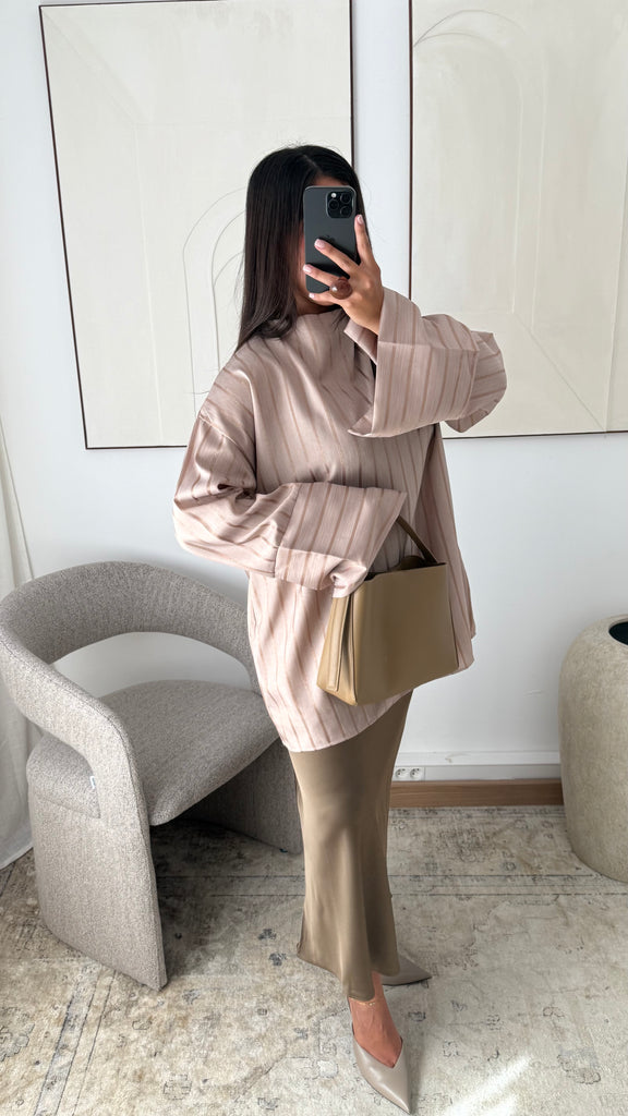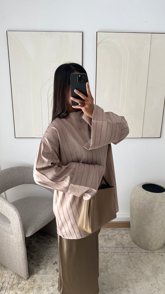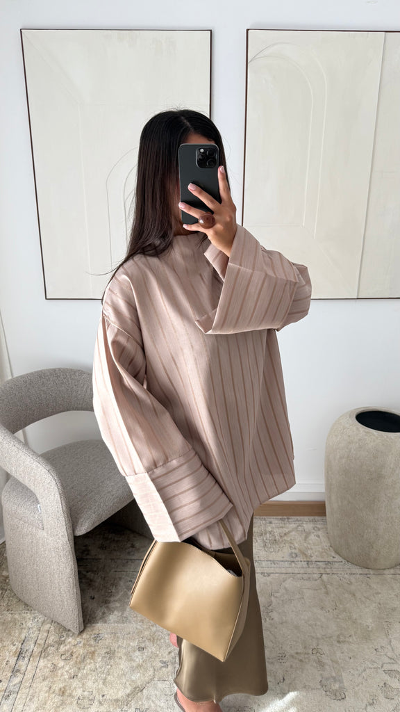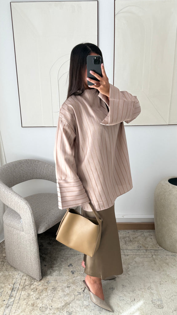 [EDITION LIMITÉE ATELIER DUBAÏ] Haut oversize long à rayures KAYAZ I Beige nude