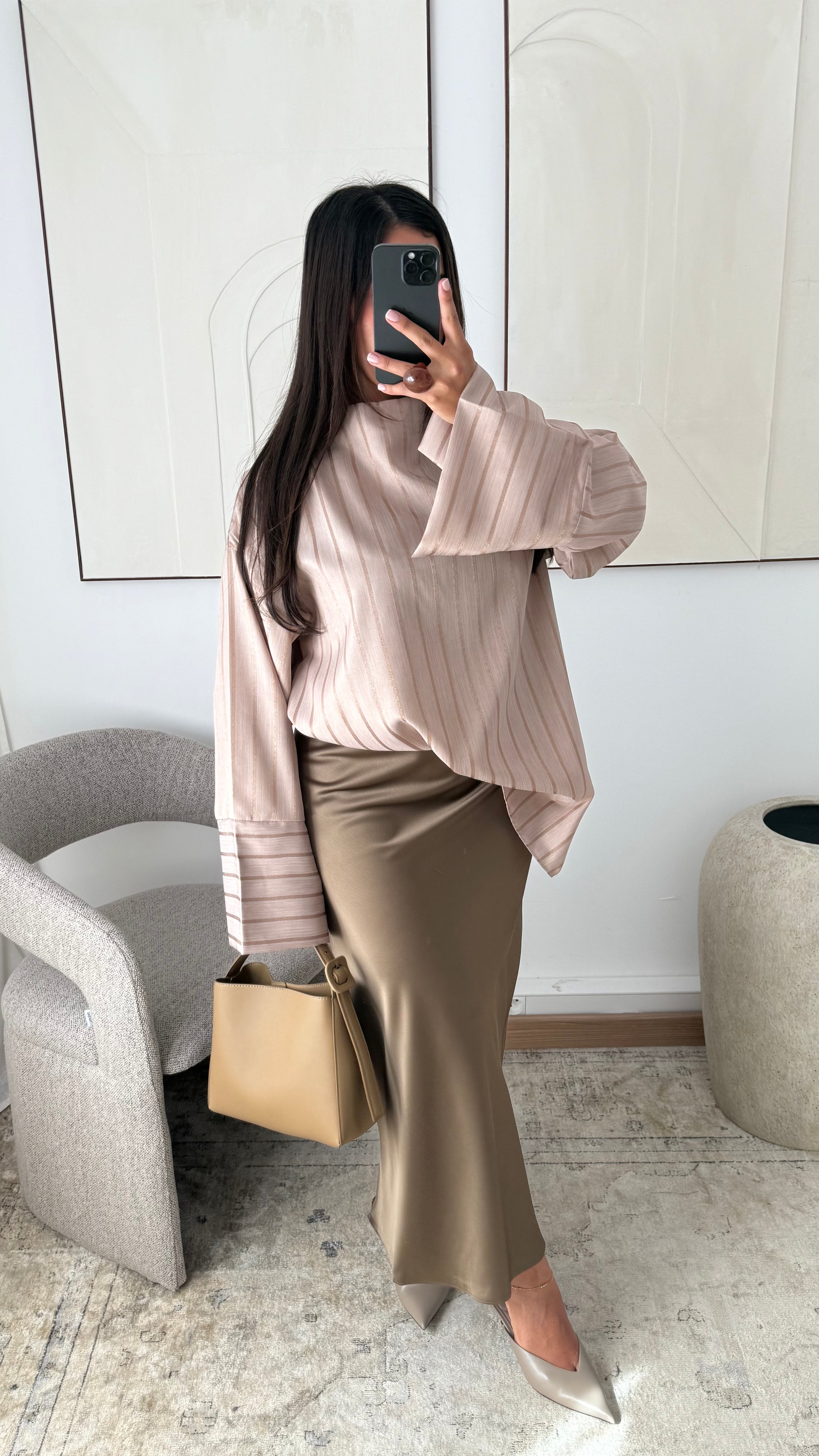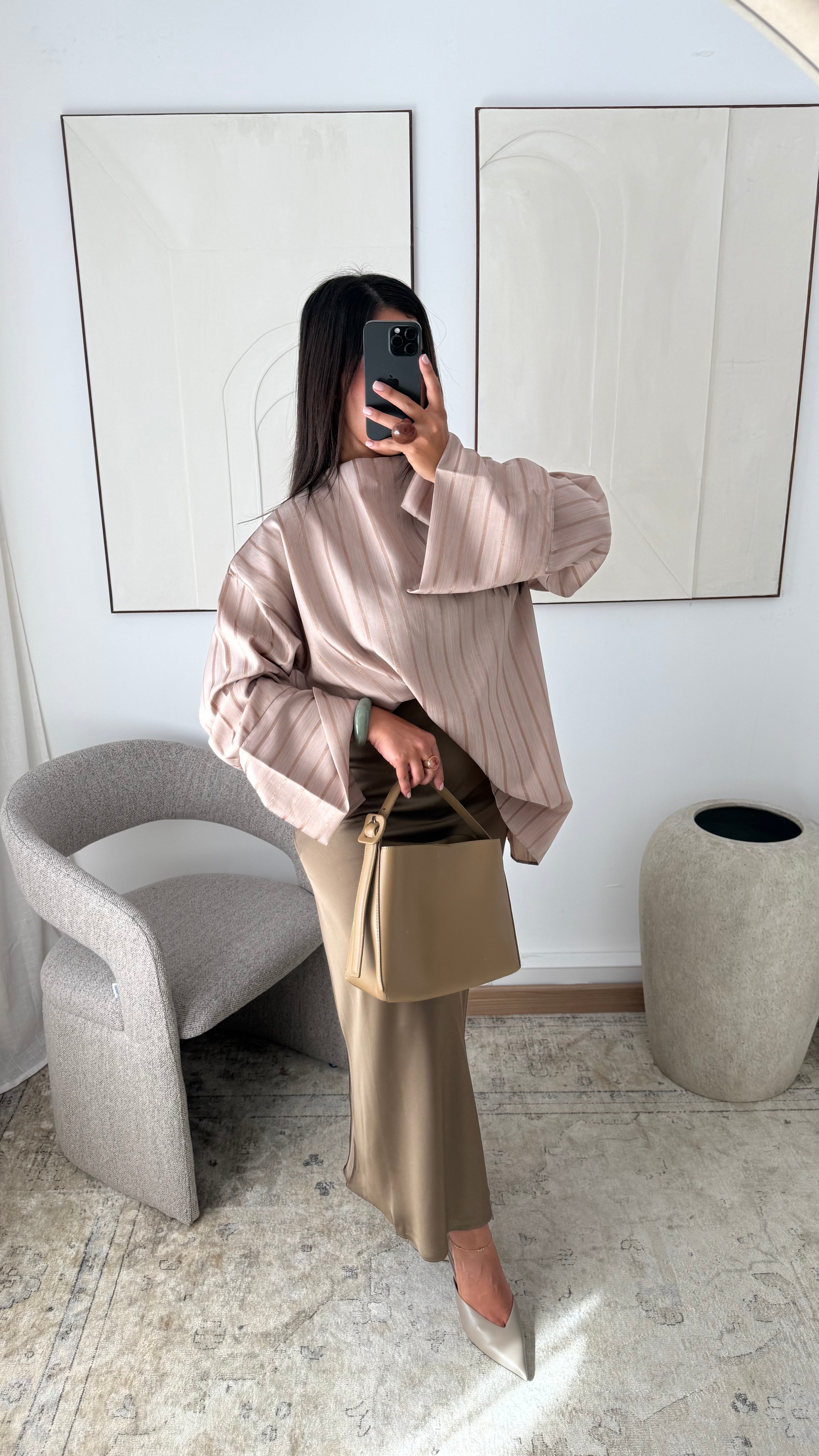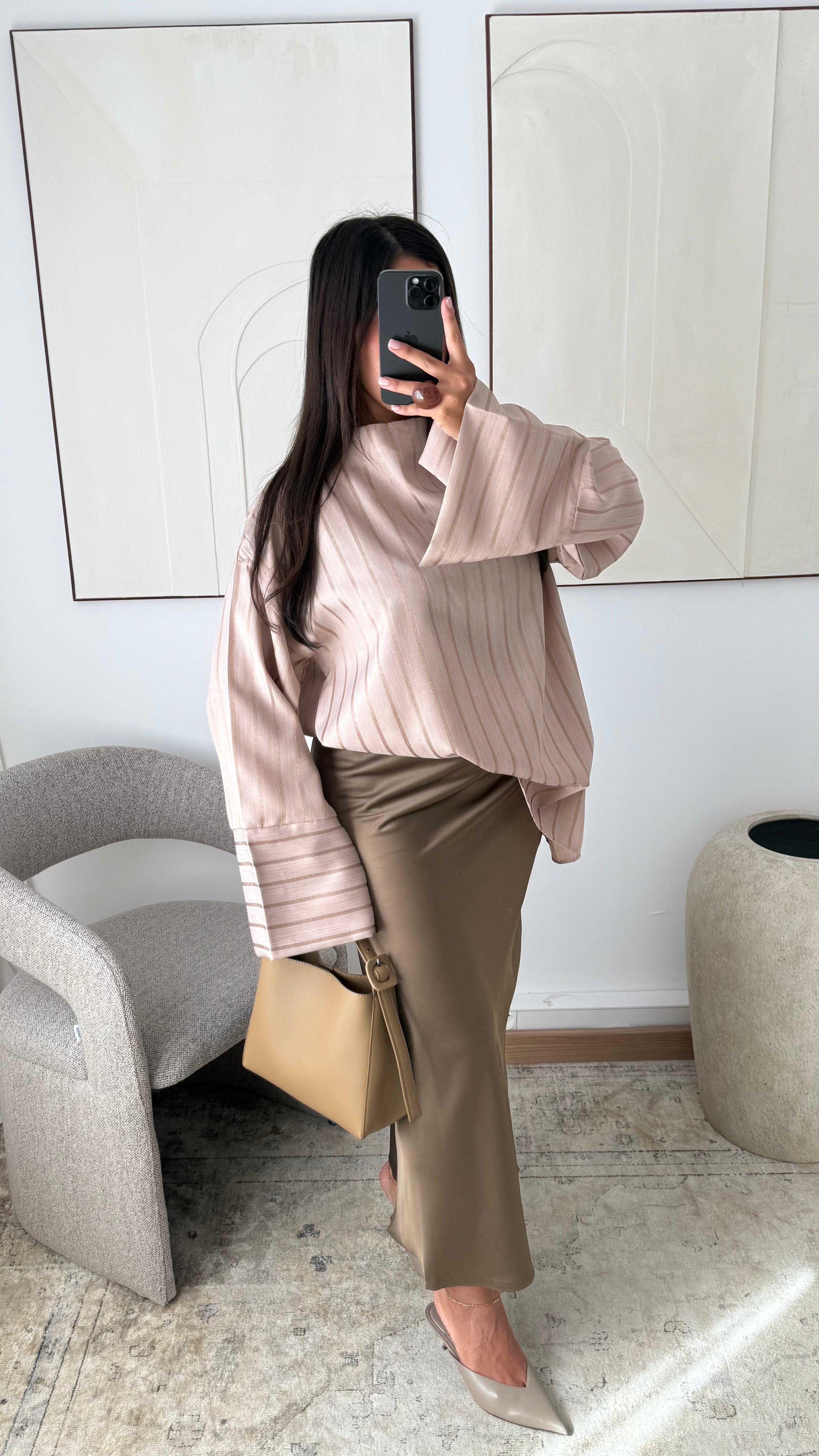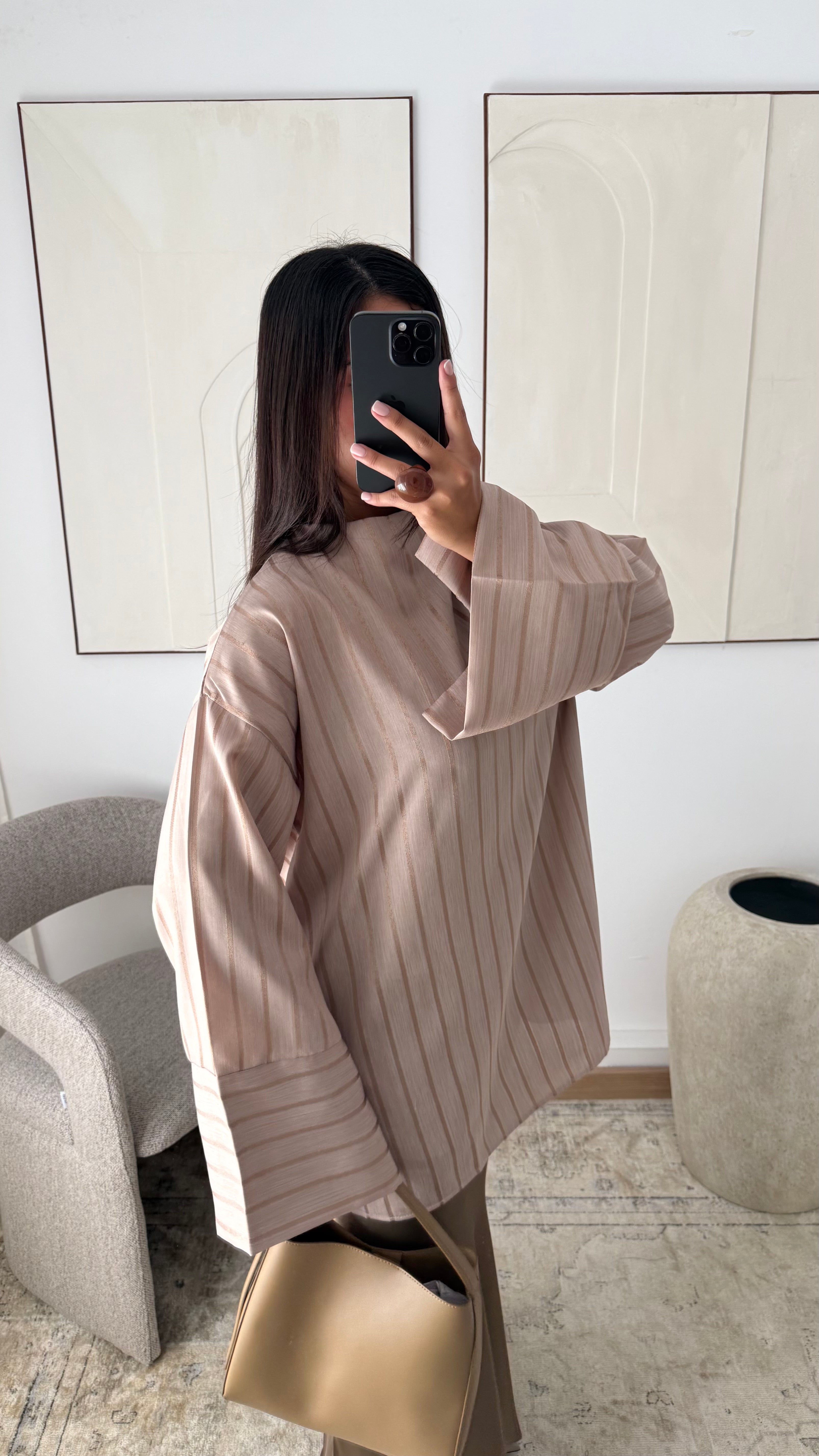 [EDITION LIMITÉE ATELIER DUBAÏ] Haut oversize long à rayures KAYAZ I Beige nude