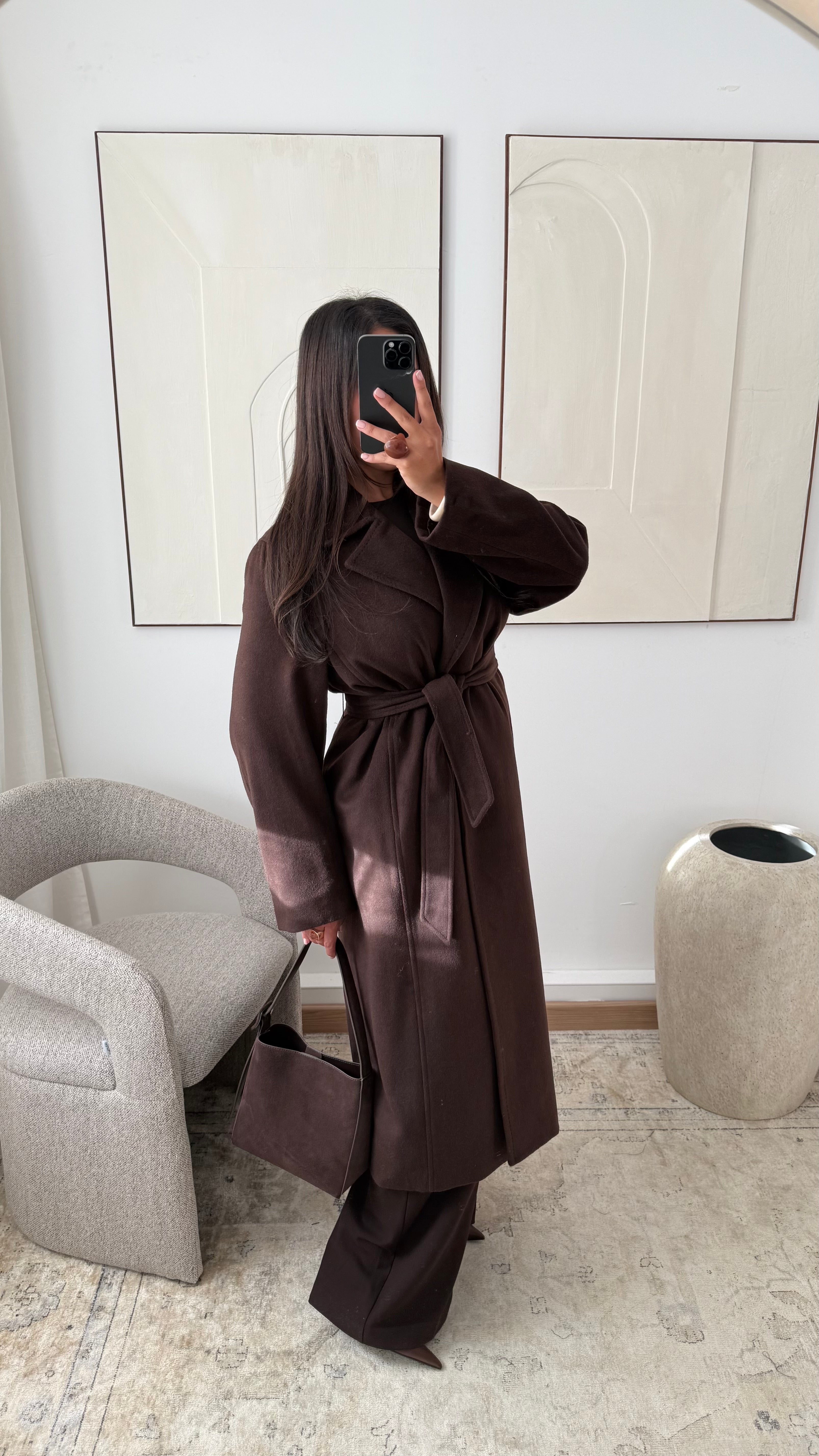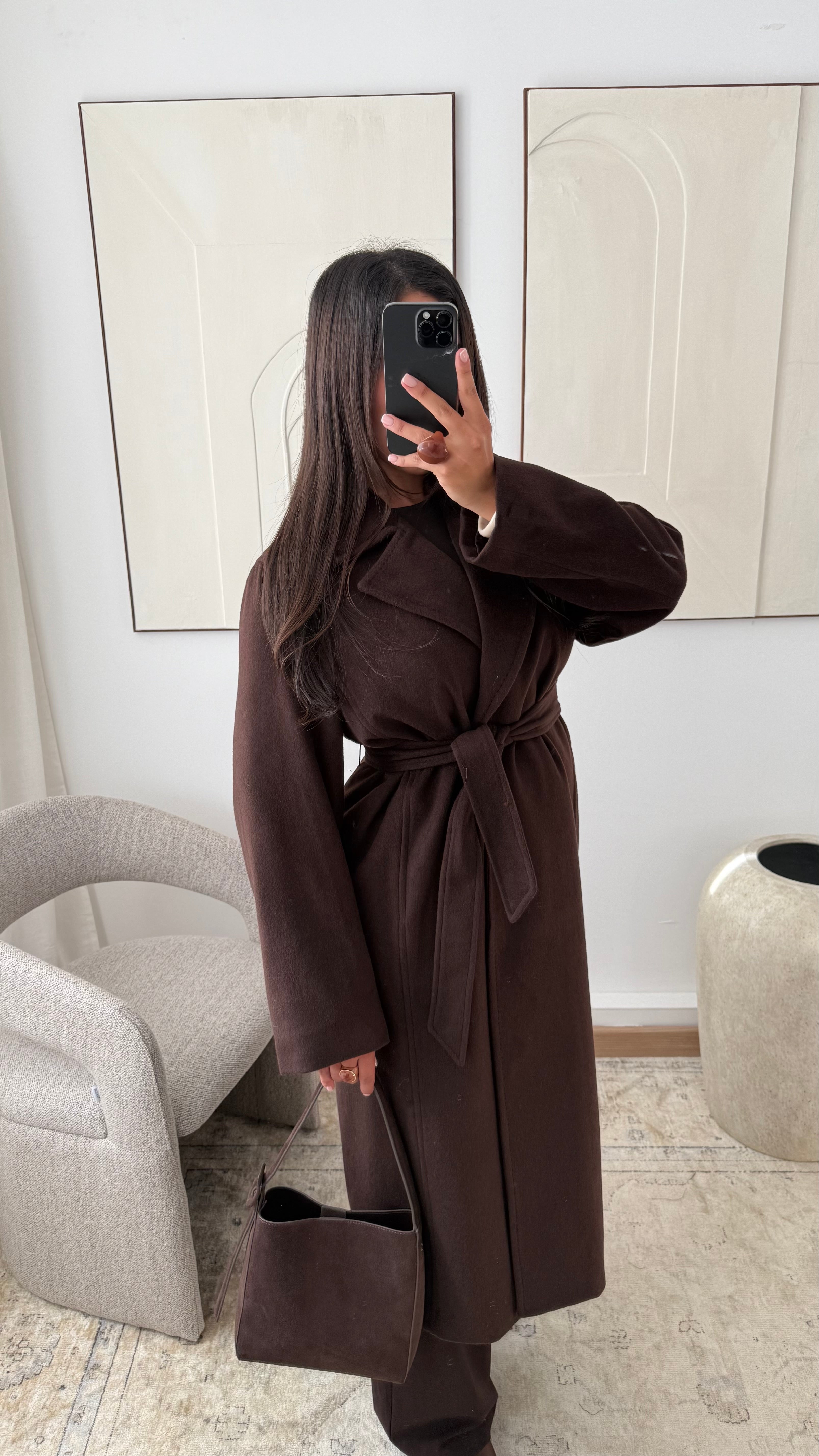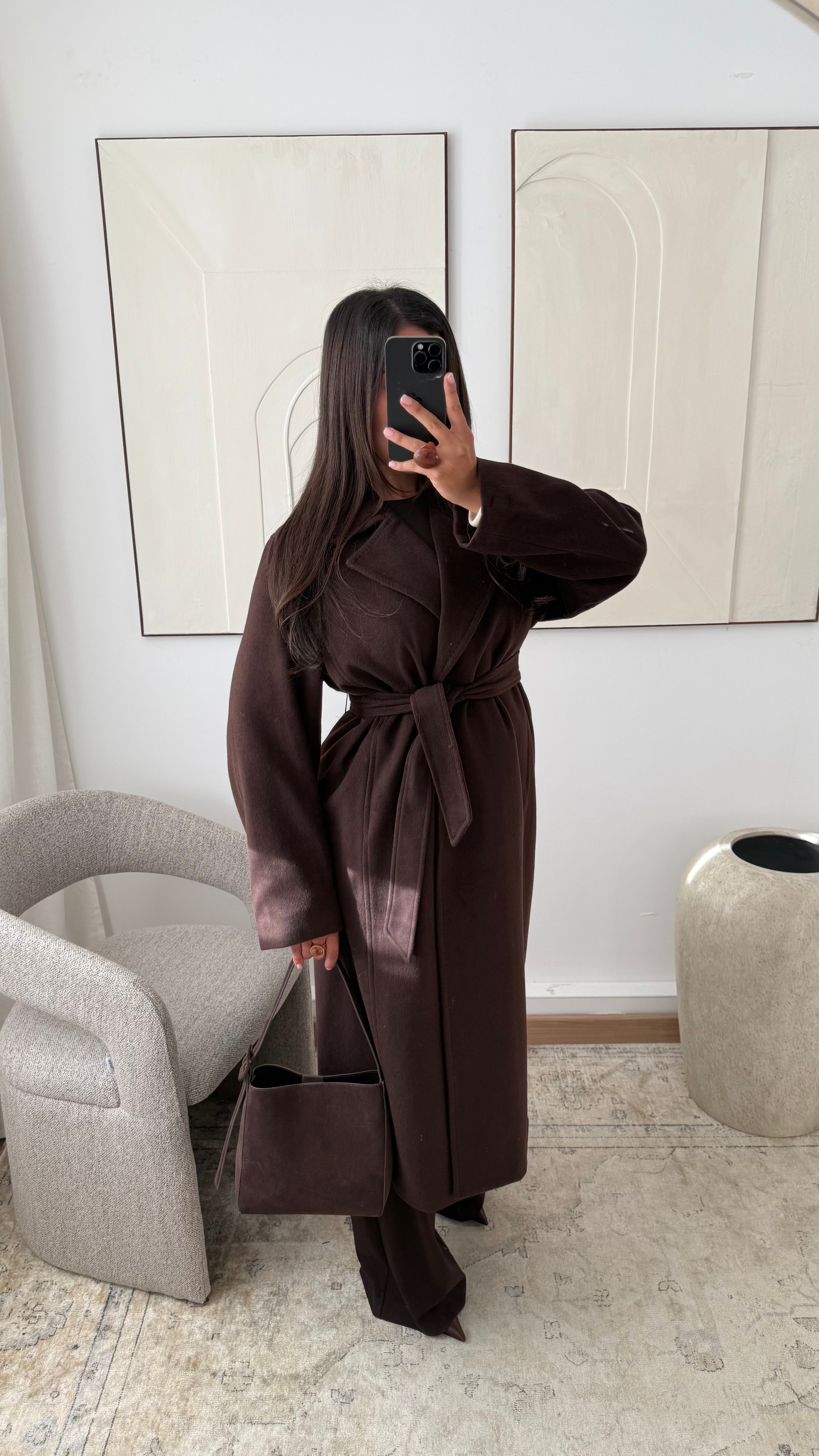 [ GAMME PREMIUM] Manteau en véritable laine classique à nouer I Chocolat