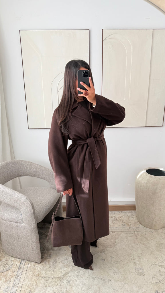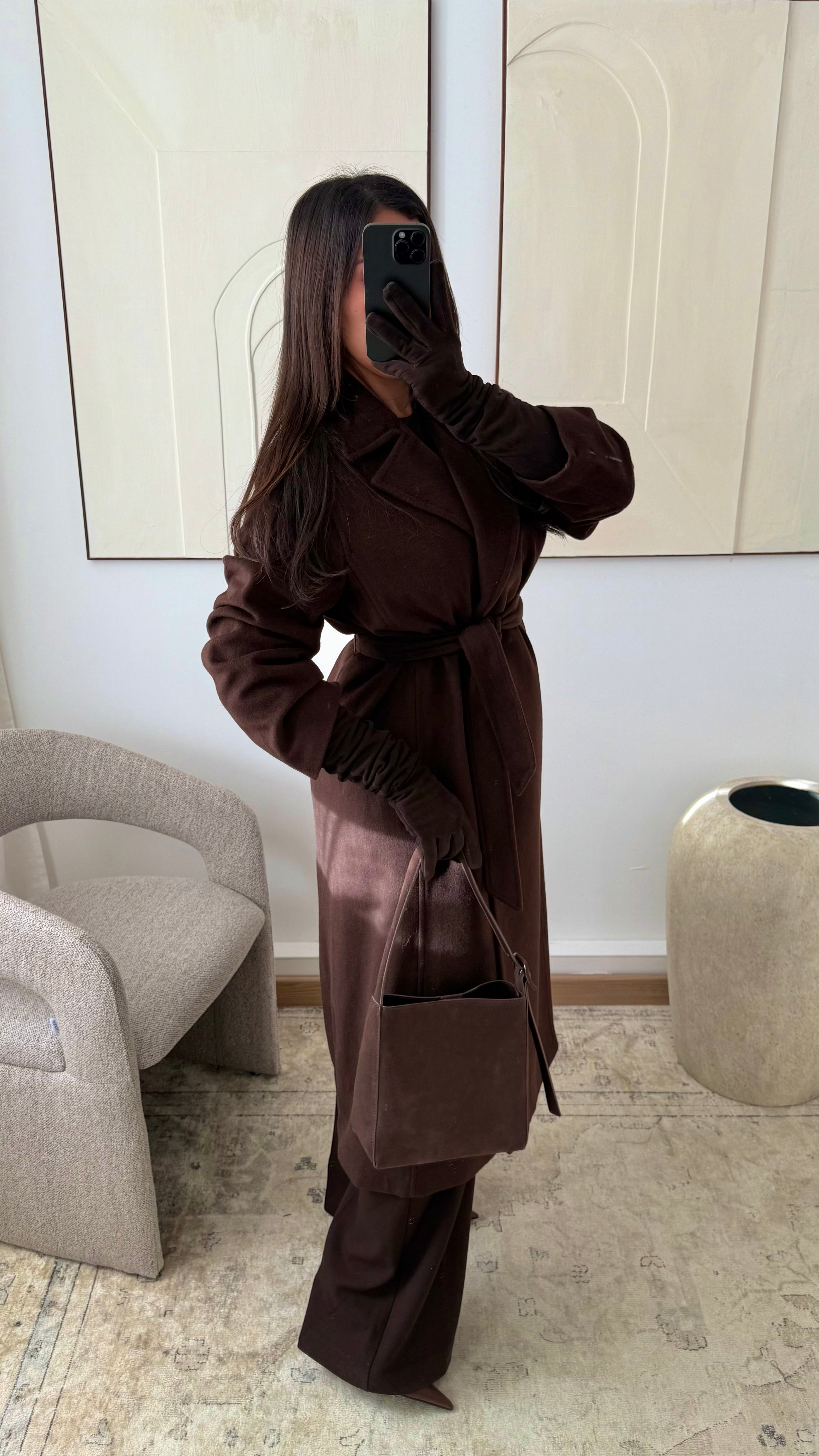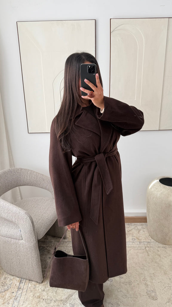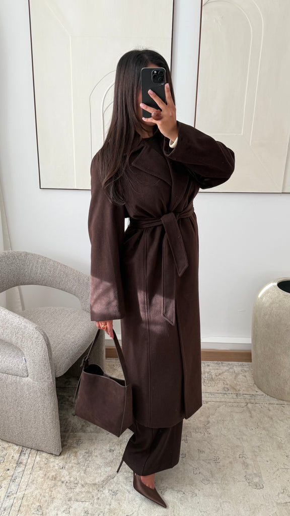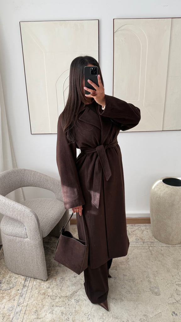 [ GAMME PREMIUM] Manteau en véritable laine classique à nouer I Chocolat