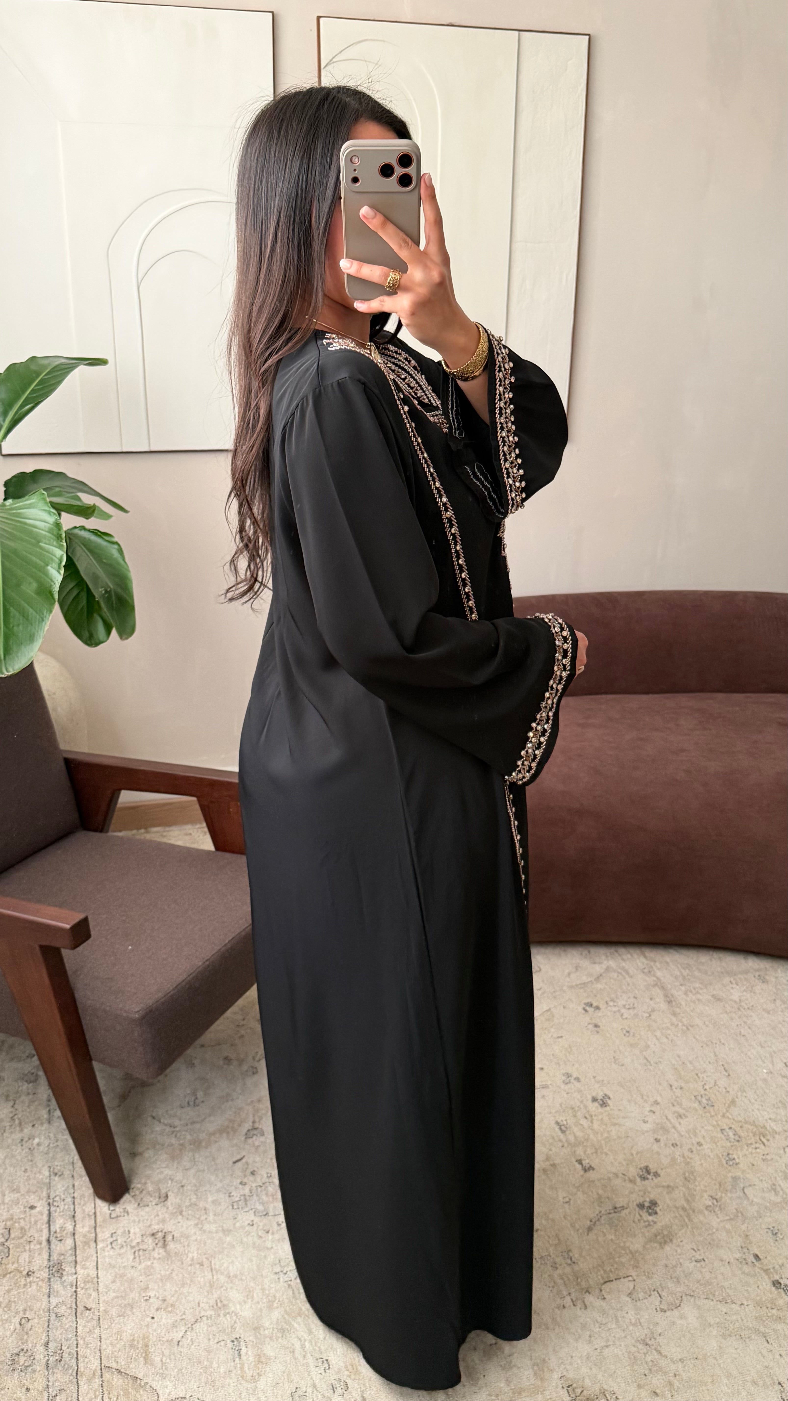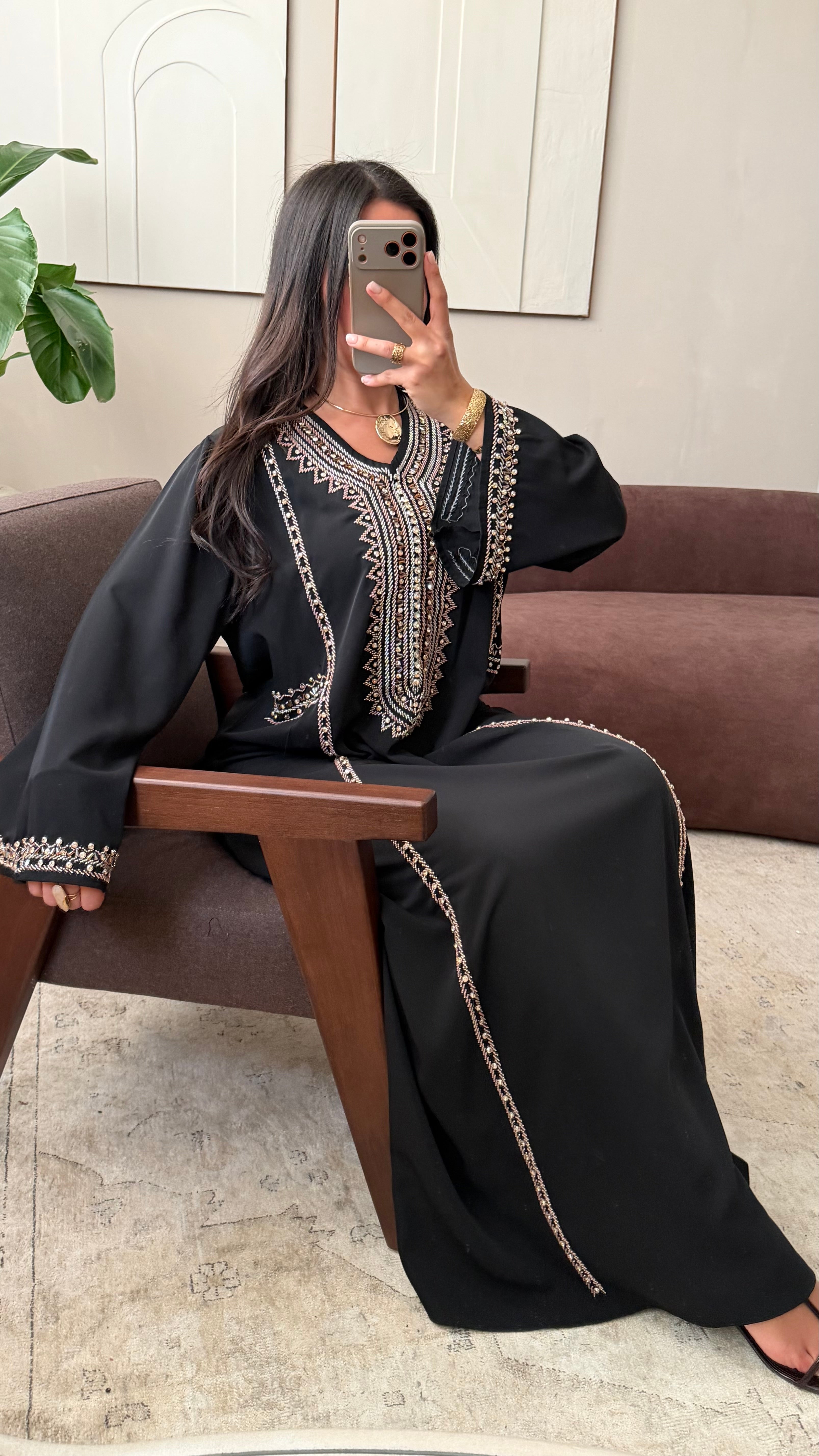 Ce caftan robe orné de pierres allie élégance et confort au quotidien. Sa coupe longue et fluide offre une silhouette gracieuse, tandis que ses délicats ornements en pierres apportent une touche lumineuse et raffinée sans en faire trop. Chic et agréable à porter, il sublime naturellement l’allure.