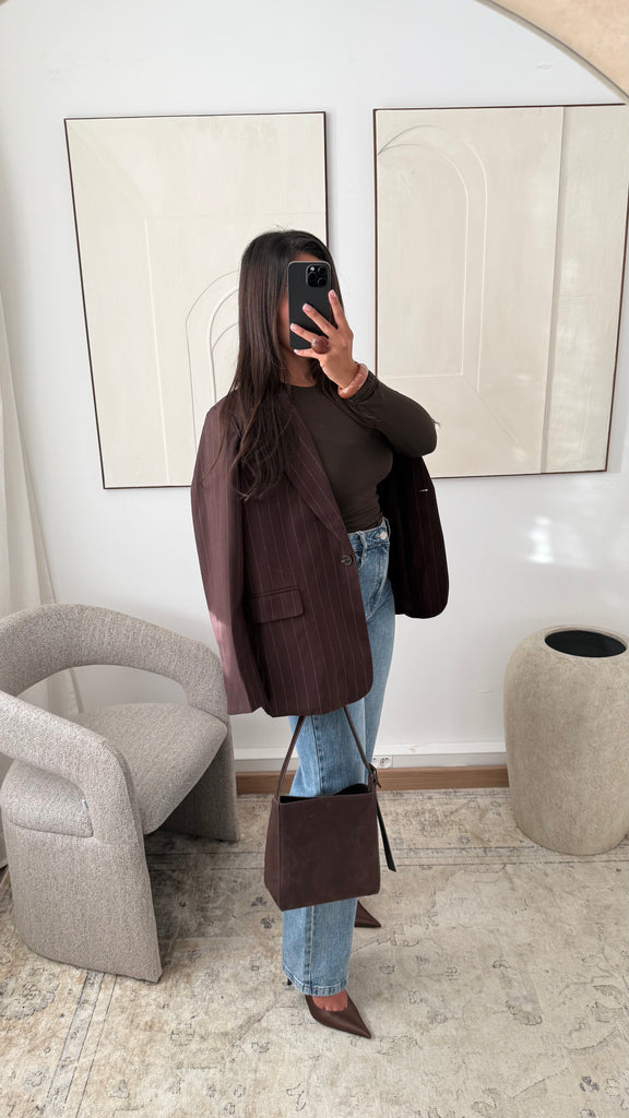 À porter avec son pantalon tailleur assorti ou une jupe droite pour un look chic et affirmé. Peut aussi se superposer à un t-shirt uni pour une allure plus décontractée.