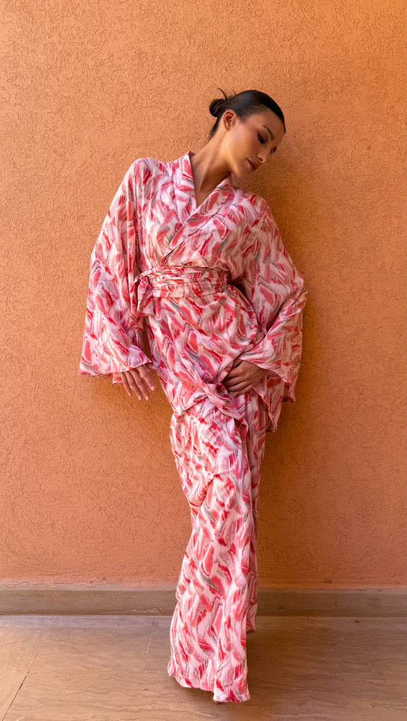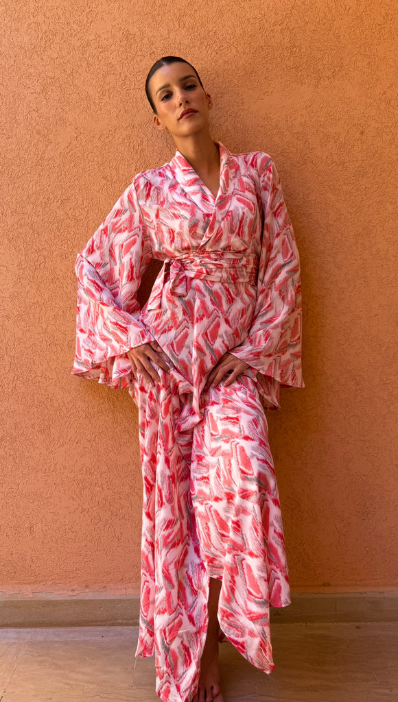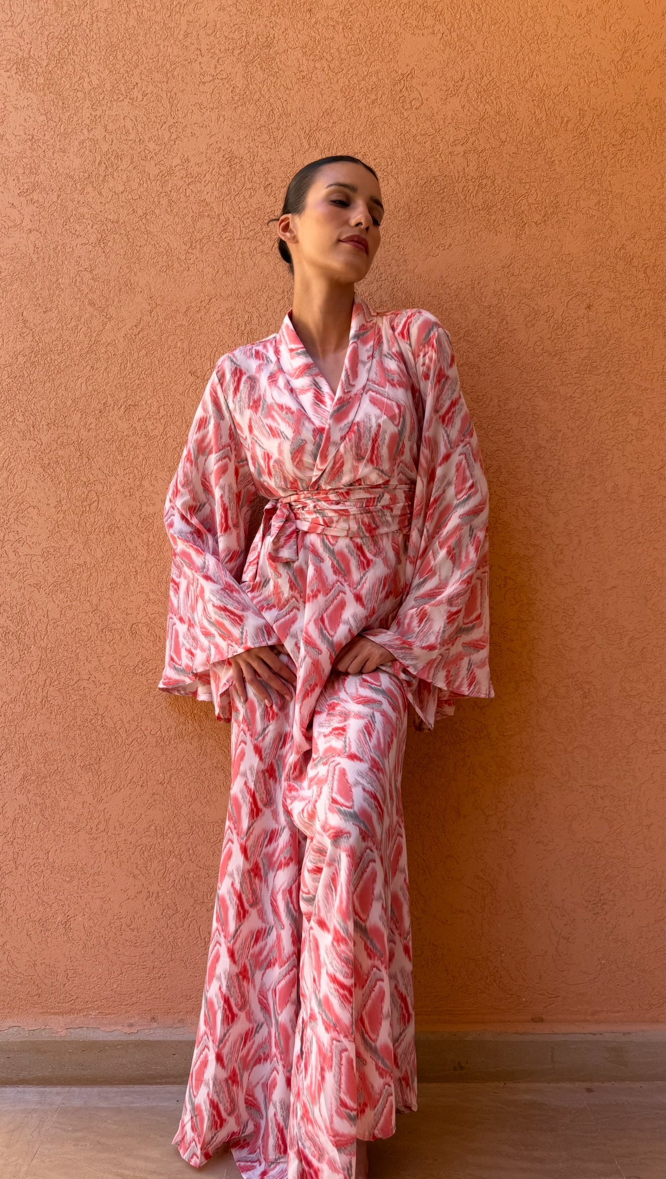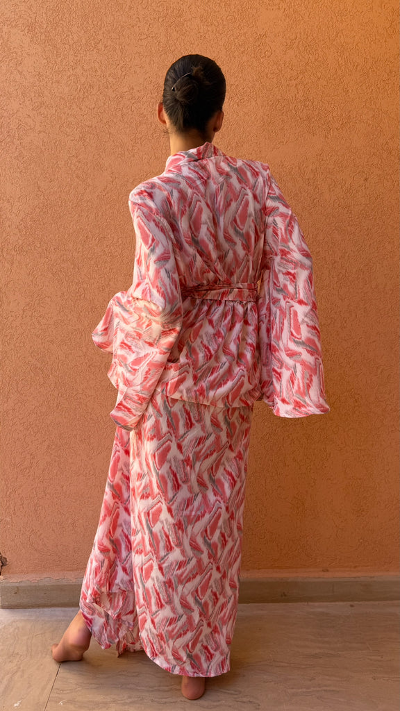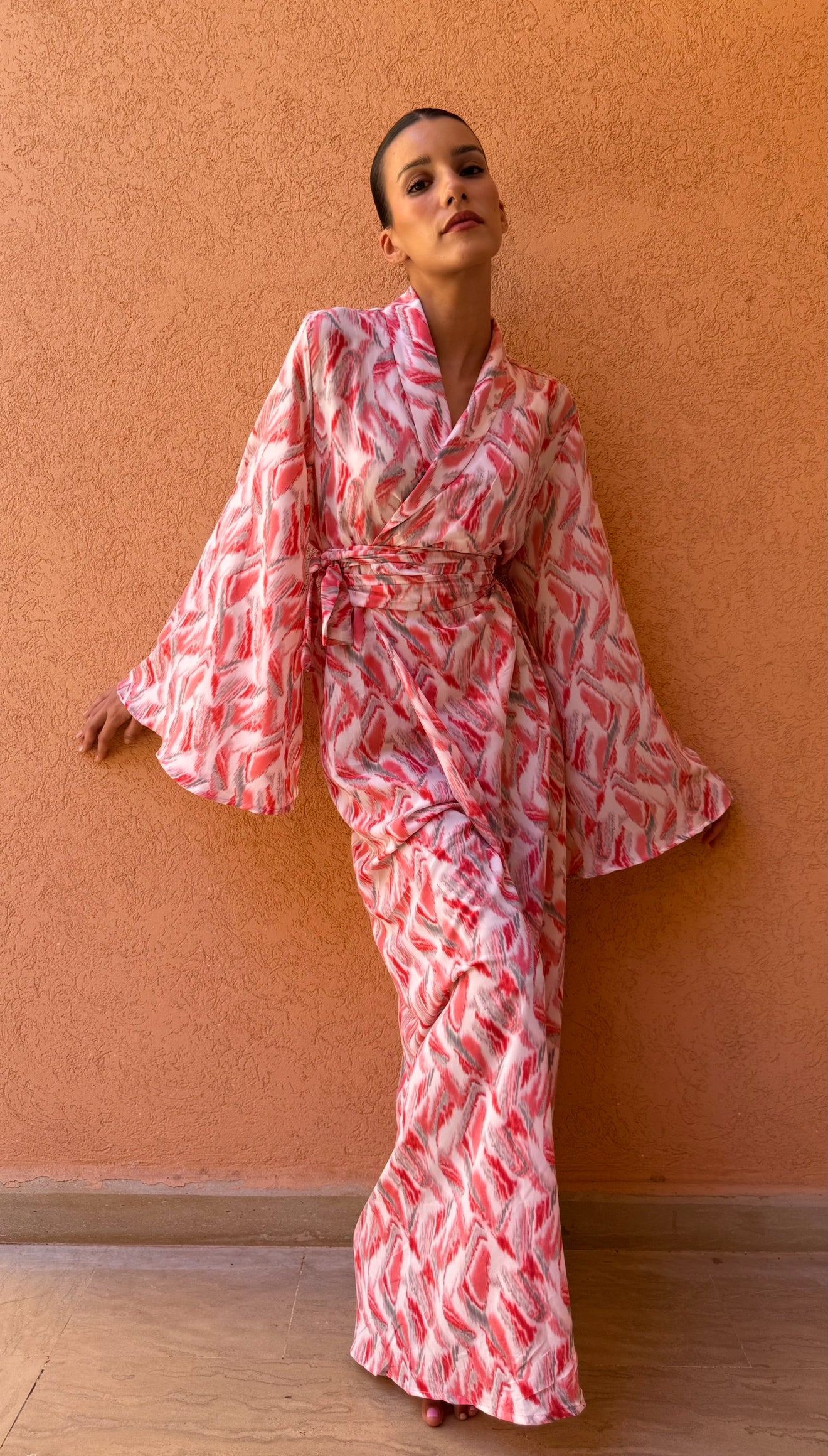 [EDITION LIMITÉE ATELIER DUBAÏ] Robe mousseline cache-coeur | Ikat Rouge