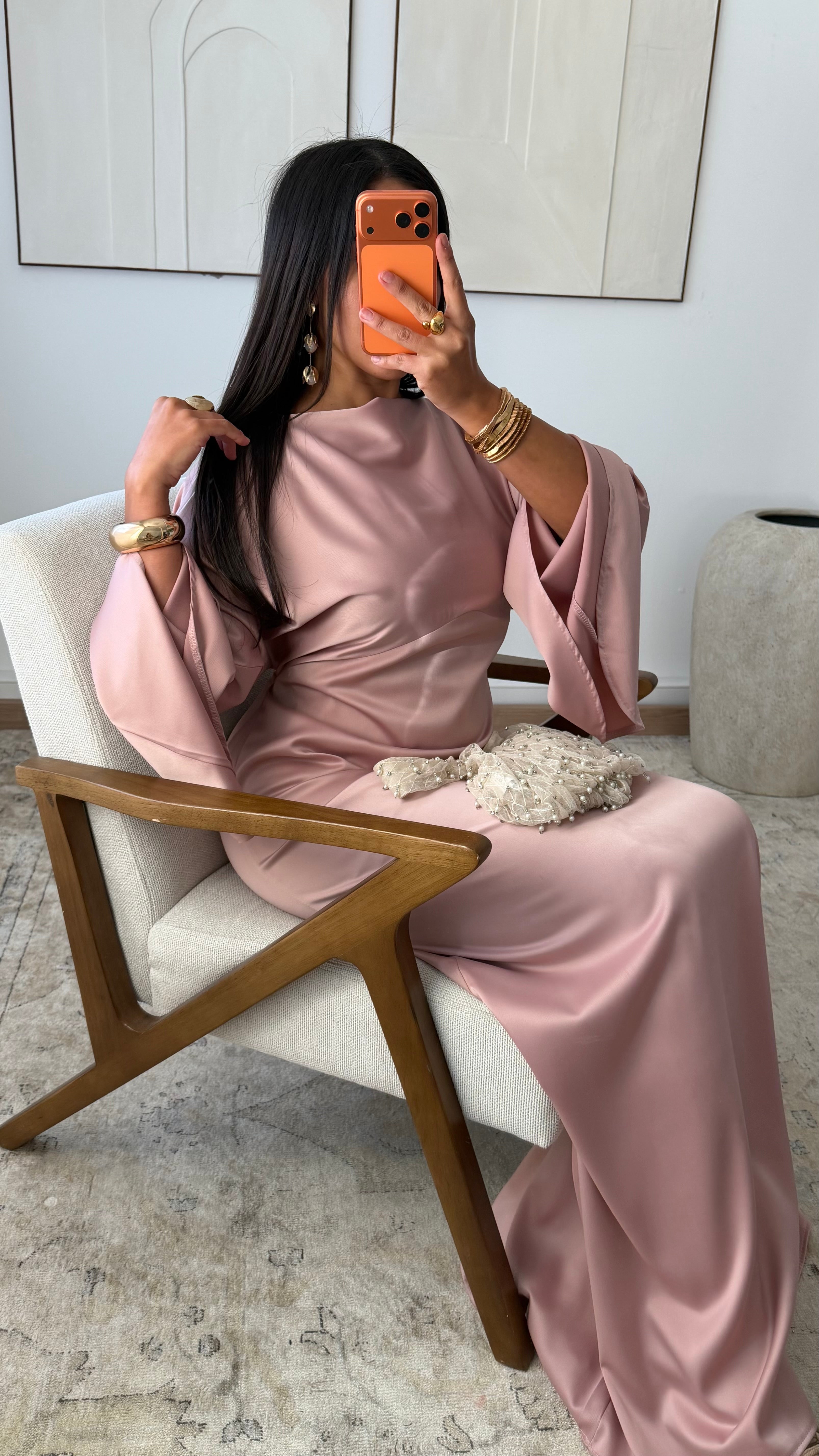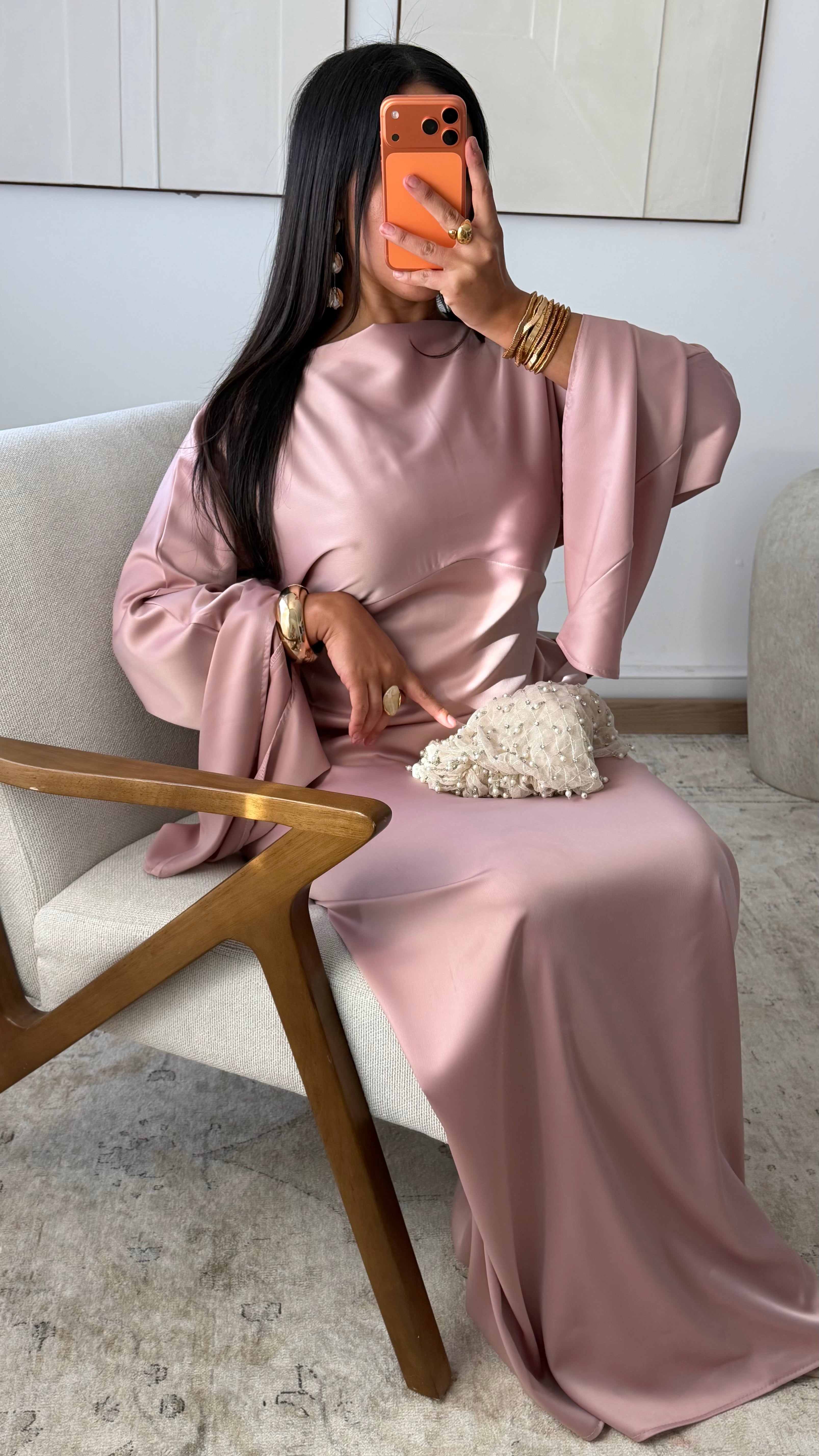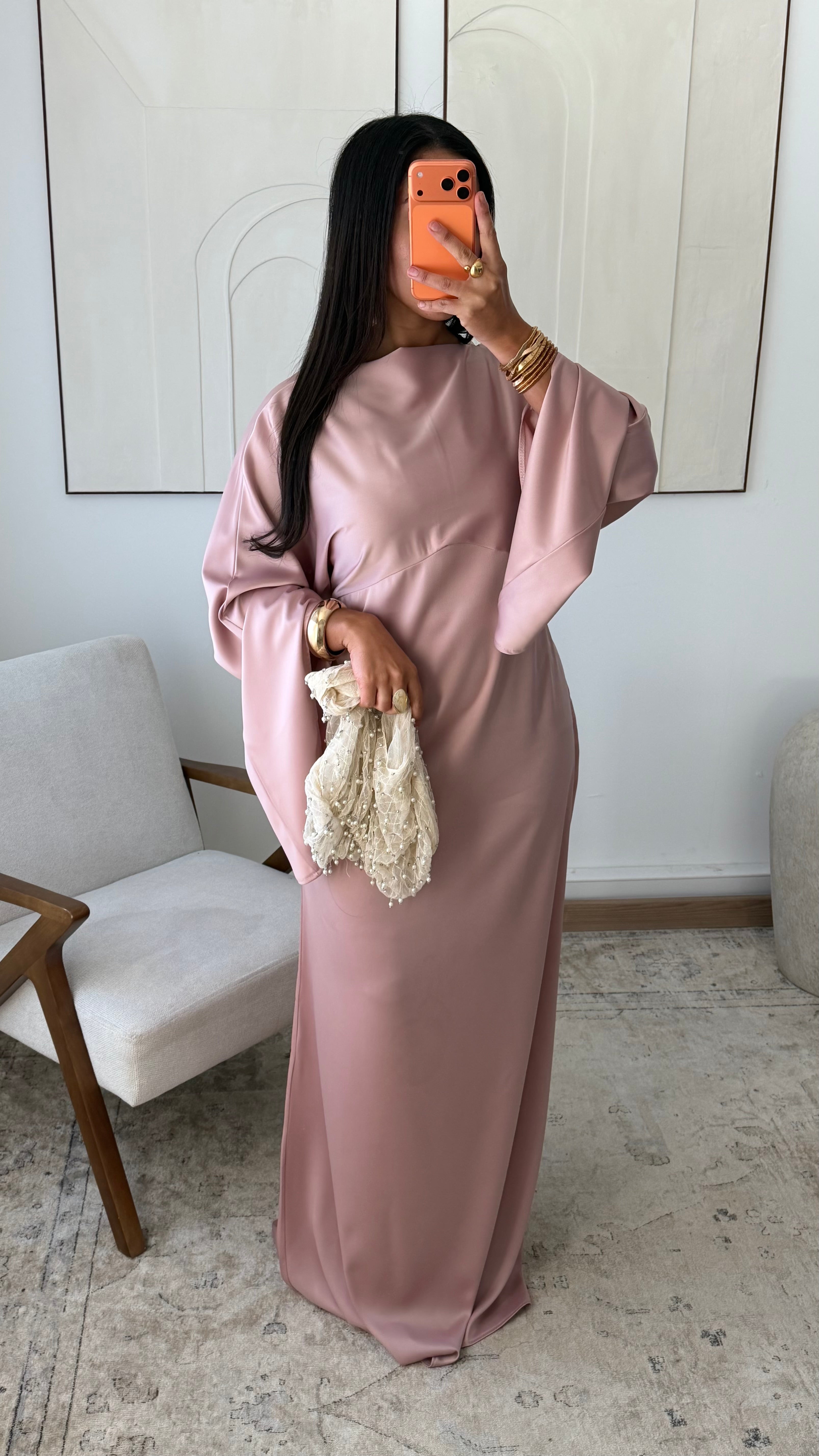 [EXCLUSIVITÉ ALMA] Robe satinée VALPARAISO I Rose poudré
