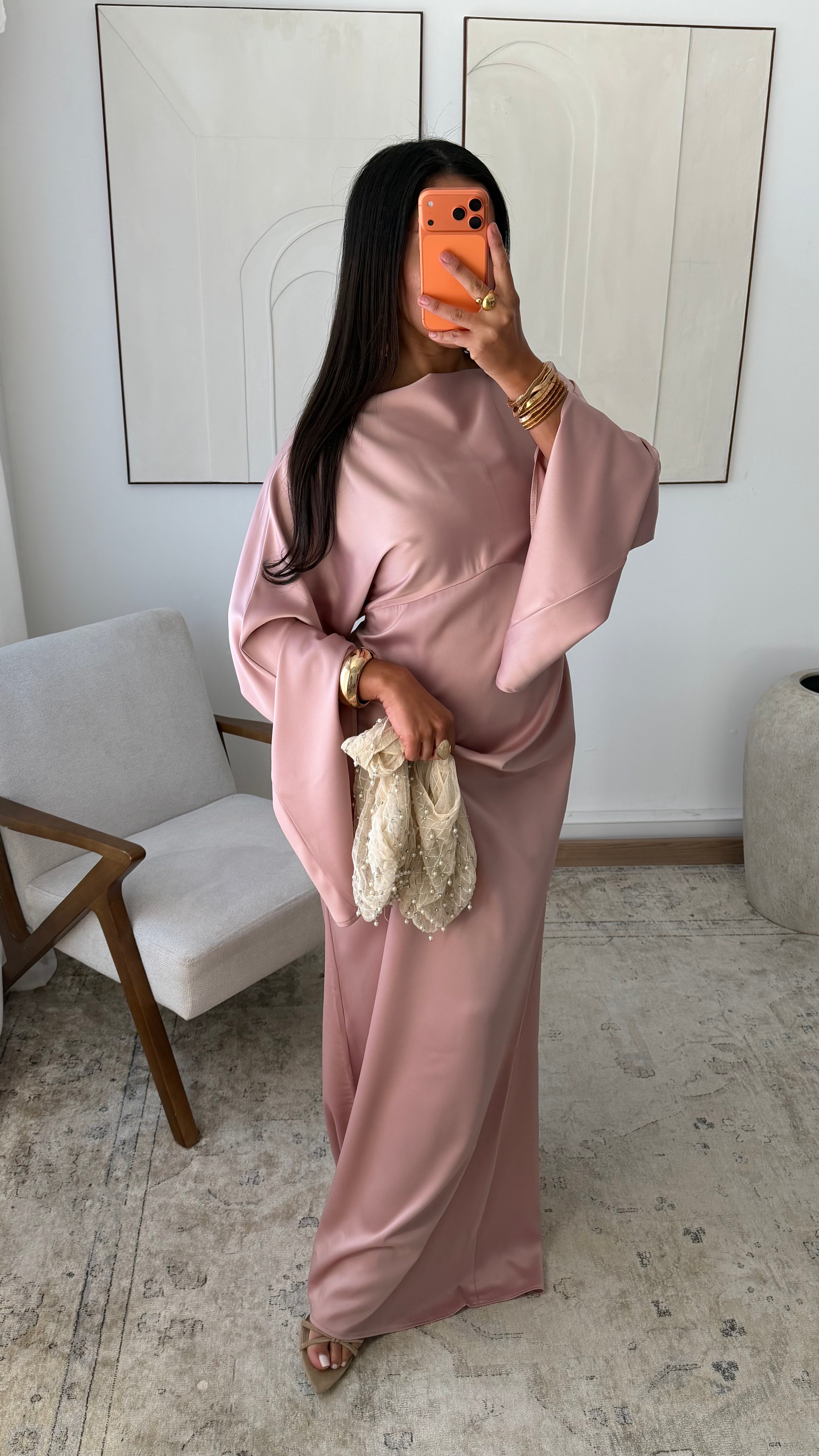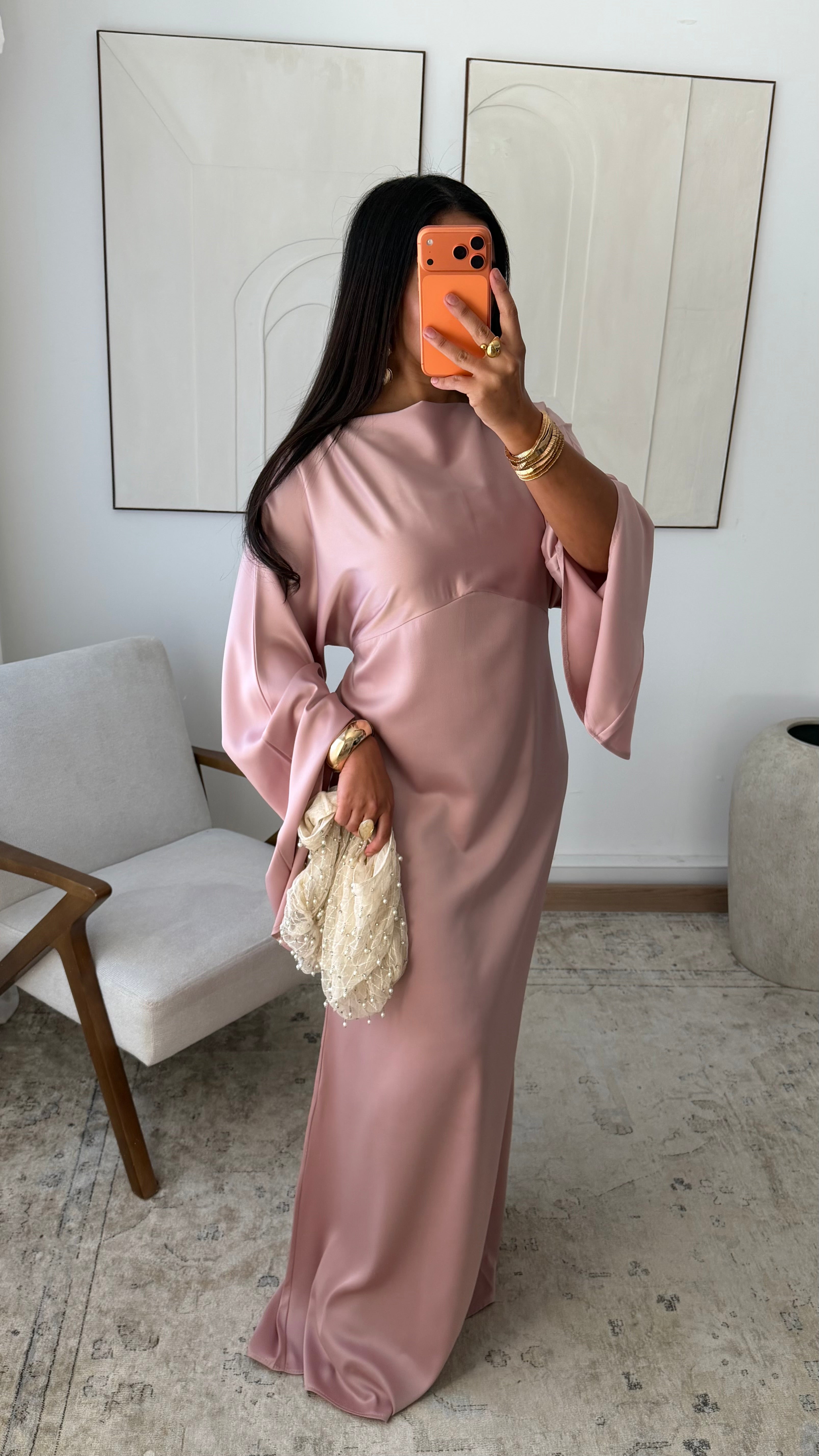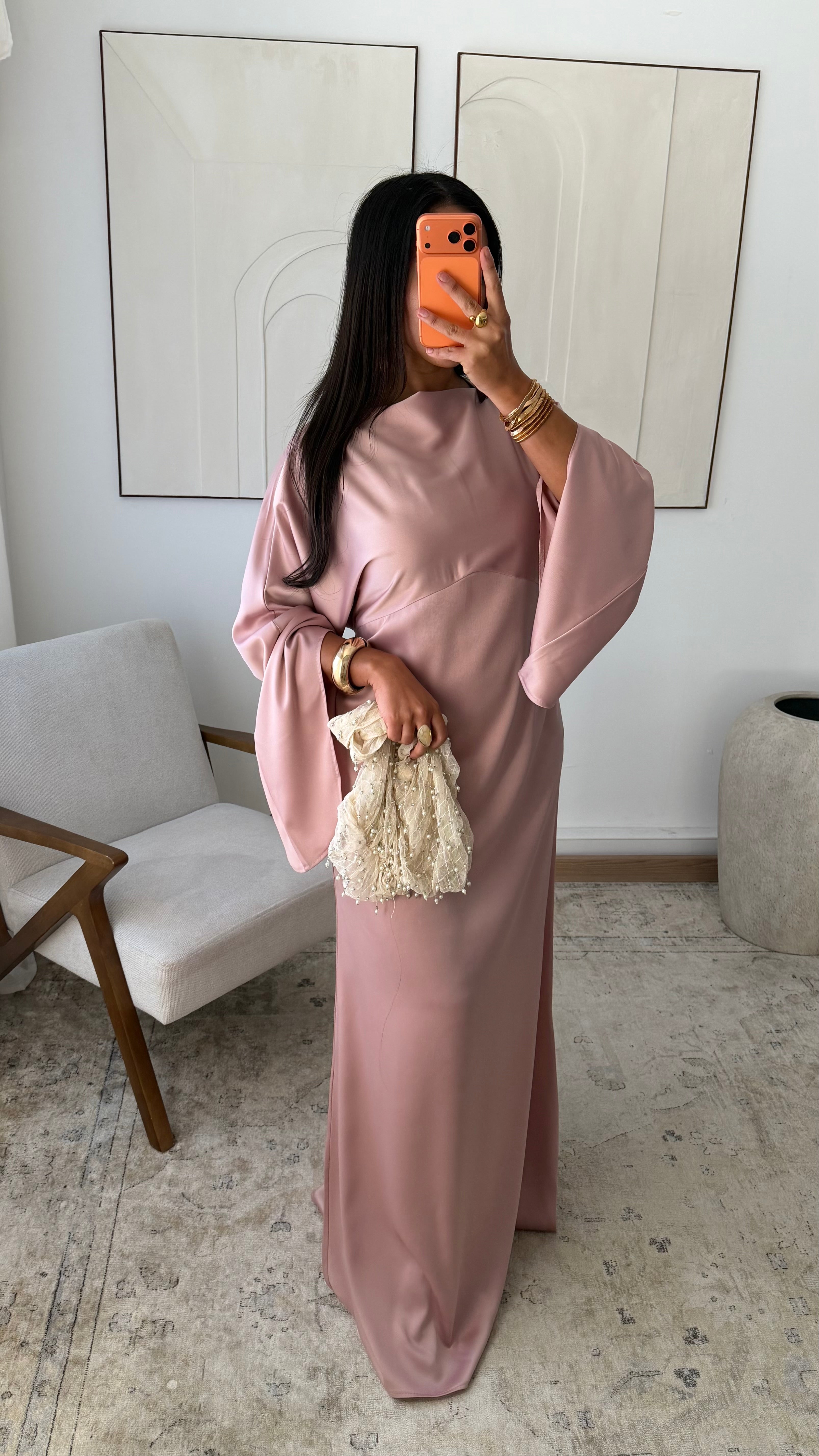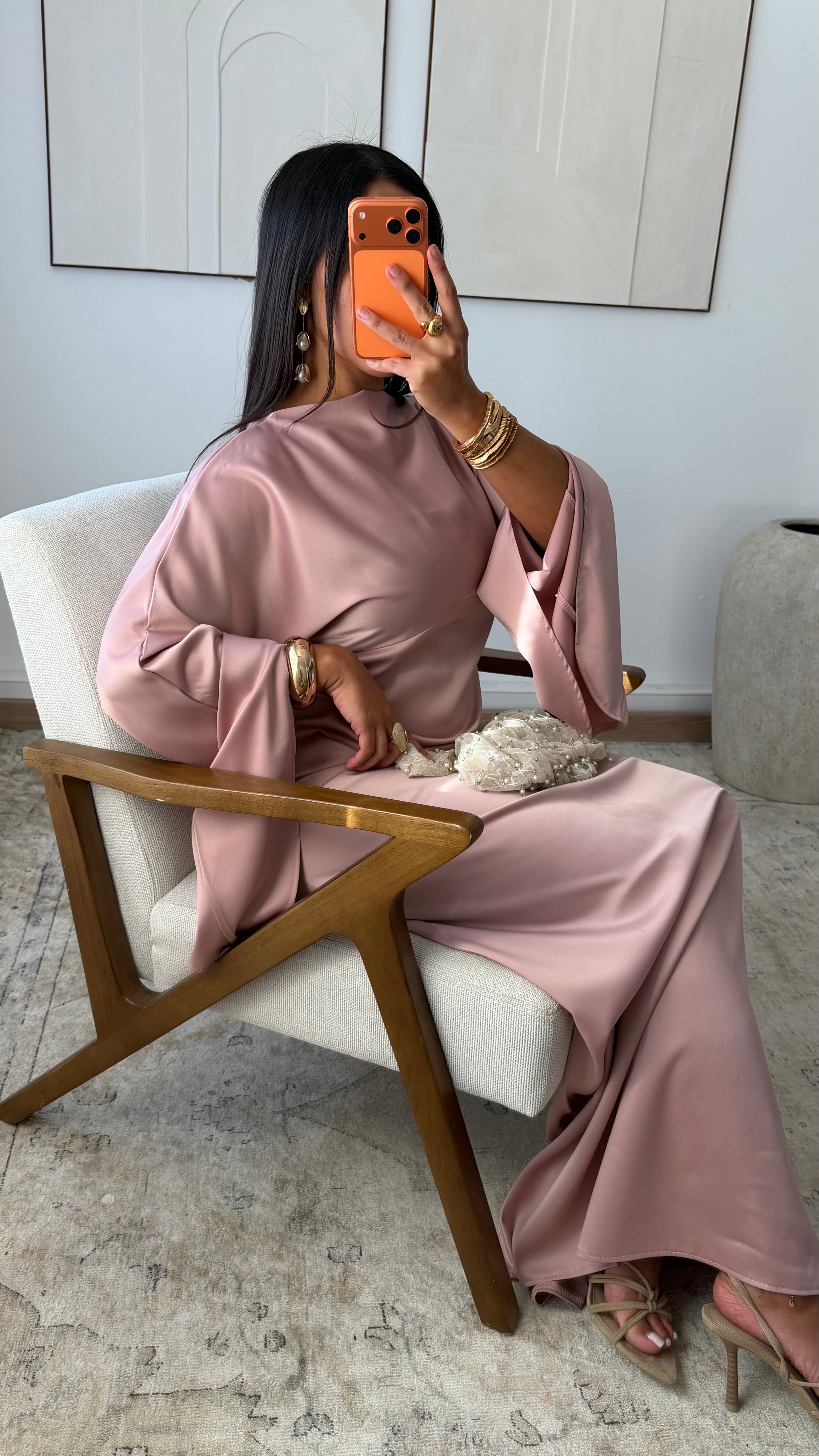 [EXCLUSIVITÉ ALMA] Robe satinée VALPARAISO I Rose poudré