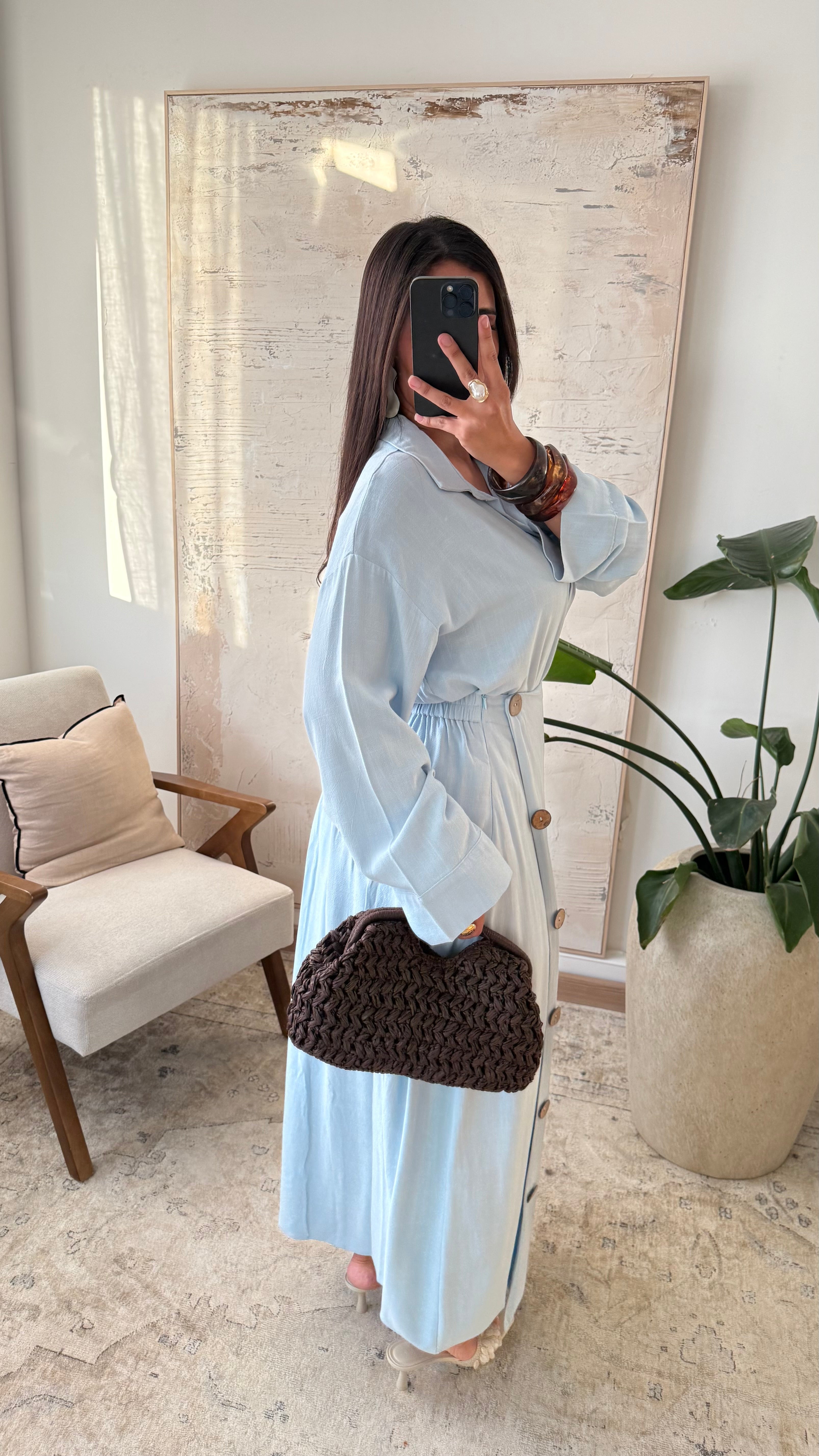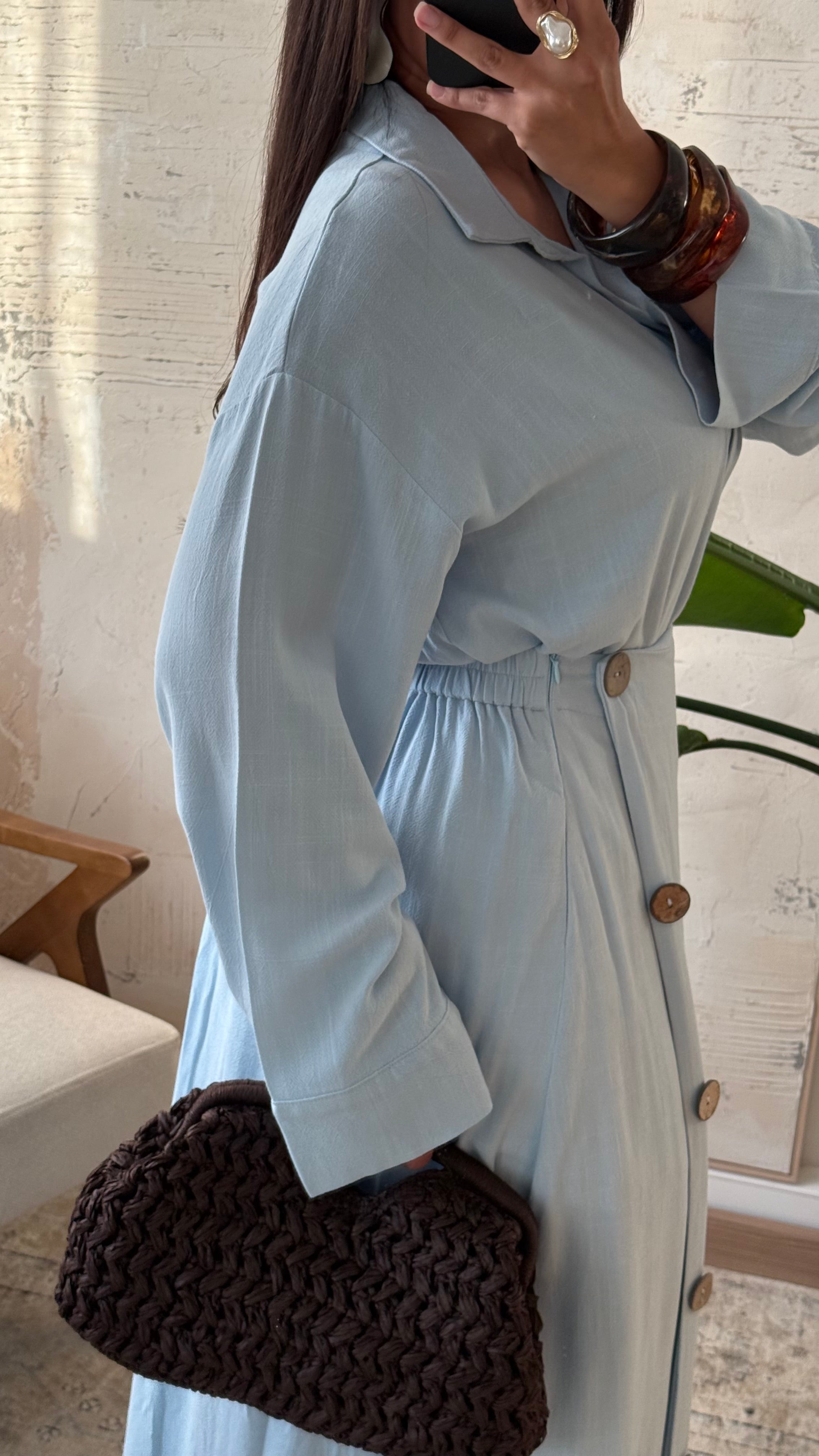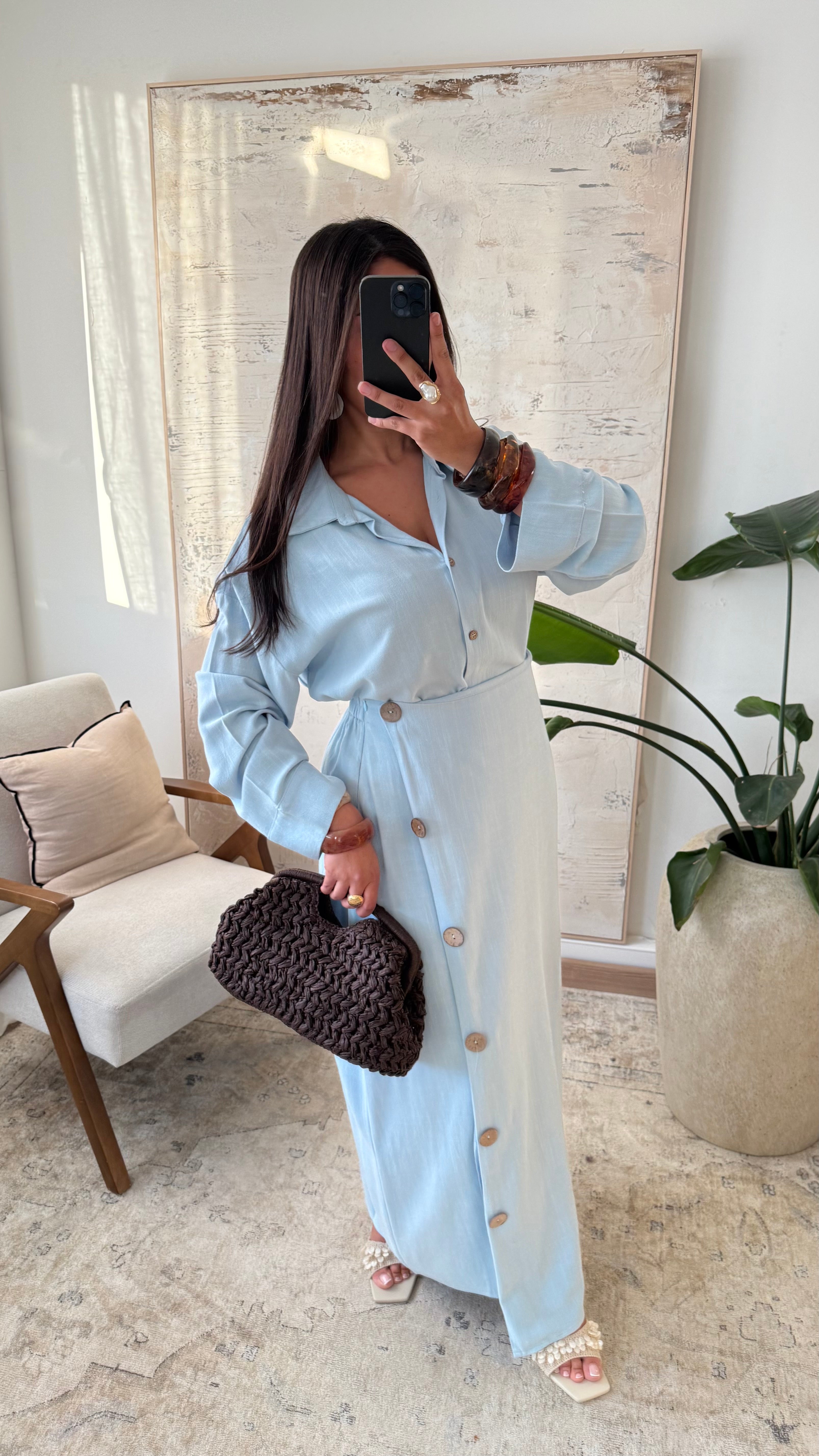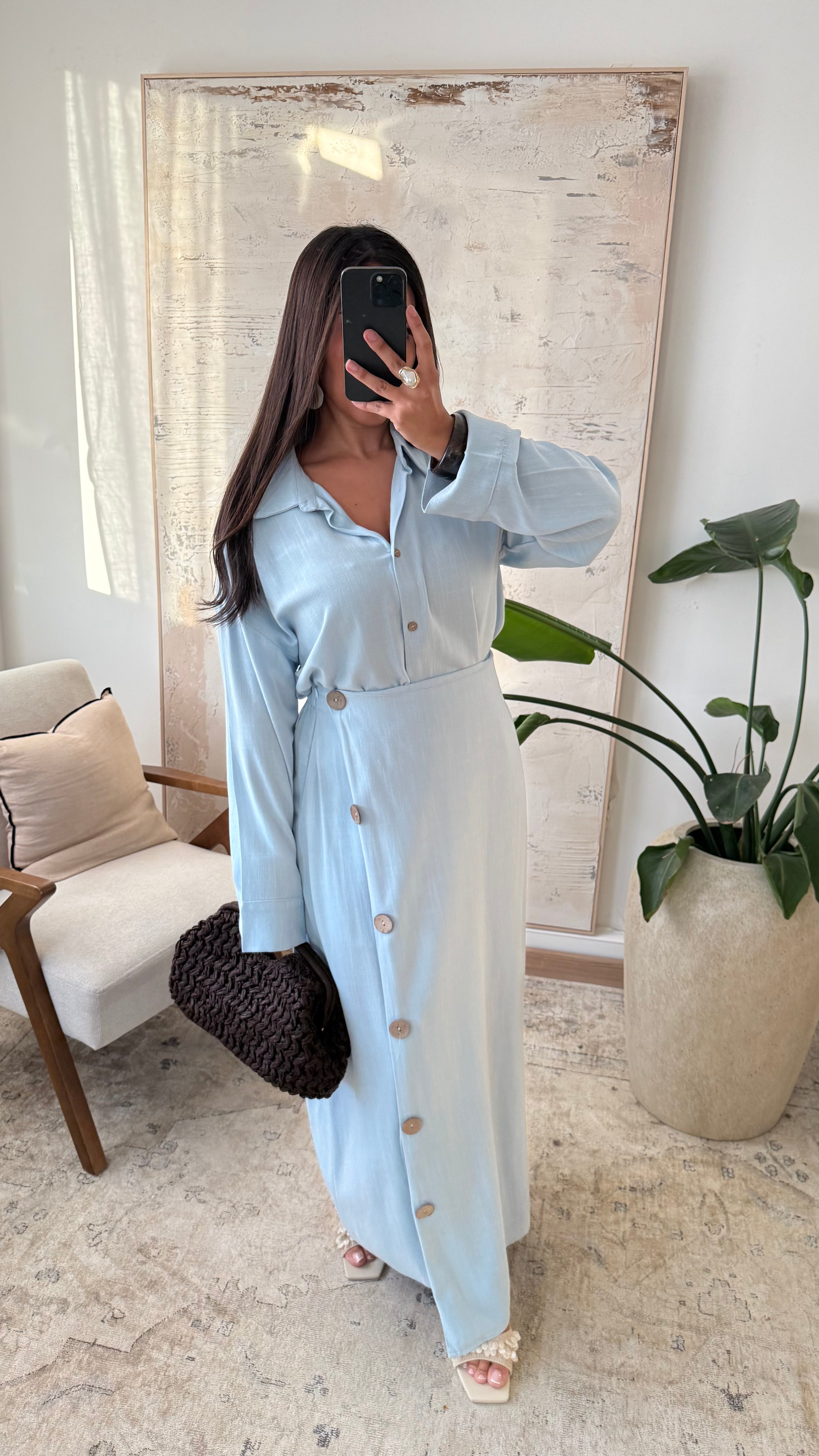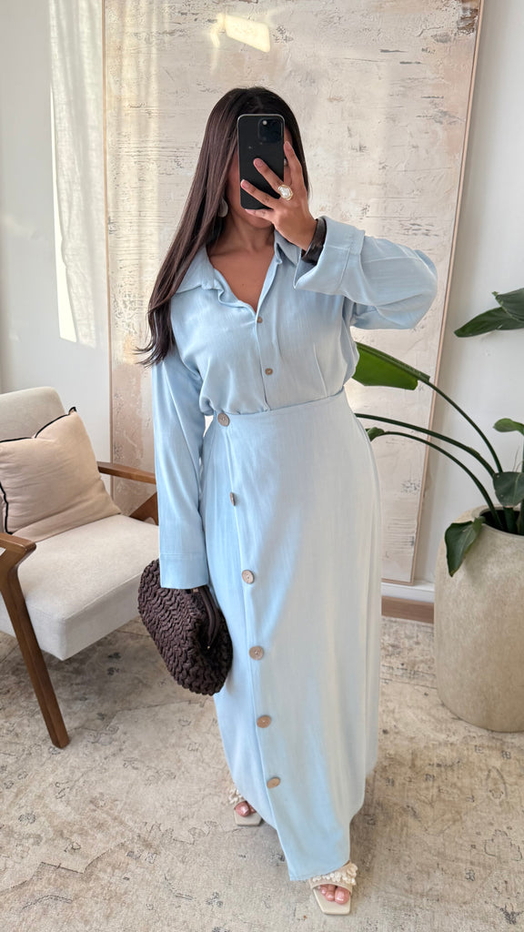 Ensemble jupe et chemise très longue en lin QUESO I Bleu ciel