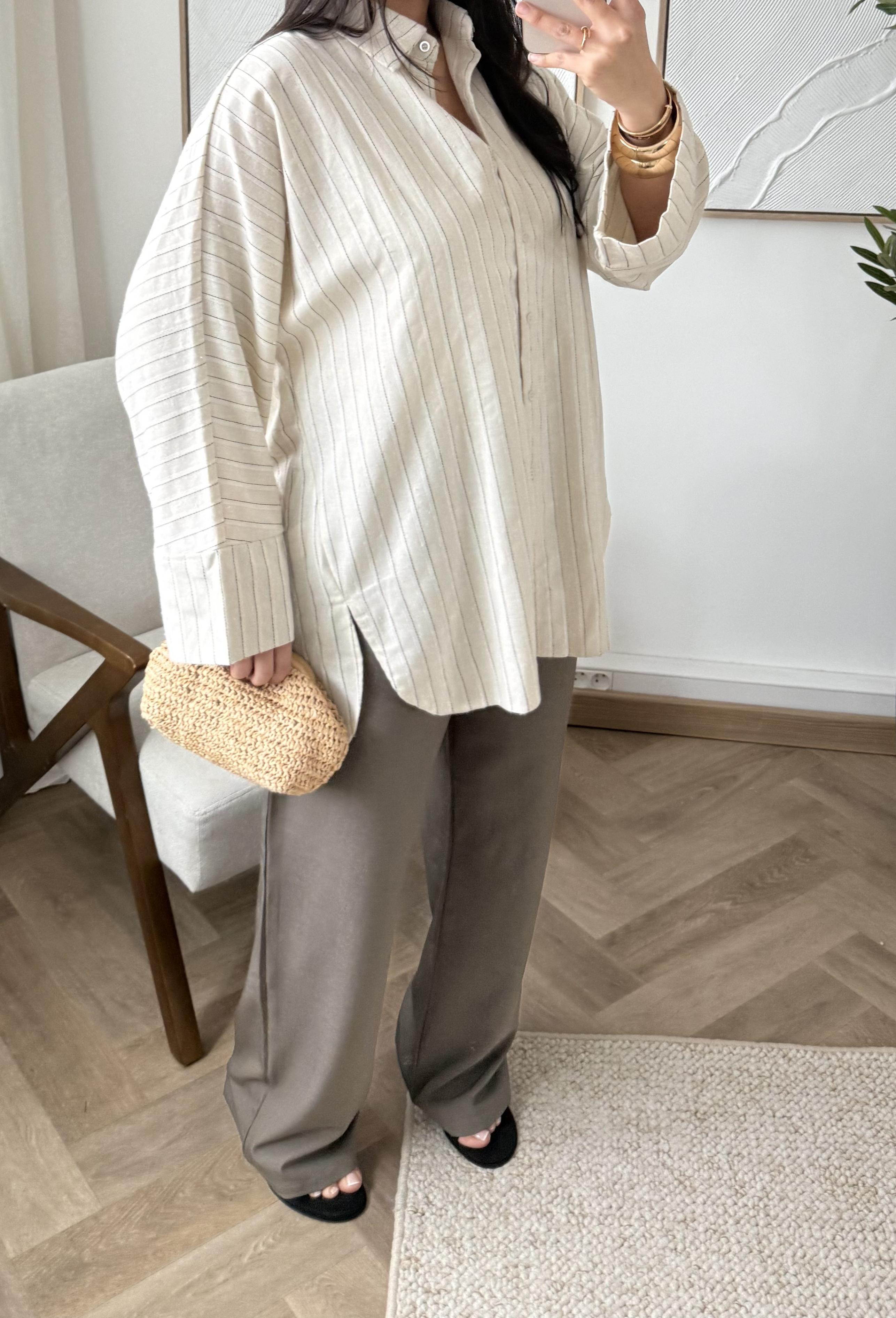 Le mannequin mesure 1m68 et porte une taille L pour un 40.