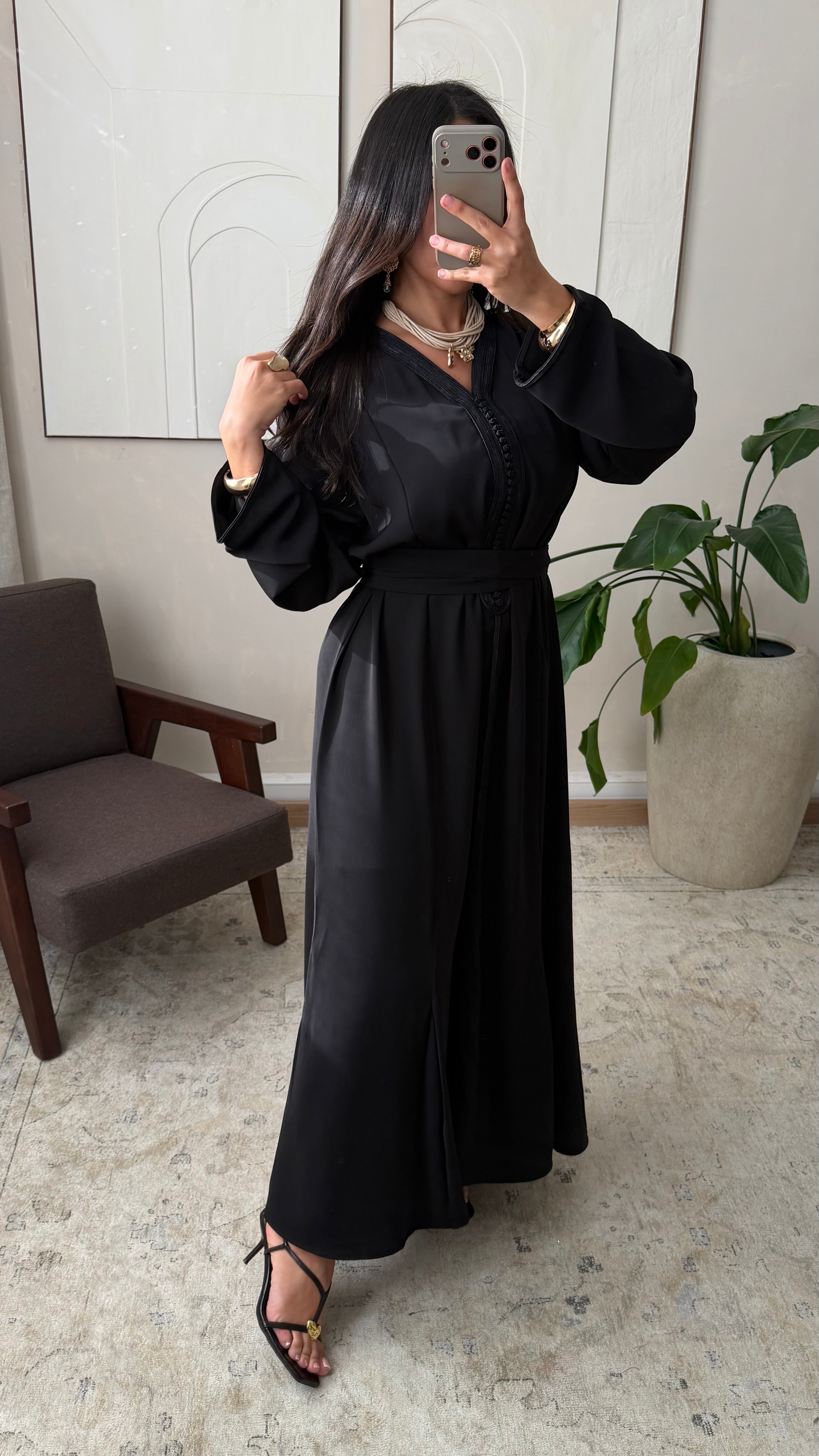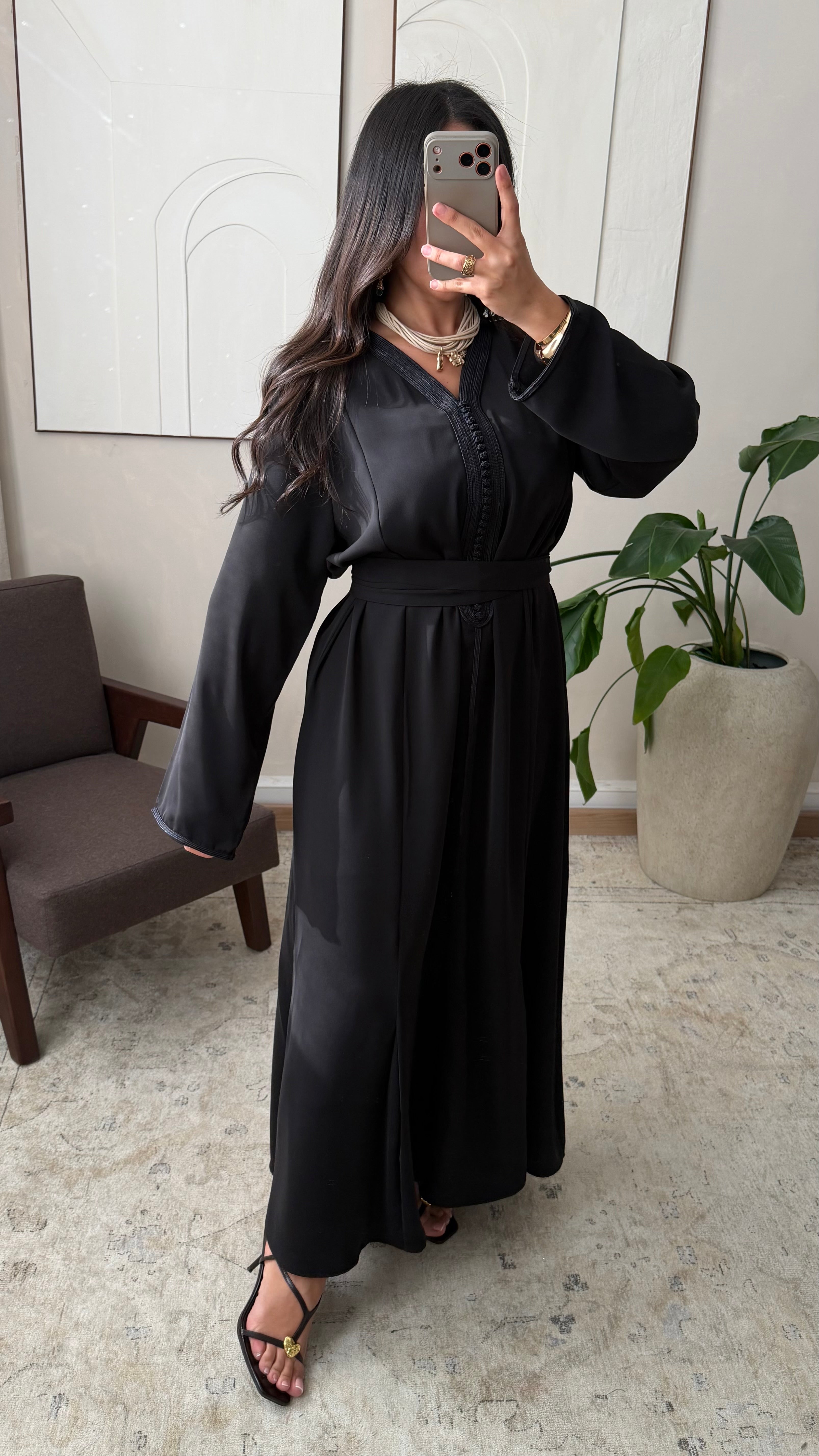 Caftan ton sur ton I Noir