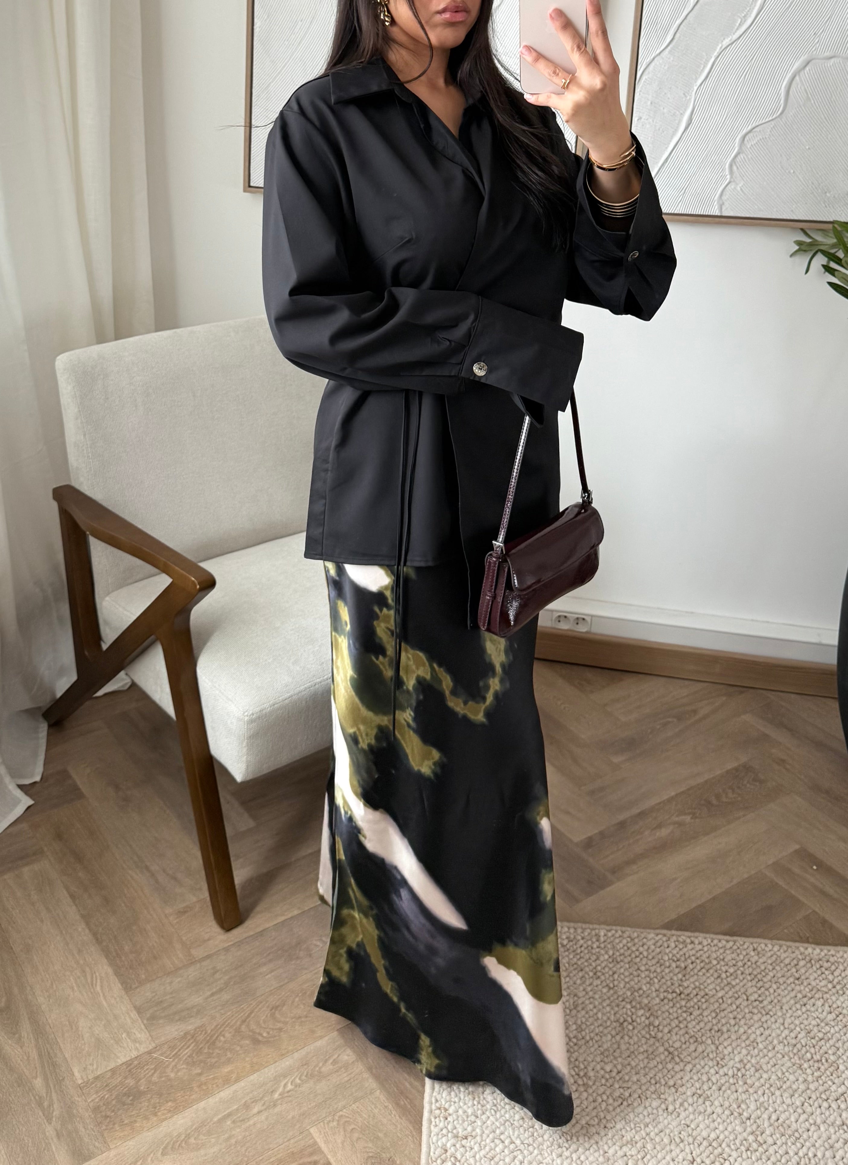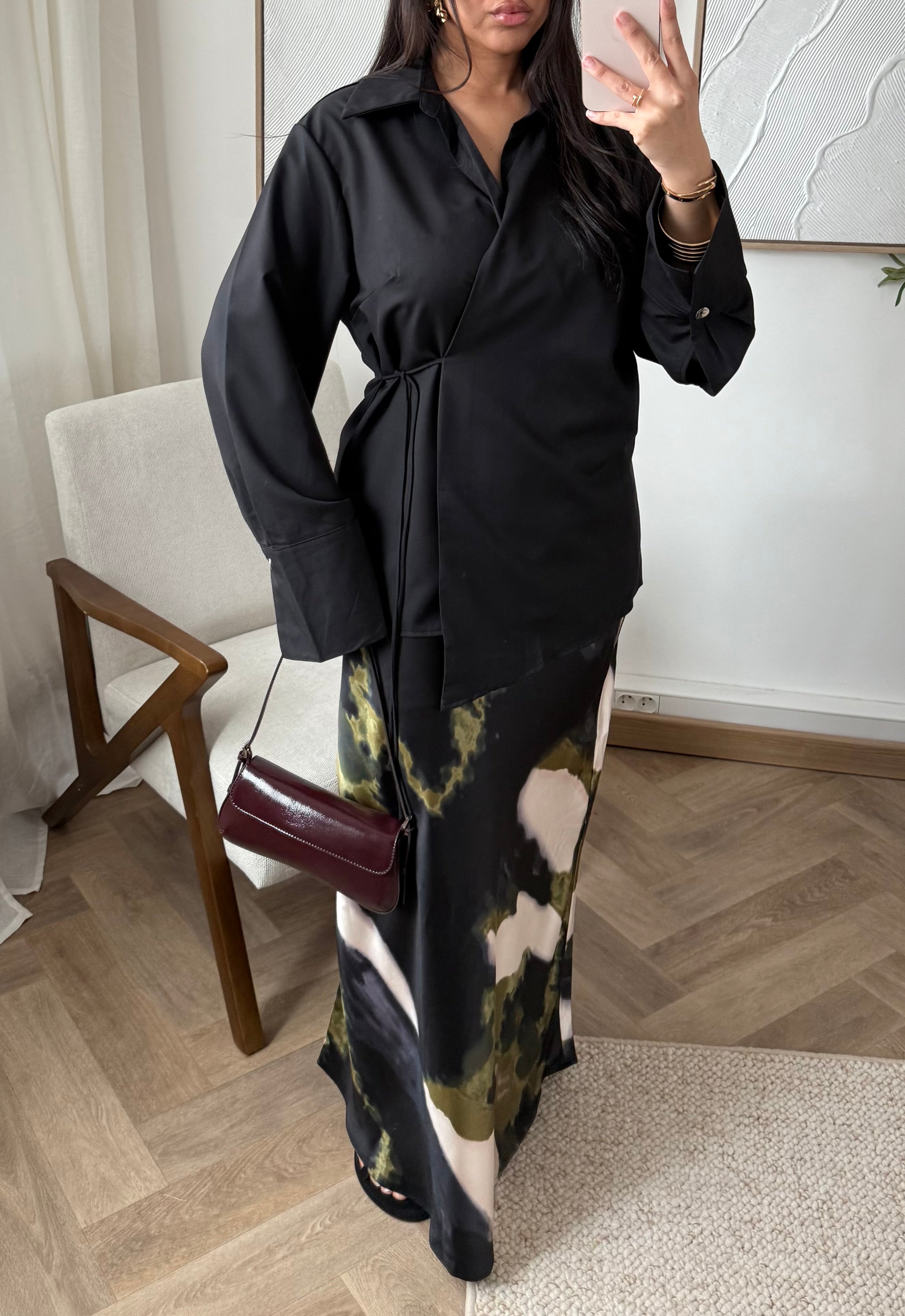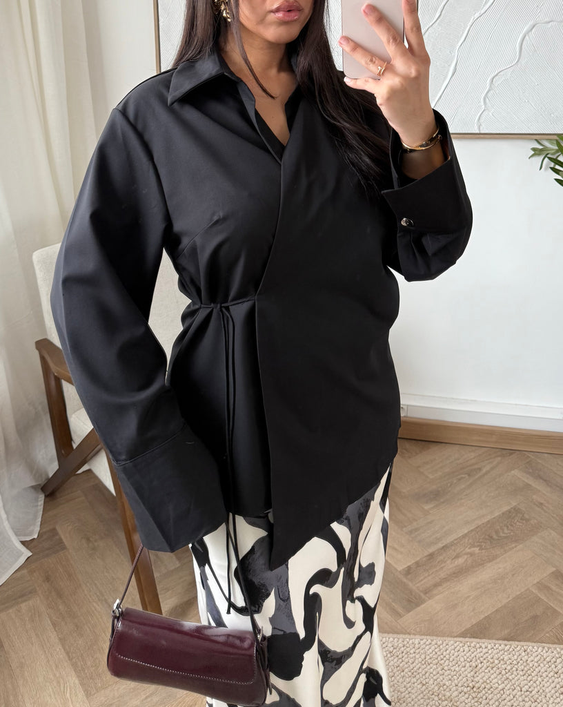 Chemise à nouer sur le côté JESSY 51014 I Noir