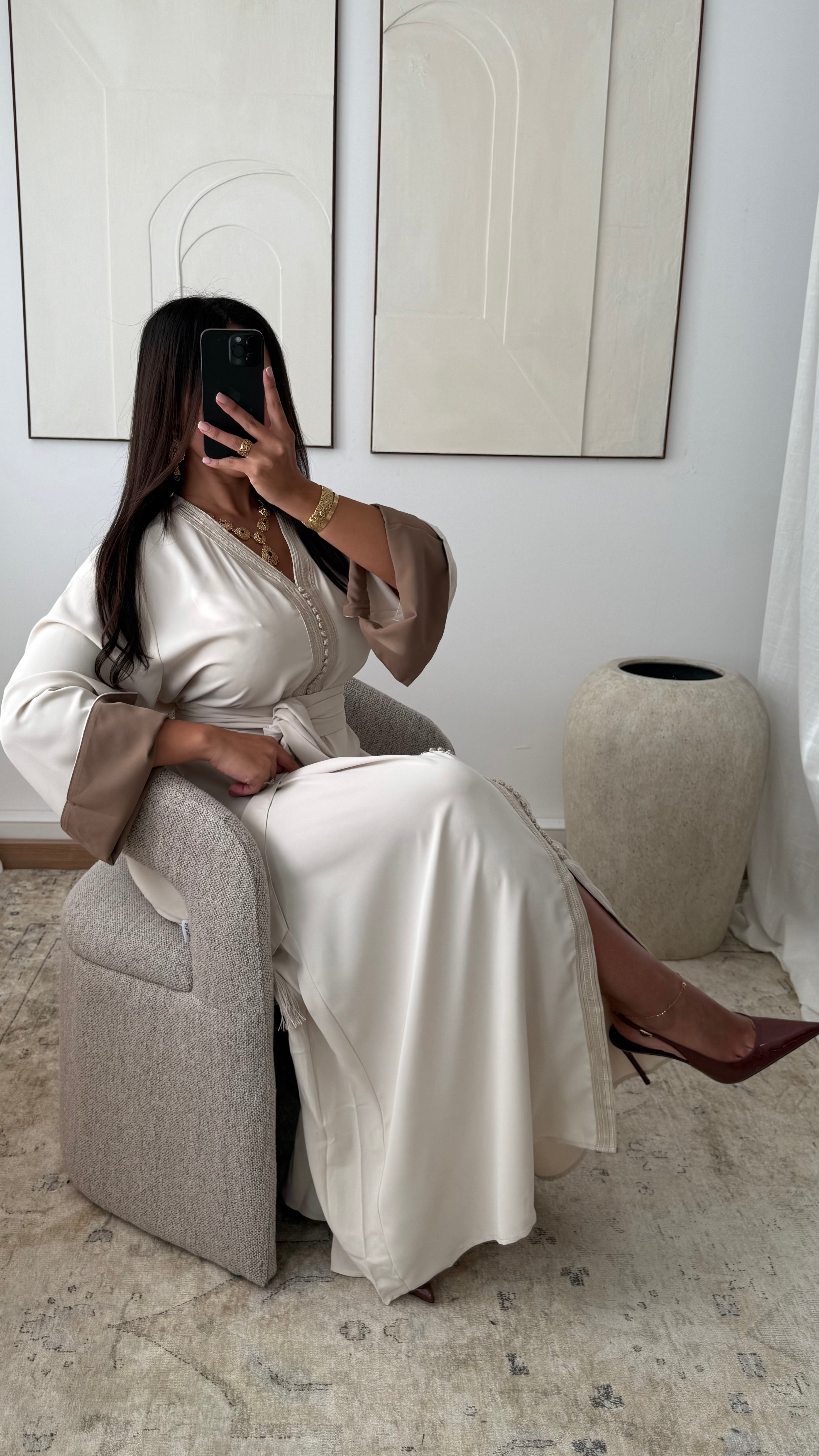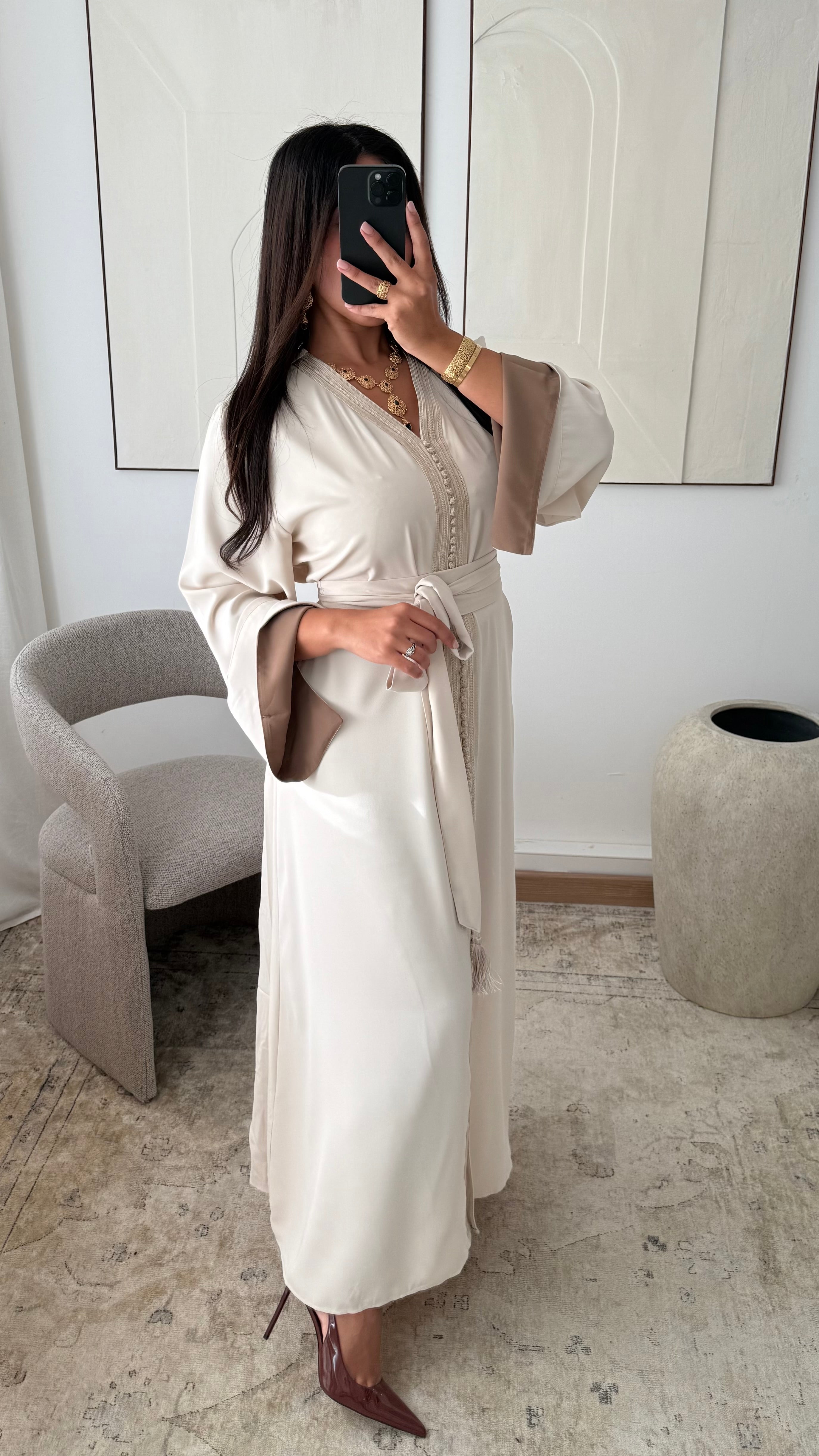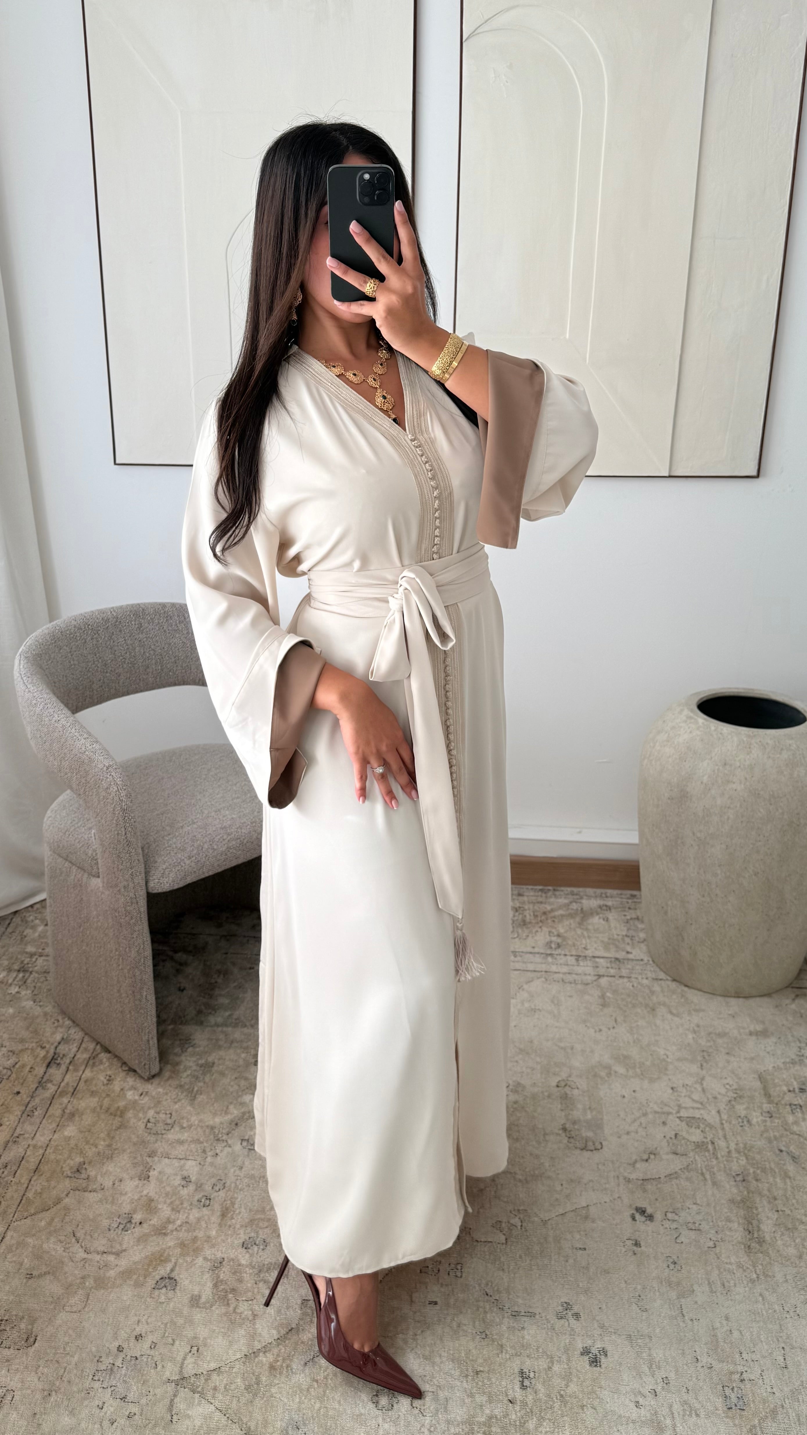 Caftan avec revers aux manches ELLISSA I Beige