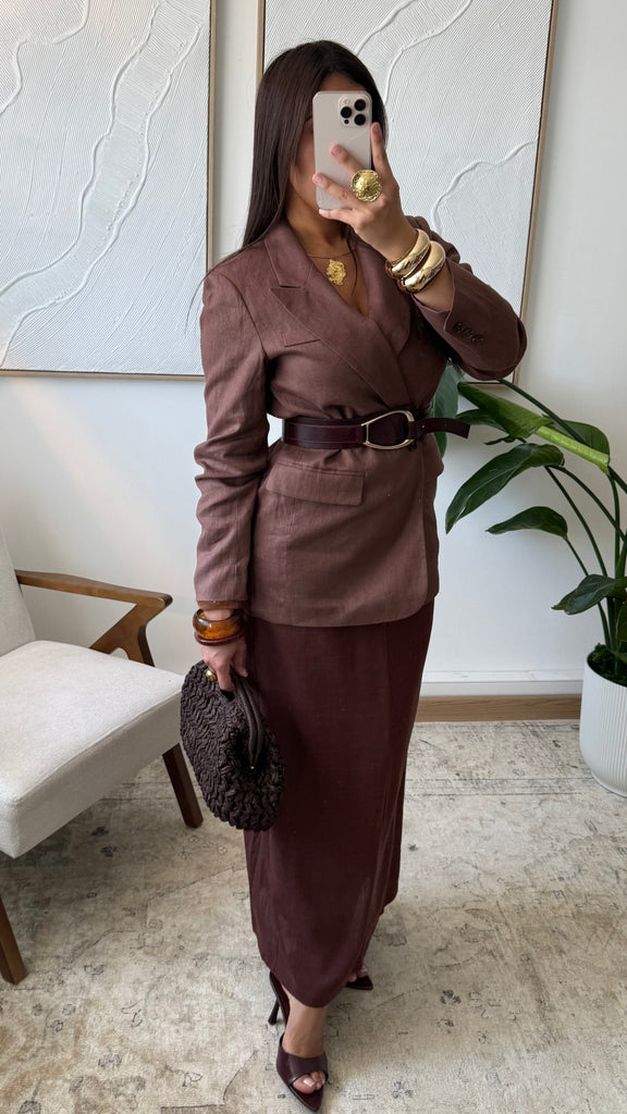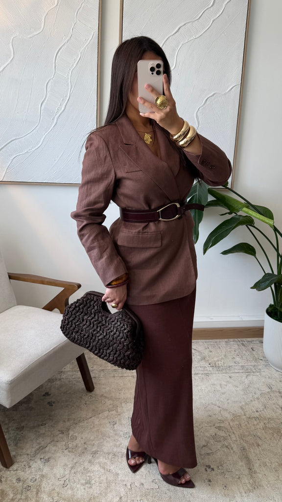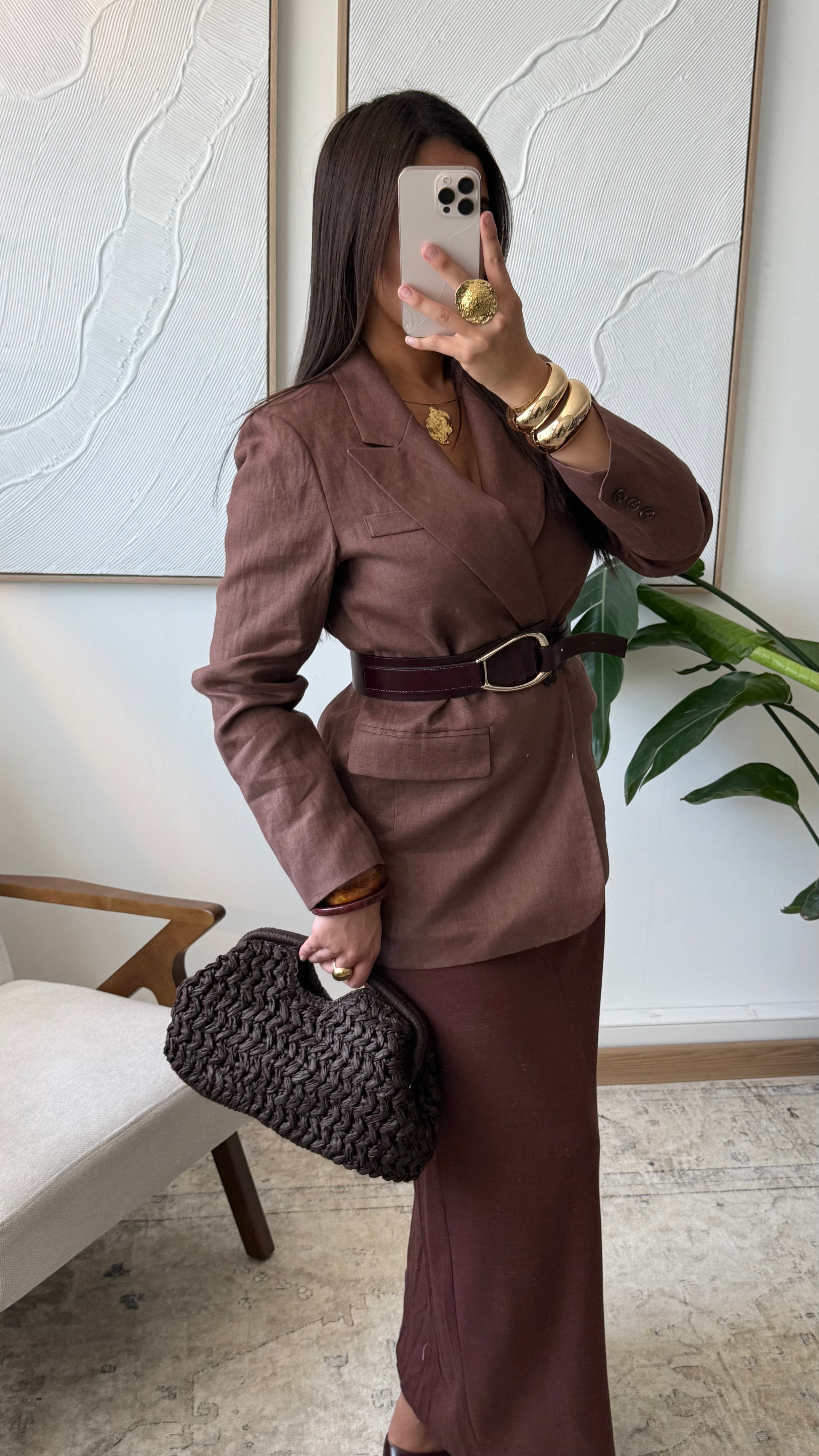 [GAMME LUXE] Blazer premium 100% lin SAHARIENNE V-2419 I Marron chocolat