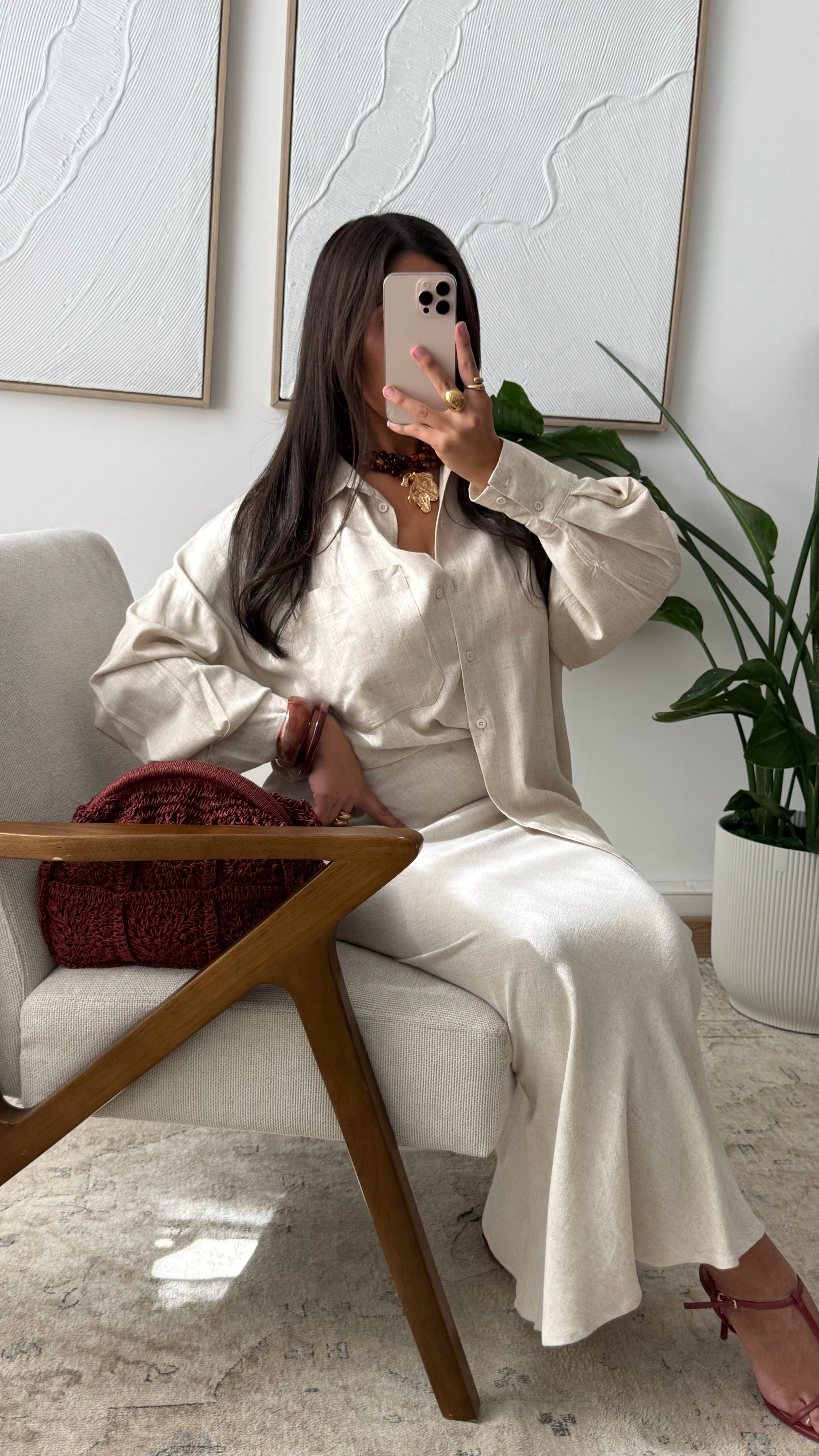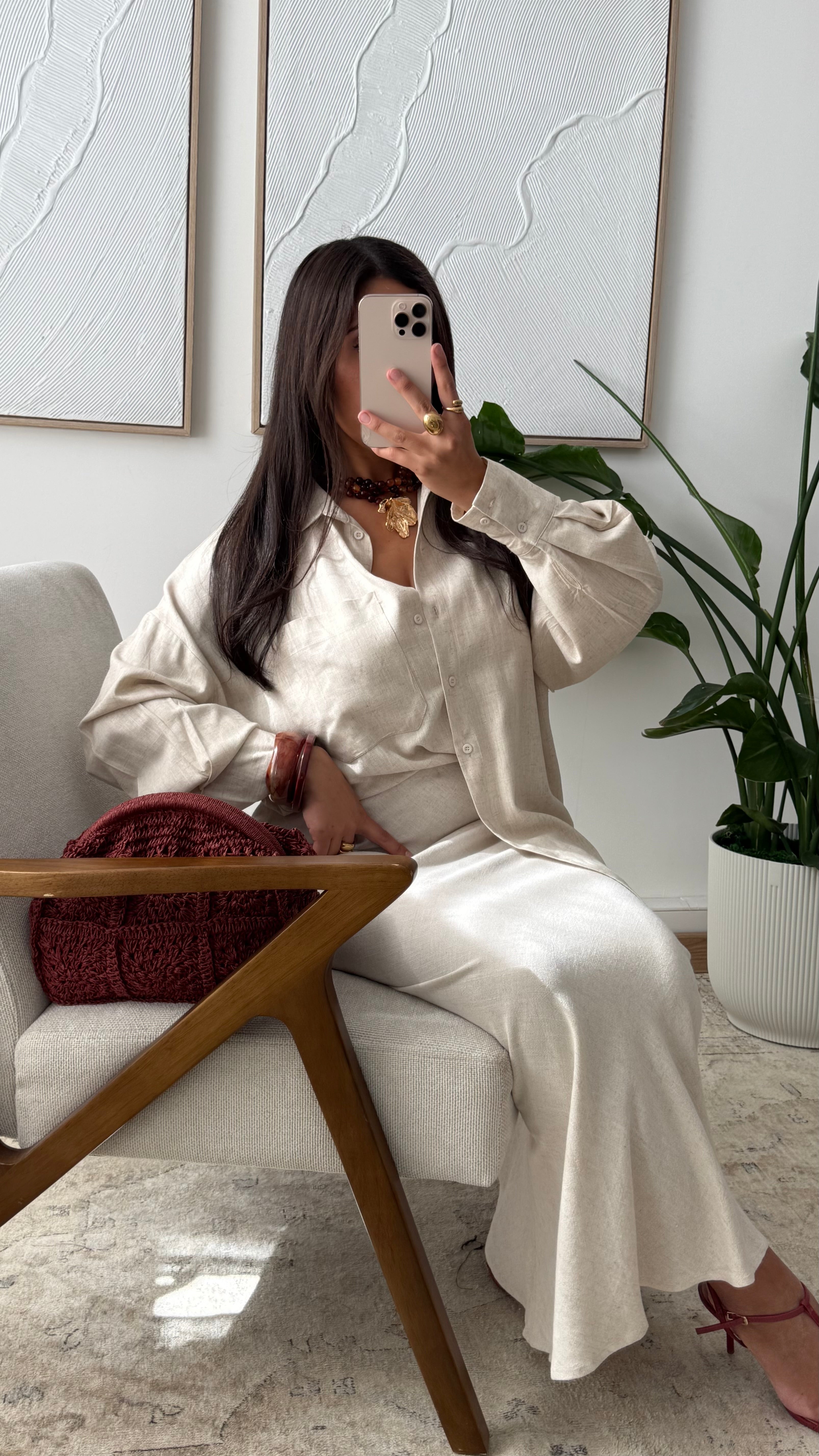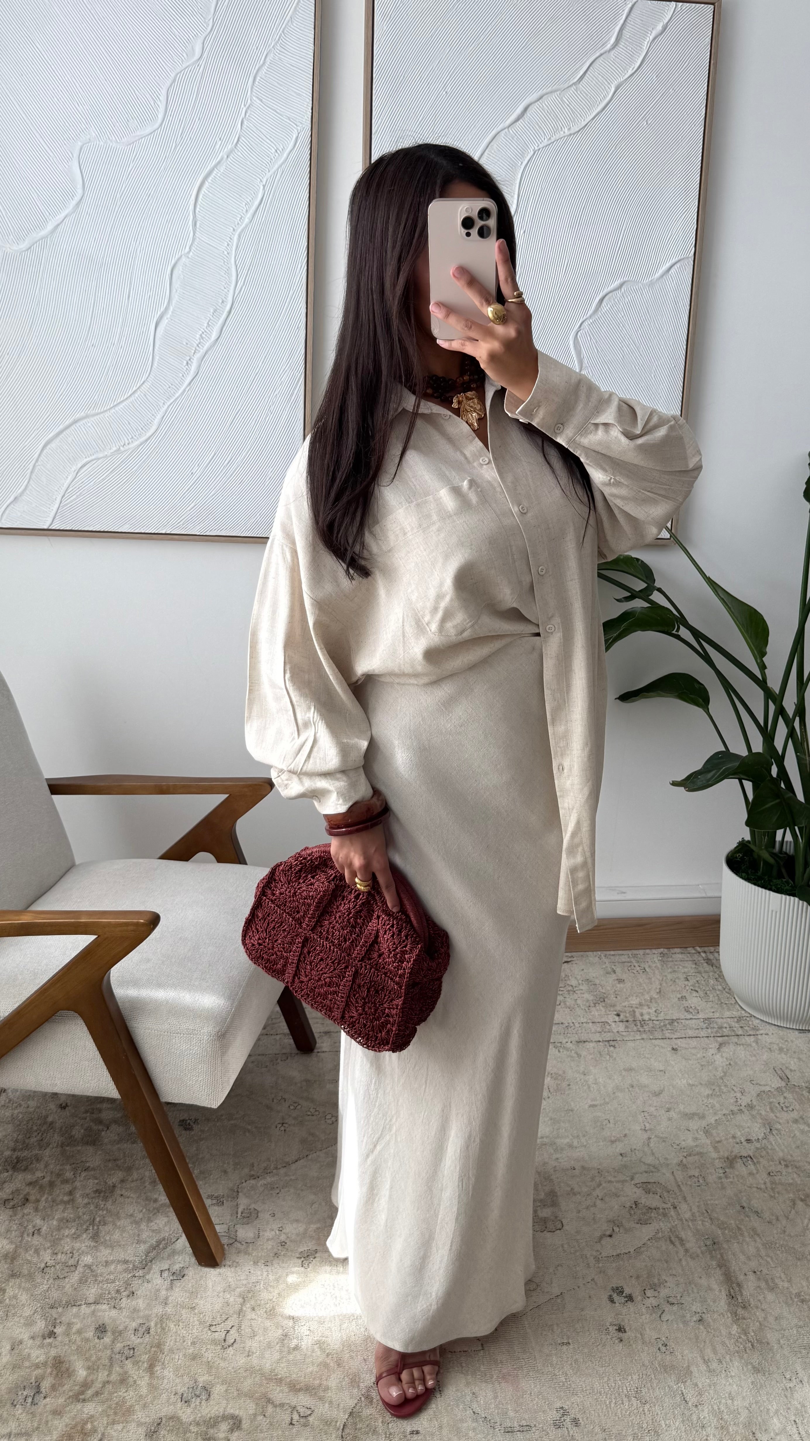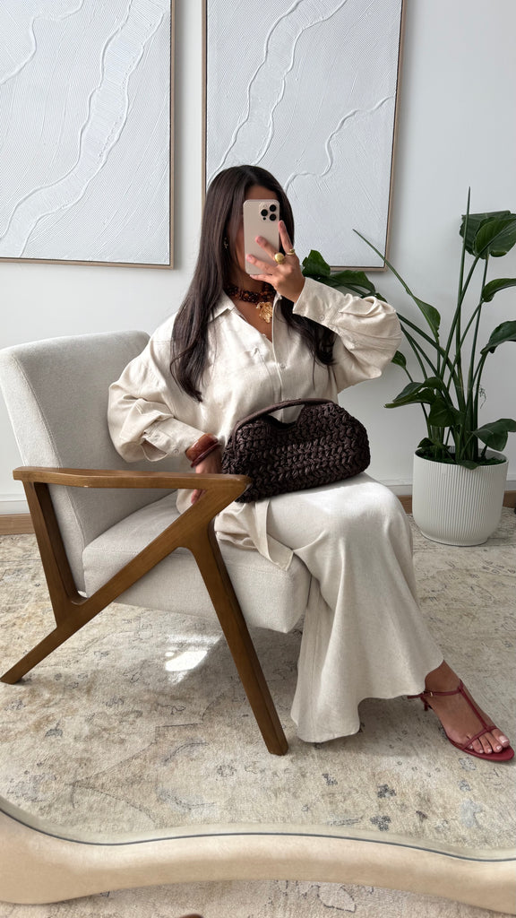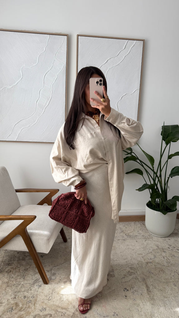Jupe droite en lin FYRAM 0968 I Beige sable