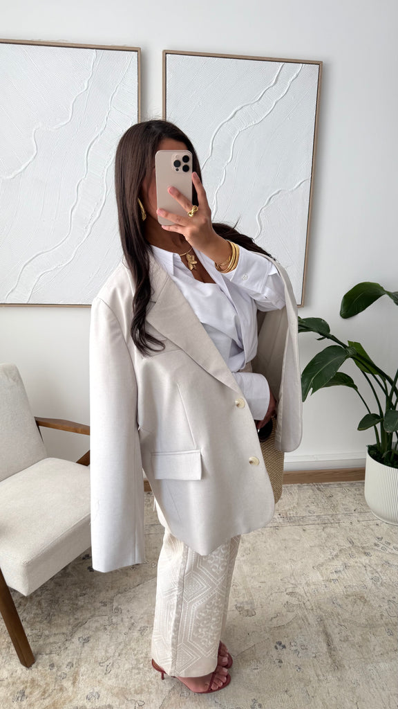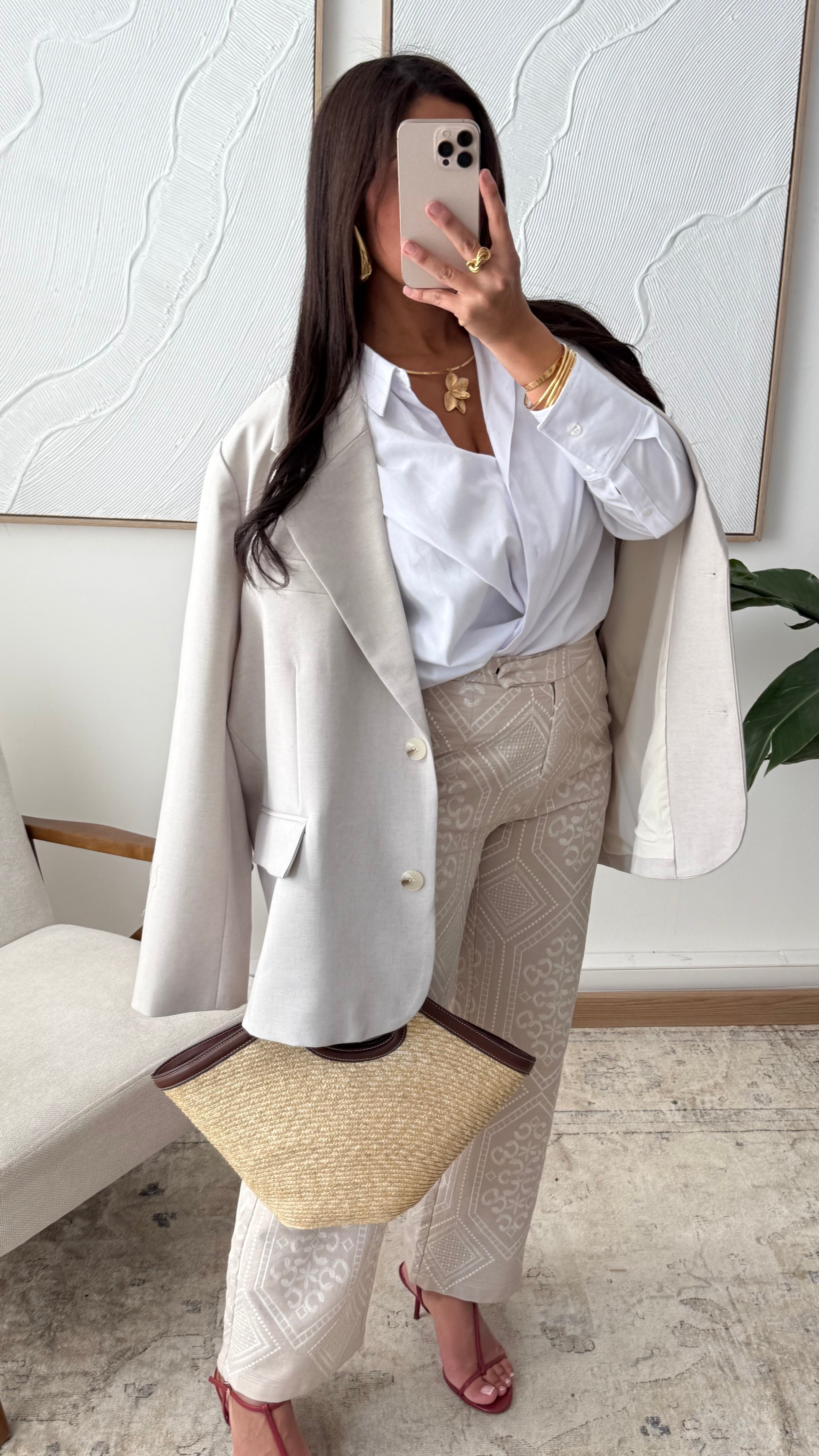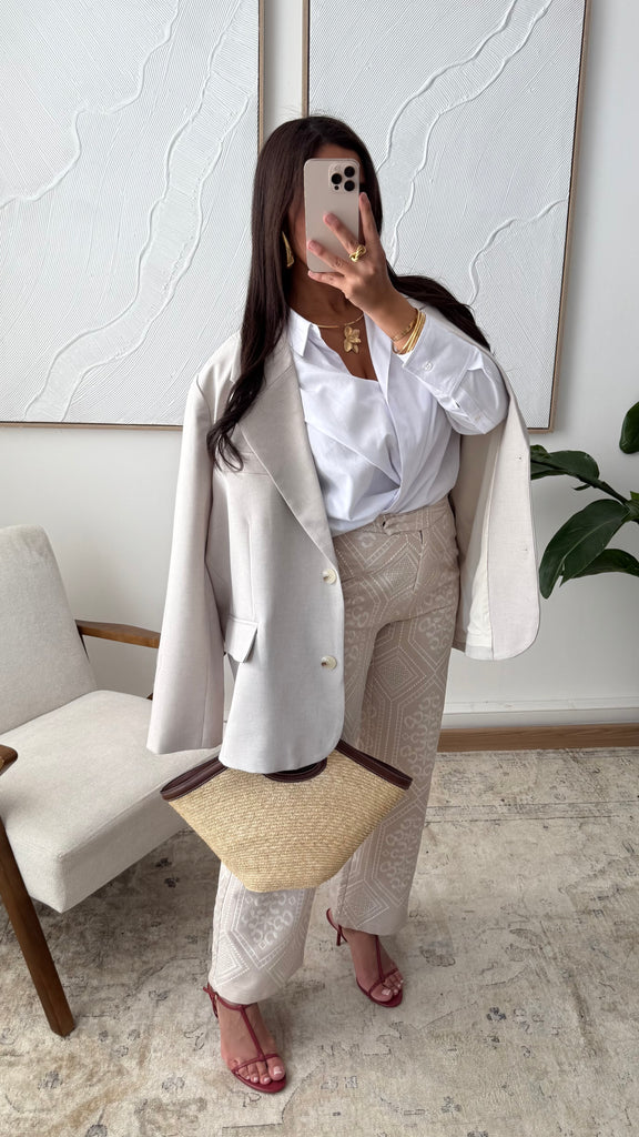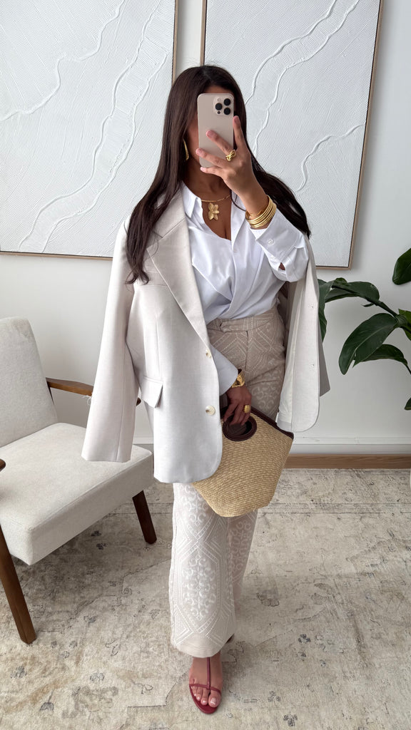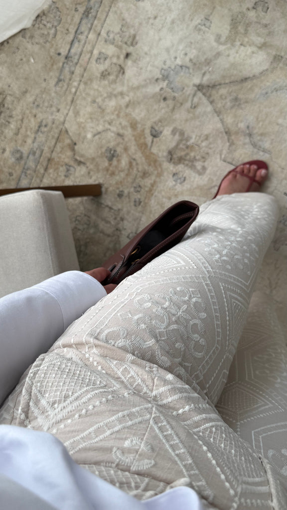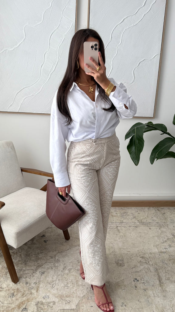 Pantalon en lin et coton brodé TULUM M7048-1 I Beige