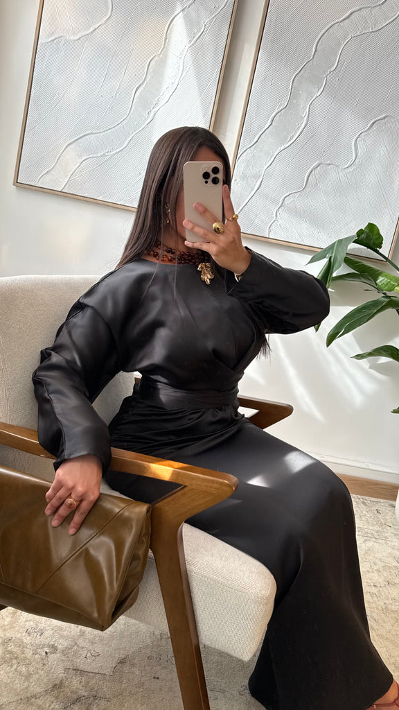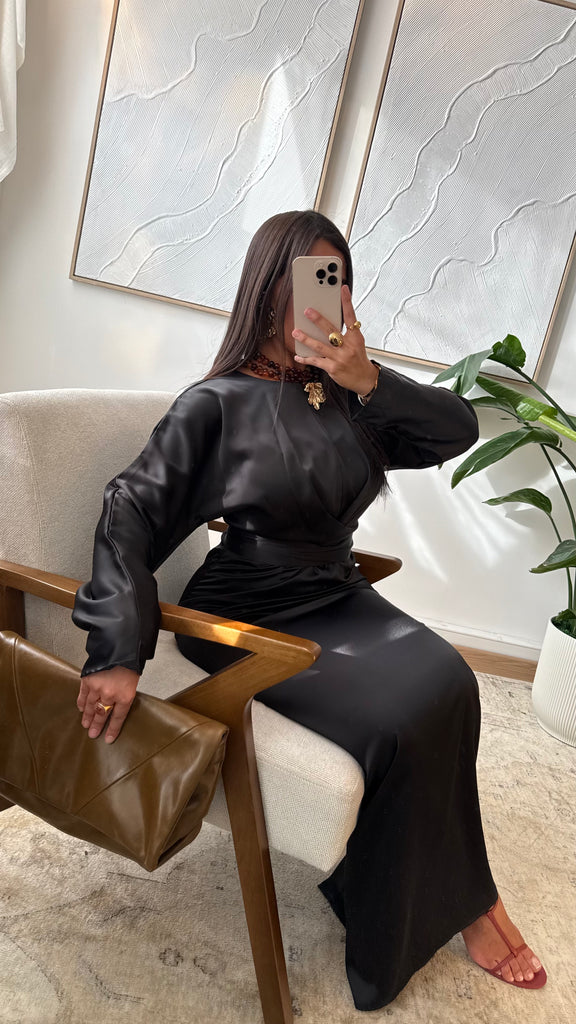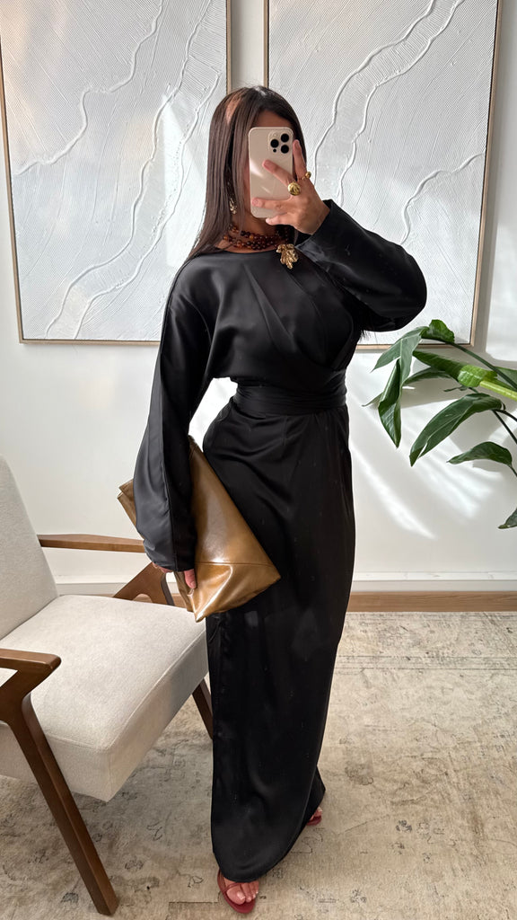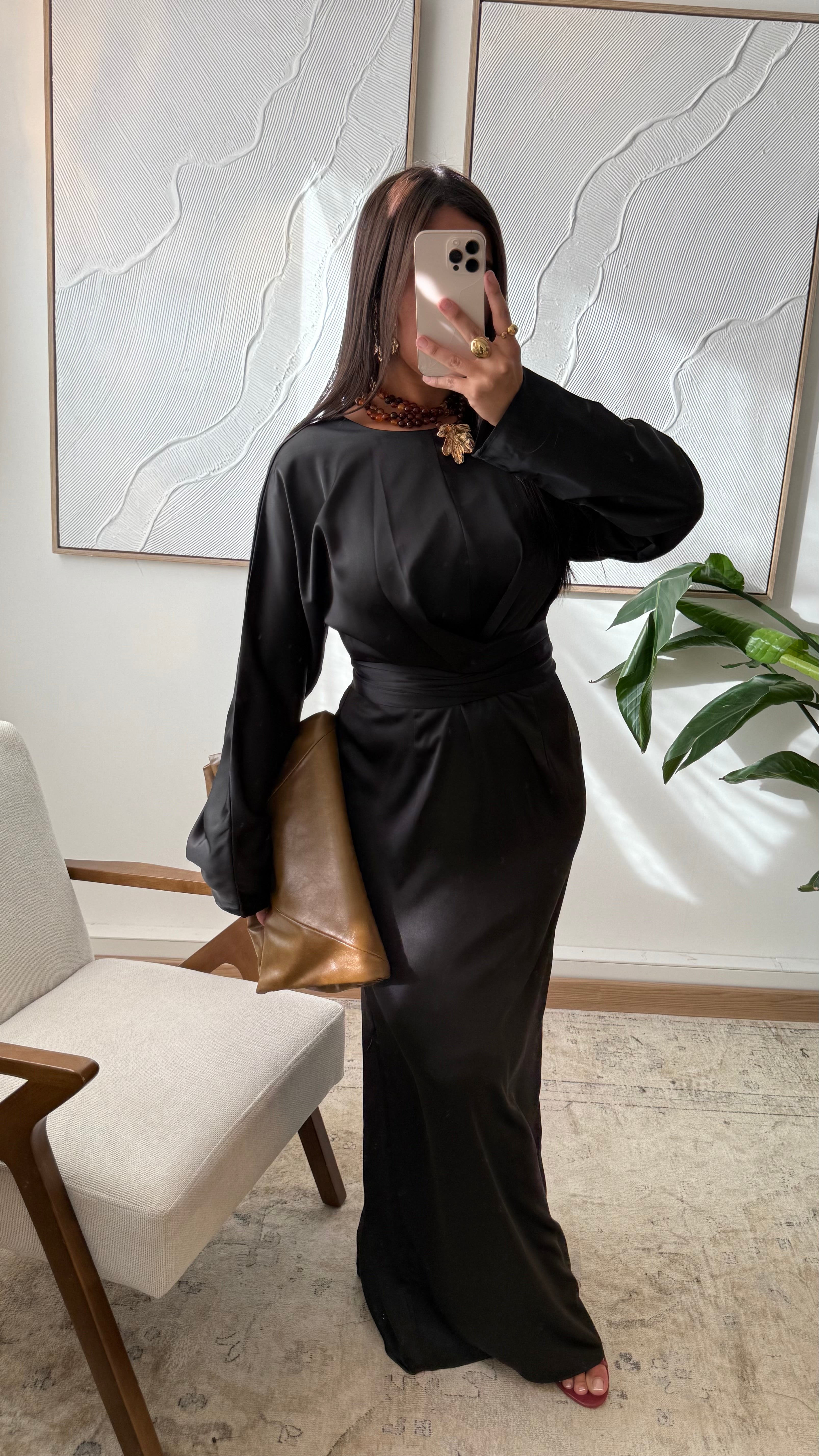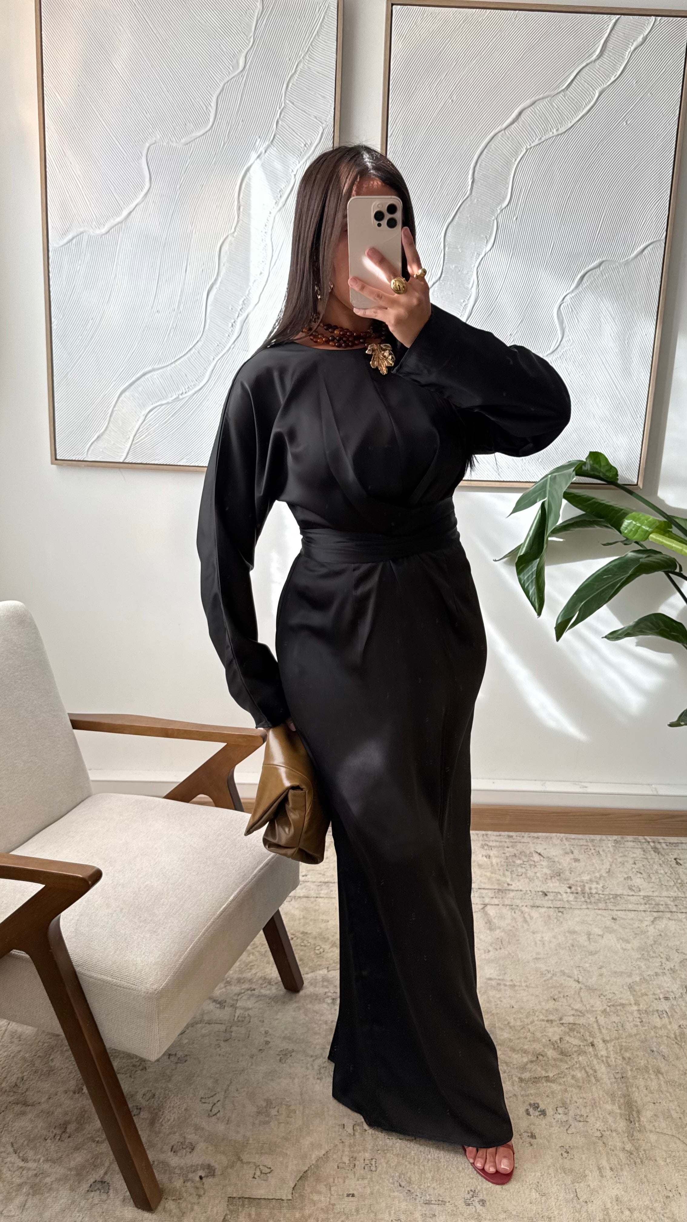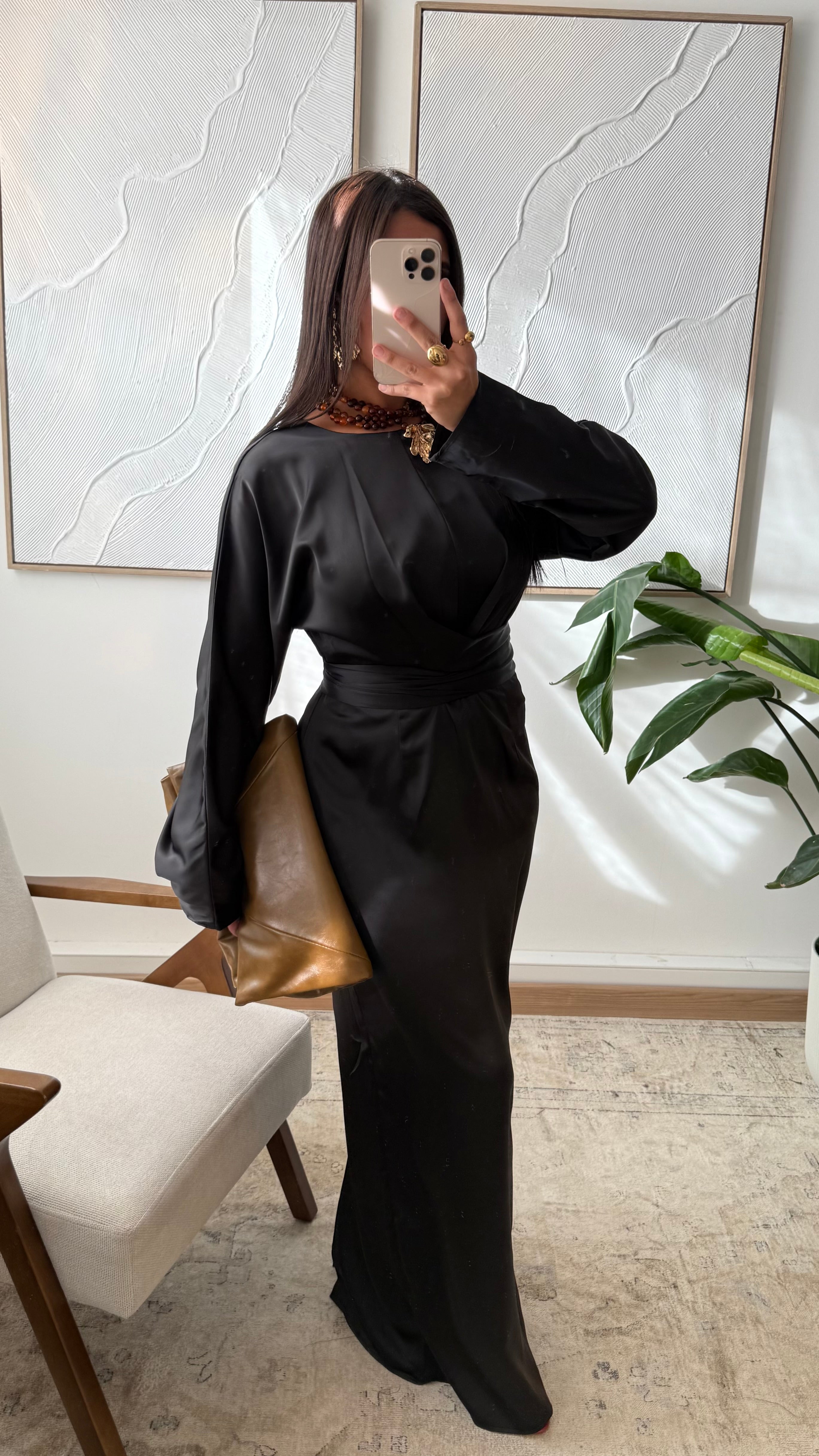 Robe croisée satinée longue DAENERYS 8185 | Noir