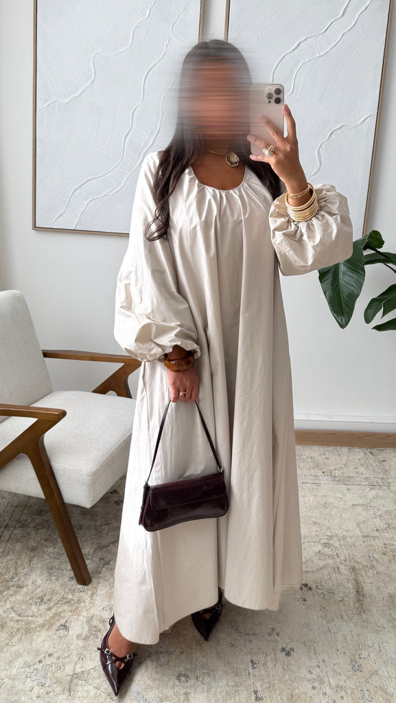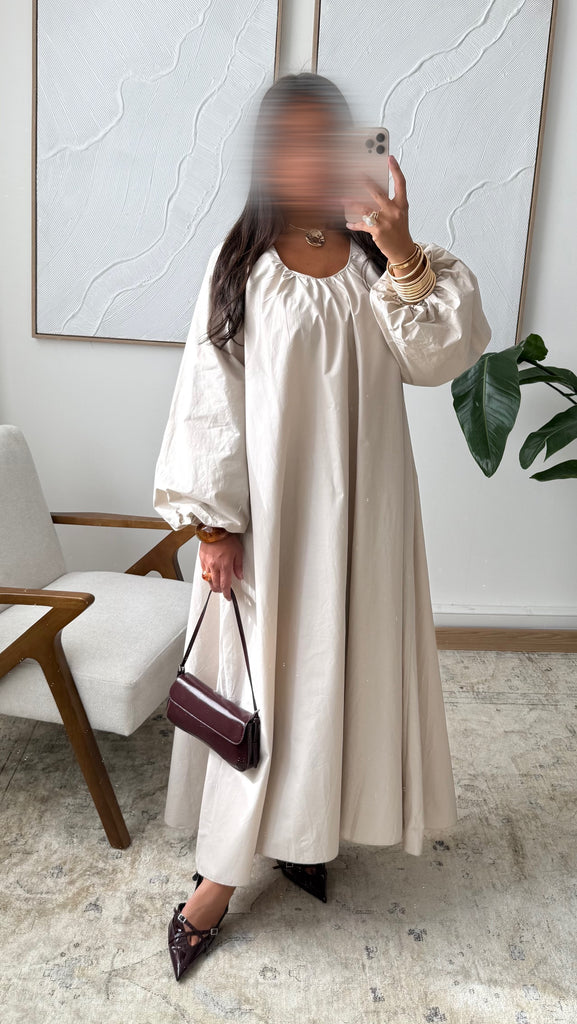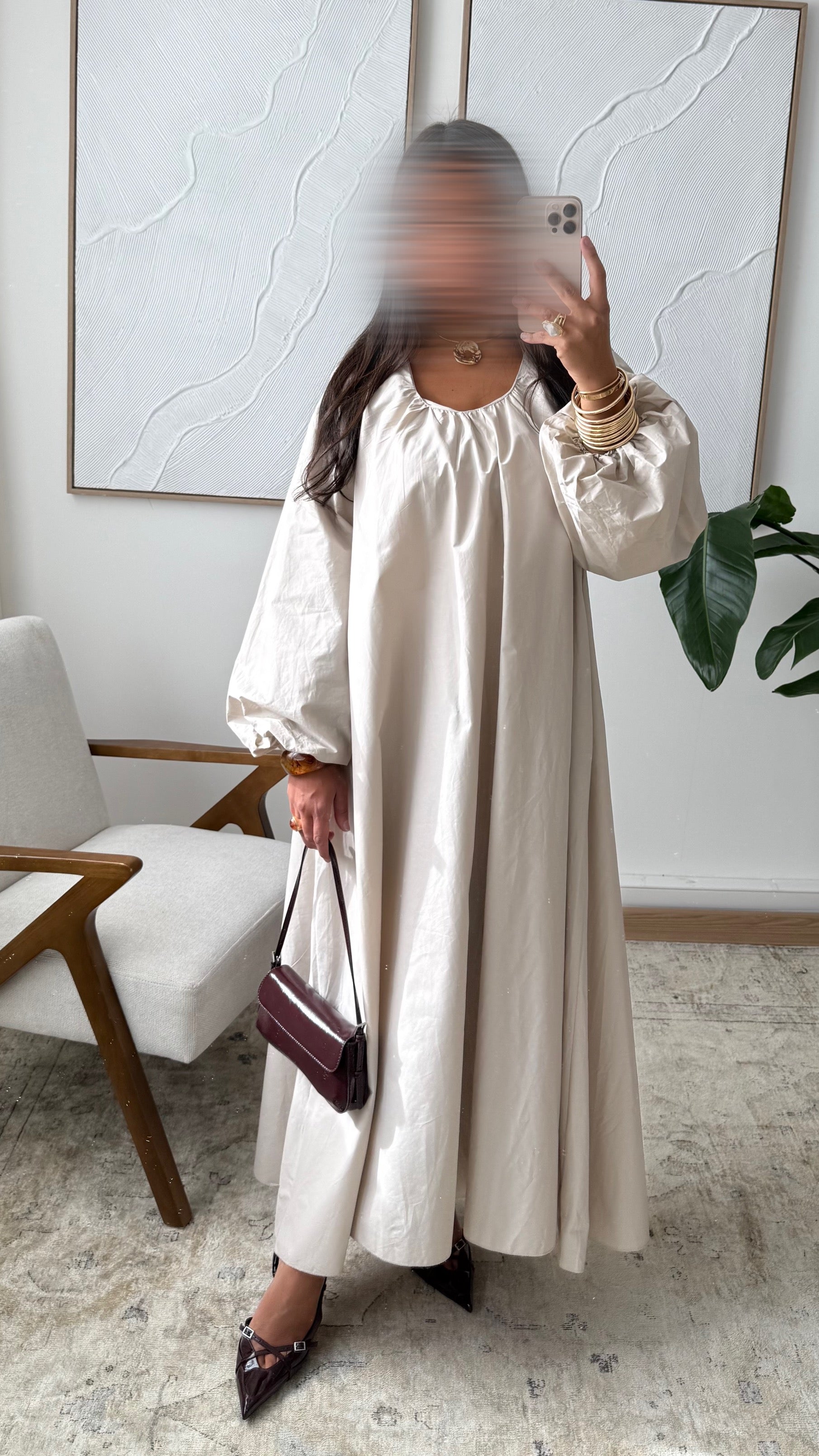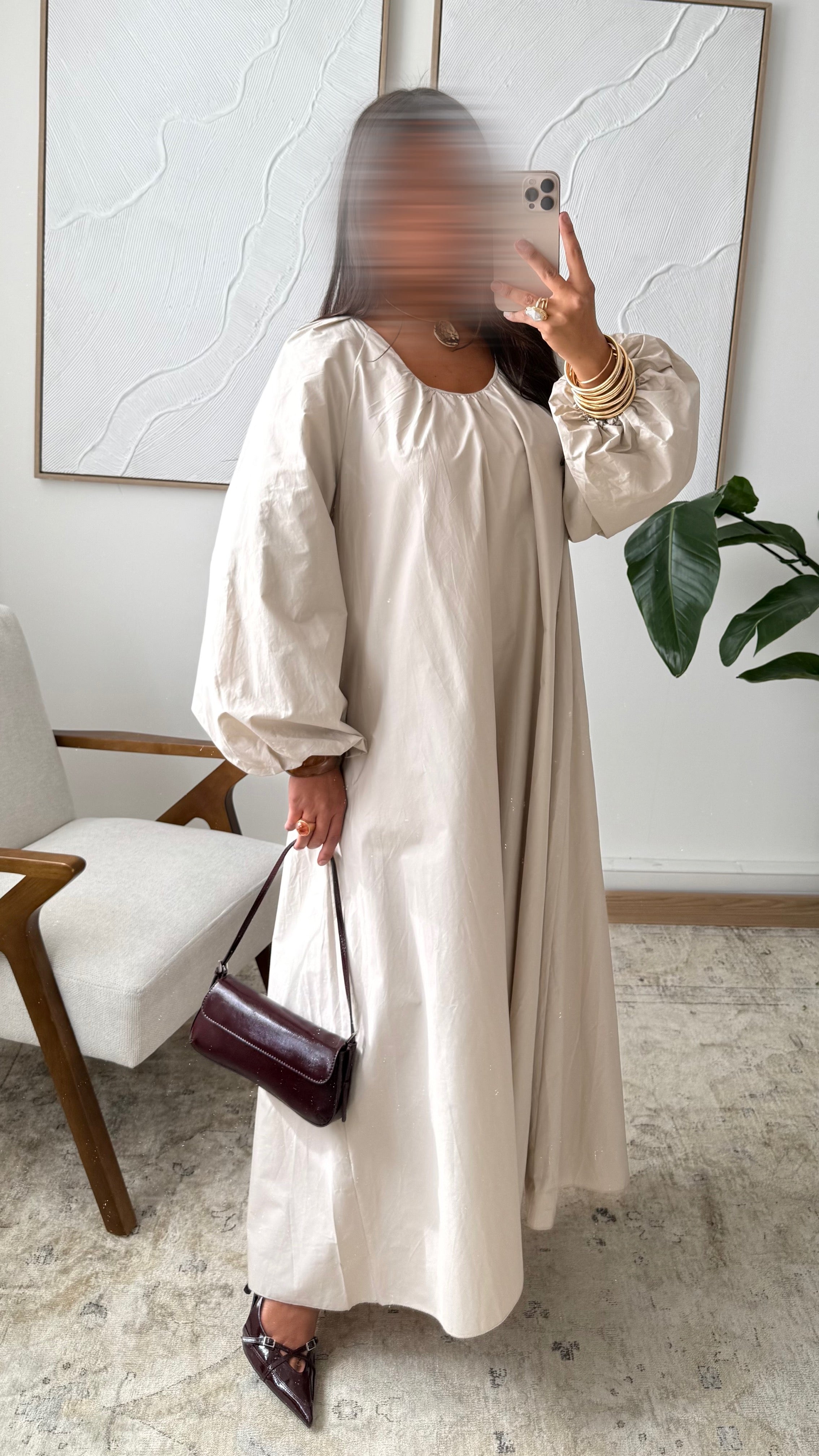 Robe longue en coton manche bouffante POPELINE 18381U I Taupe