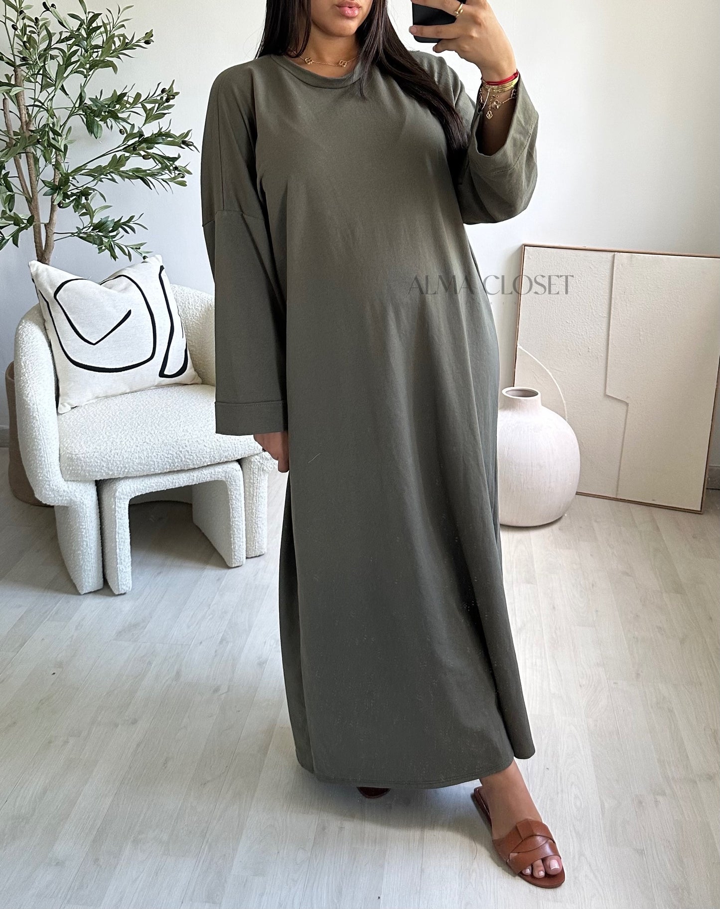 Robe t-shirt simple | Kaki est en rupture de stock et sera envoyé dès qu'il sera disponible